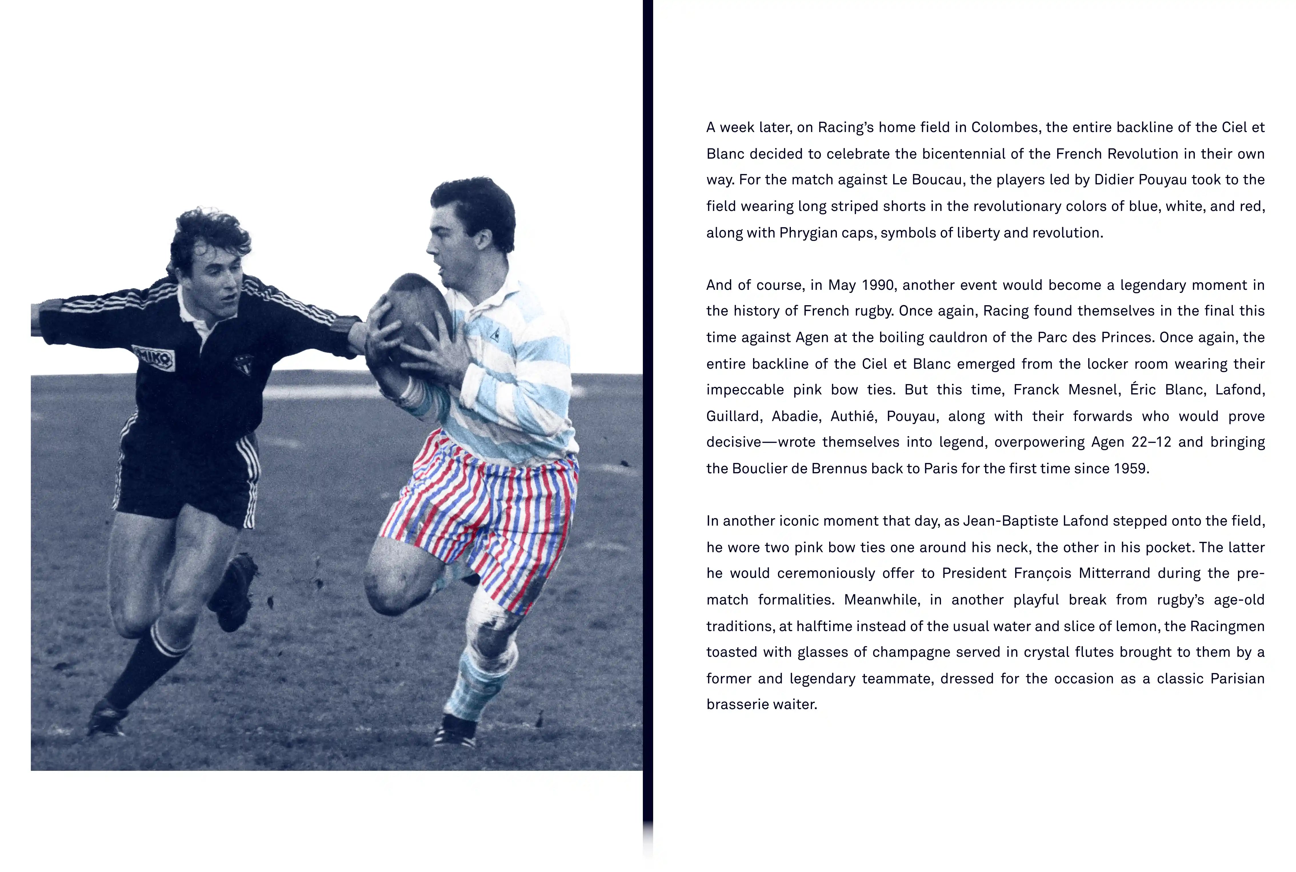 As for the emblematic Eden Park pink colour, the idea came during a Racing Club team dinner in the days before the 1987 club final. In their usual laid-back style, Mesnel and Co were looking for something “festive and classy” to wear in this historic Championship final.