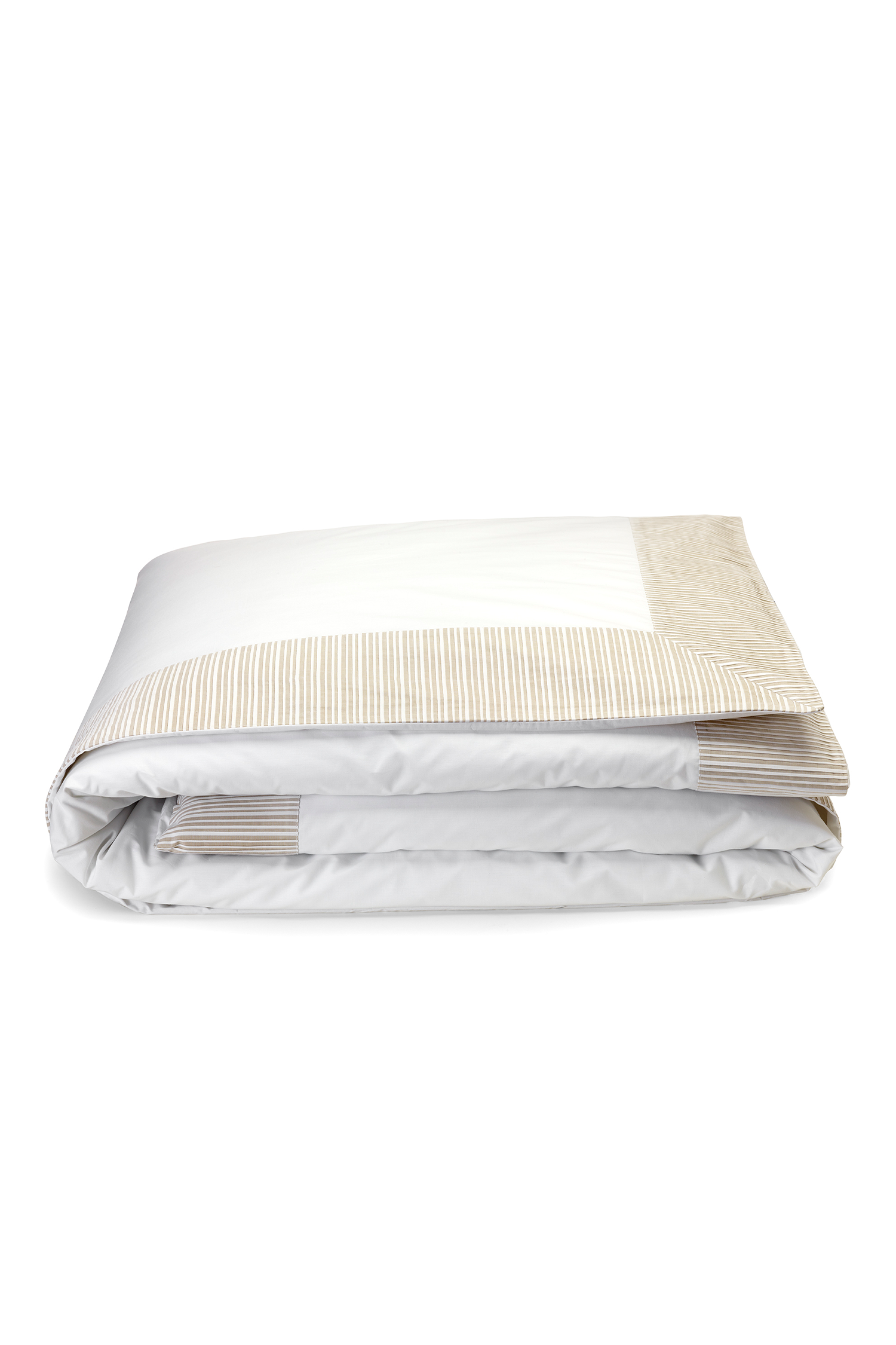 Adorned with beige religious pleats and featuring white bowtie embroidery, this elegant and refined comforter cover in 200 thread count cotton percale offers freshness, softness and lightness for a hotel-like night's sleep, whatever the season.