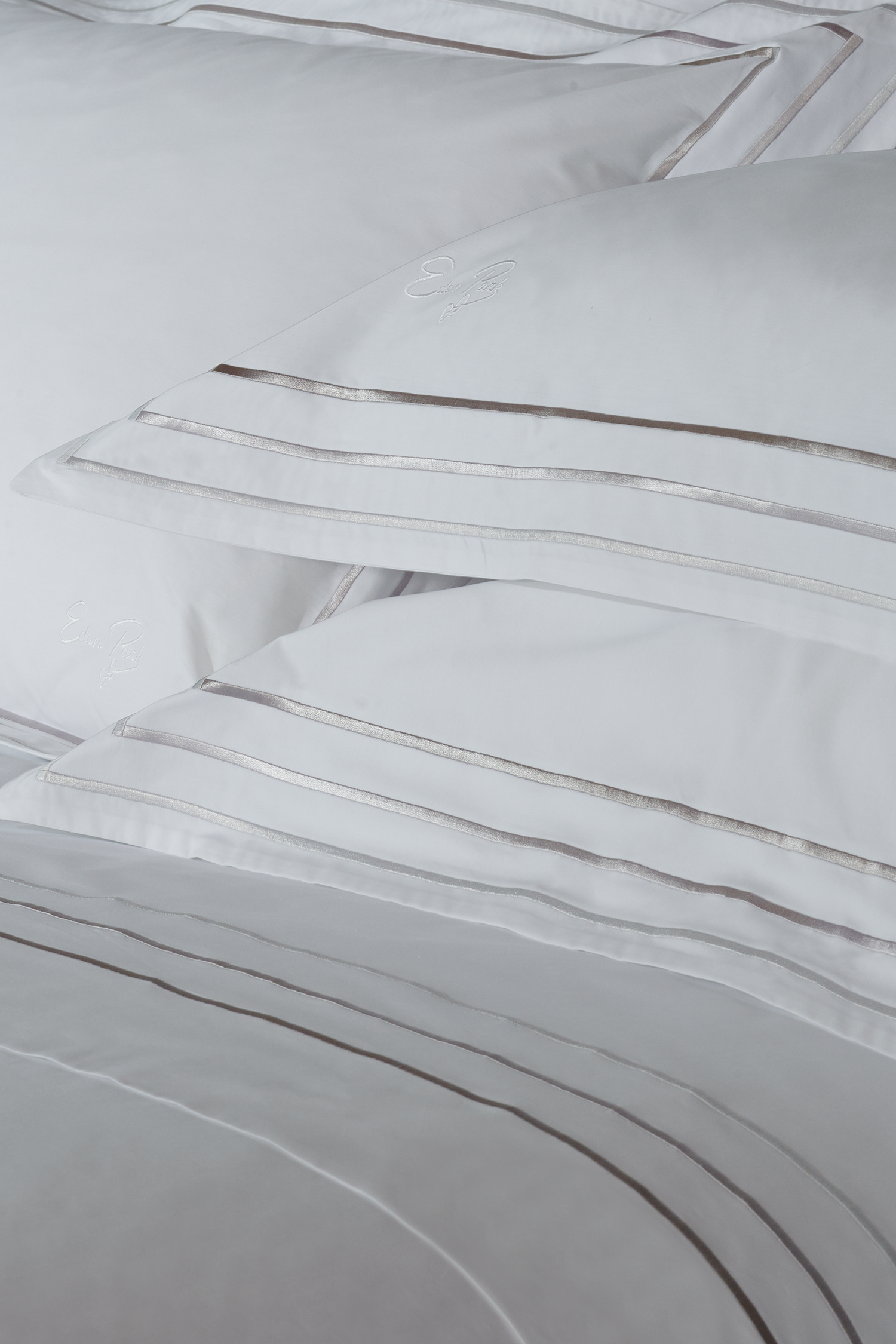 Opt for the softness, strength and luxurious feel of Egyptian cotton 200 threads/cm2 with this duo of white pillowcases adorned around the edges with a tri-color bourdon braid. Eden Park's signature tone-on-tone embroidery marks this range, which offers both delicacy and solidity, as well as unparalleled durability.