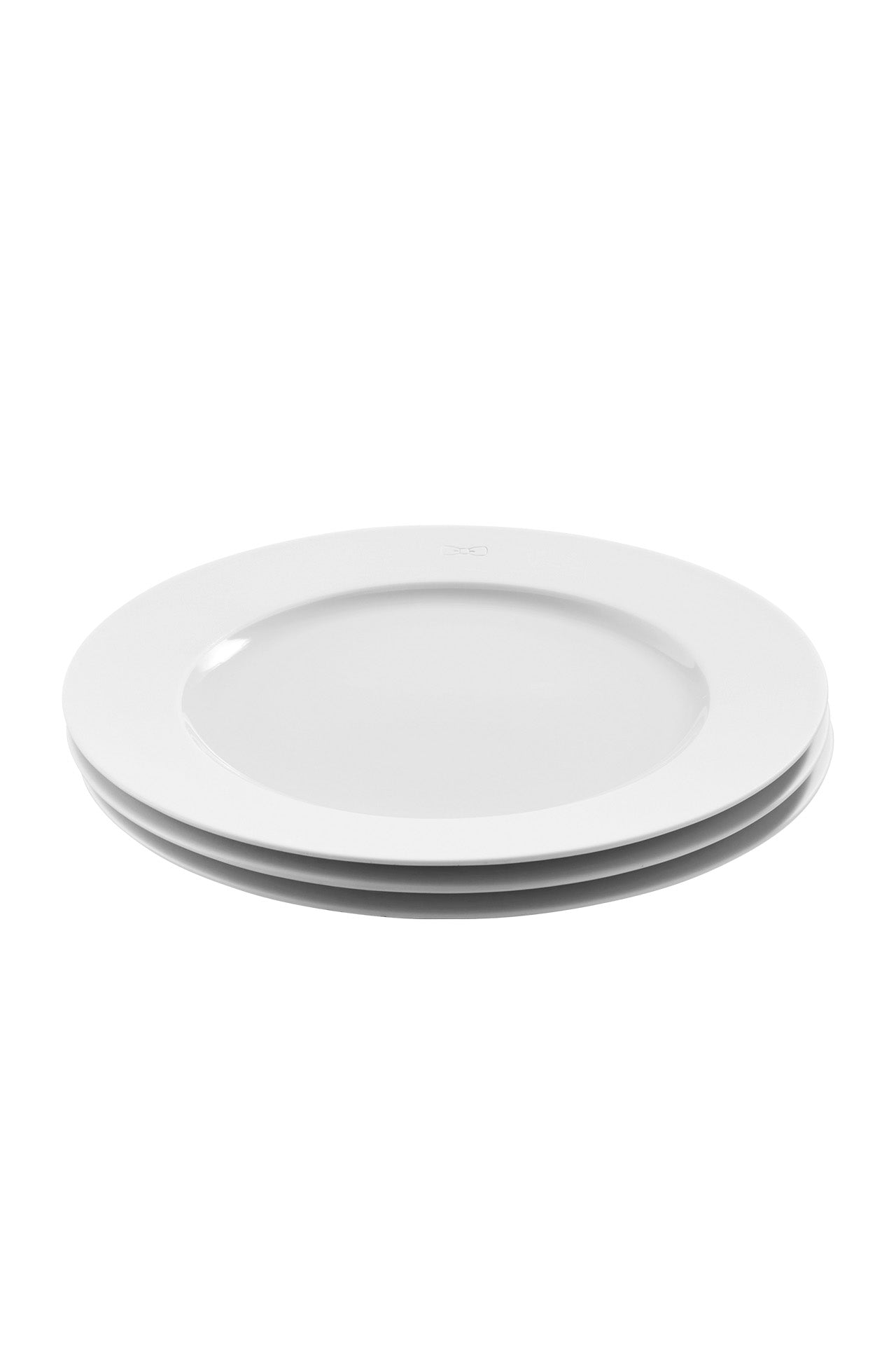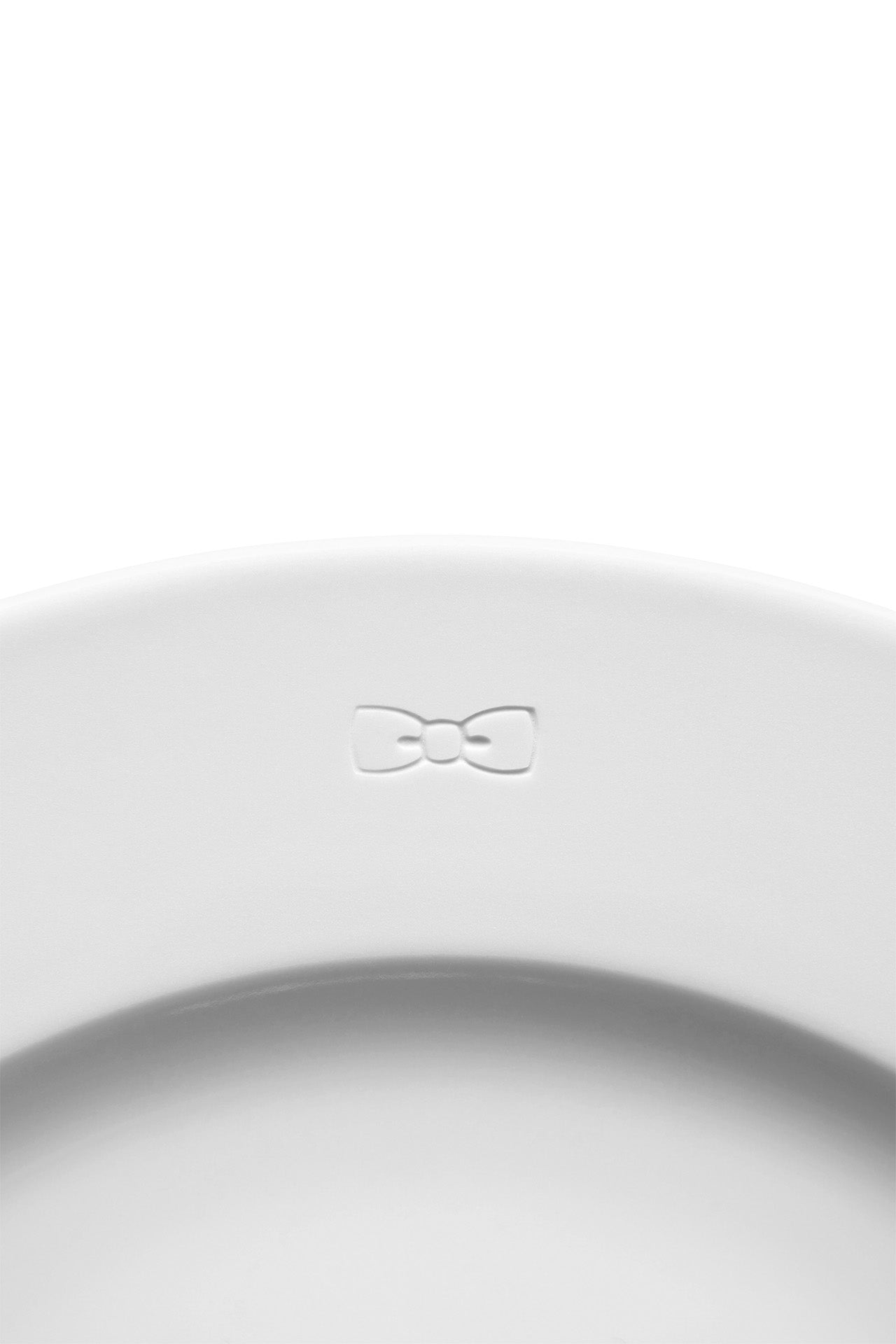Get ready to set an elegant table with this round white plate made of real Limoges porcelain. A small tone-on-tone engraved bow tie logo decorates the French production. Streamlined and refined, its timeless silhouette readily fits into any kind of table decor.