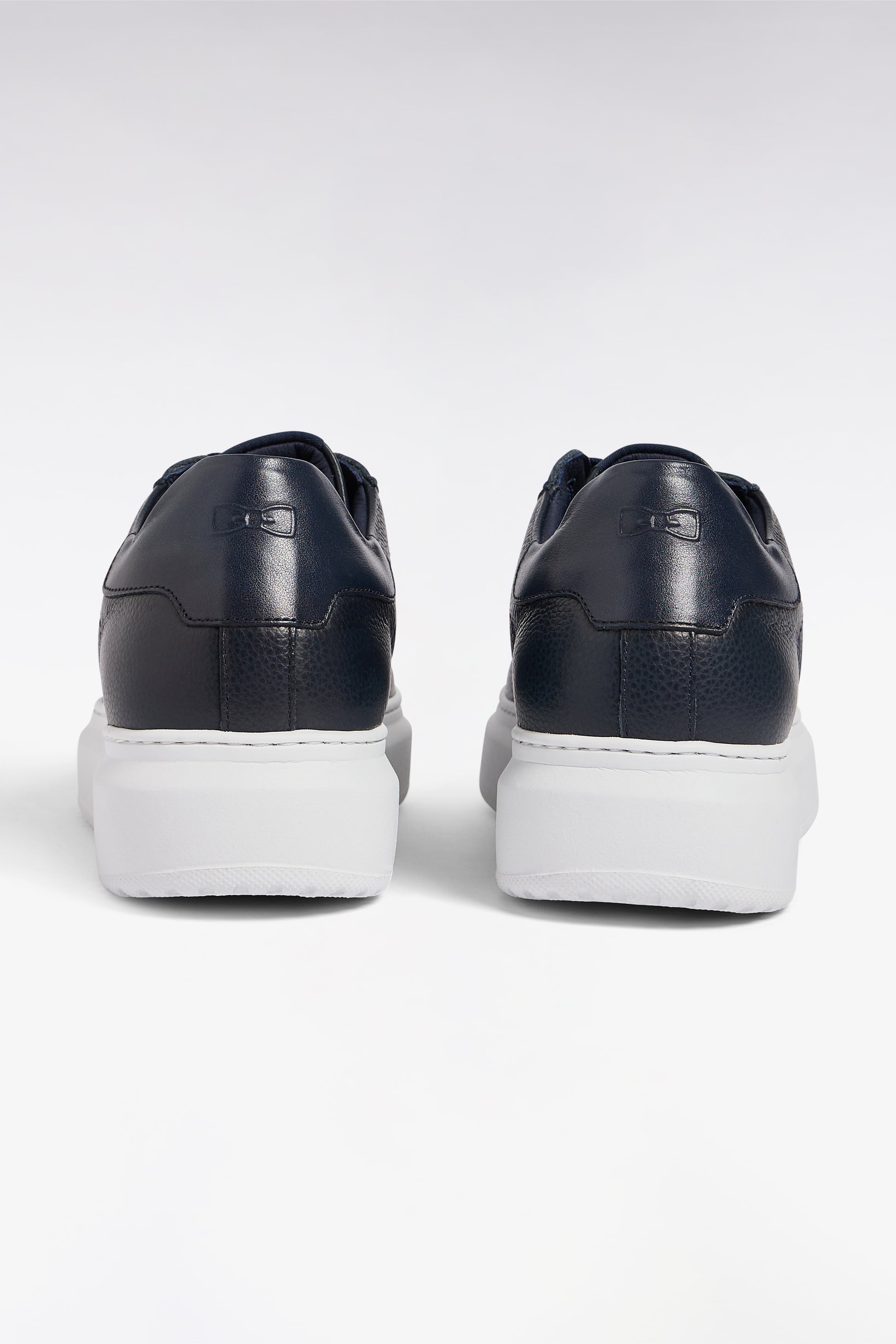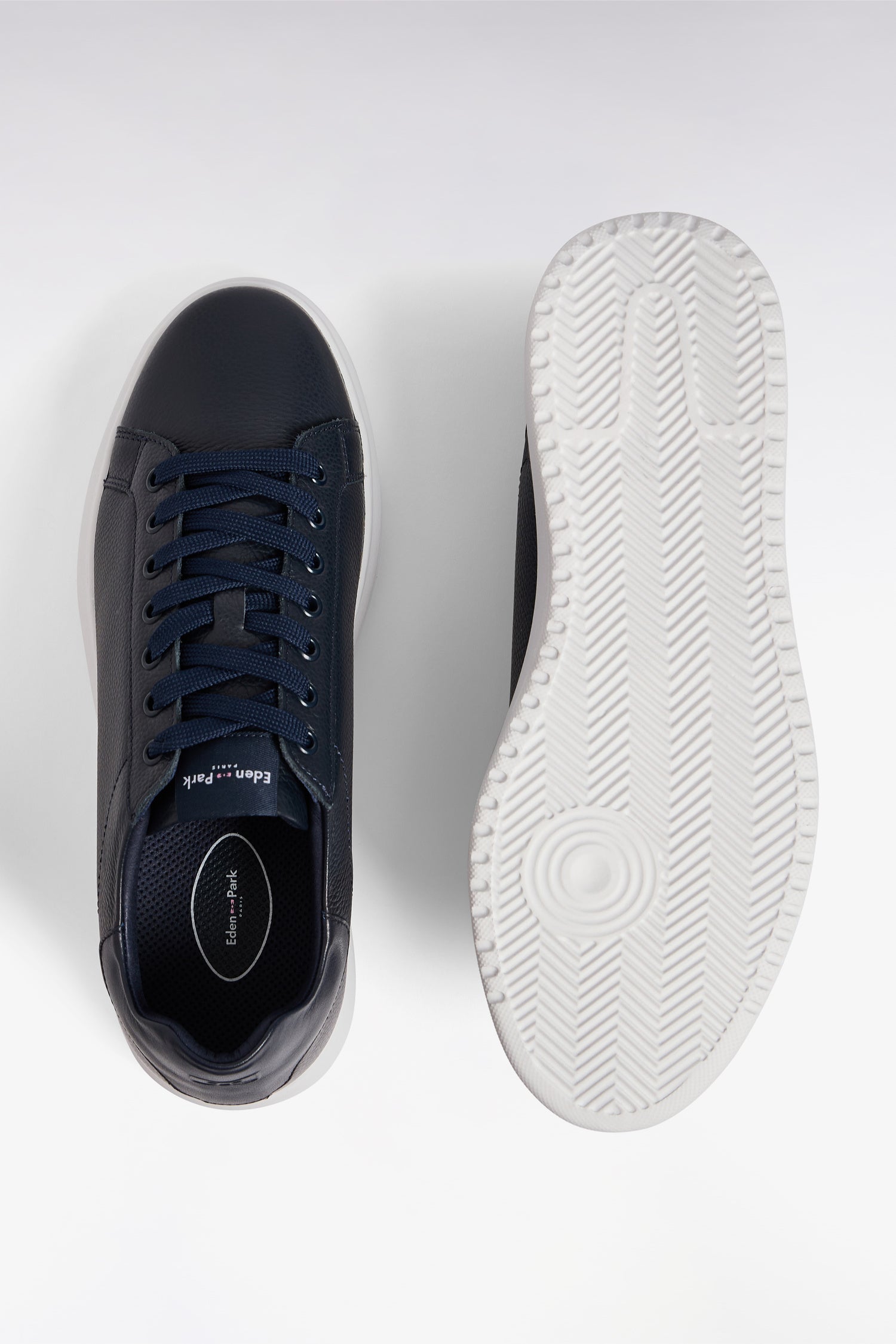 These two-tone low-top sneakers are ideal for adding a graphic, elegant touch to an everyday silhouette. White or navy grained leather is combined with an embossed back tongue, black for the white model and tone-on-tone in navy. With their white soles and discreet Eden Park embossing combined with neat perforation, these sneakers are sure to perfect your look.