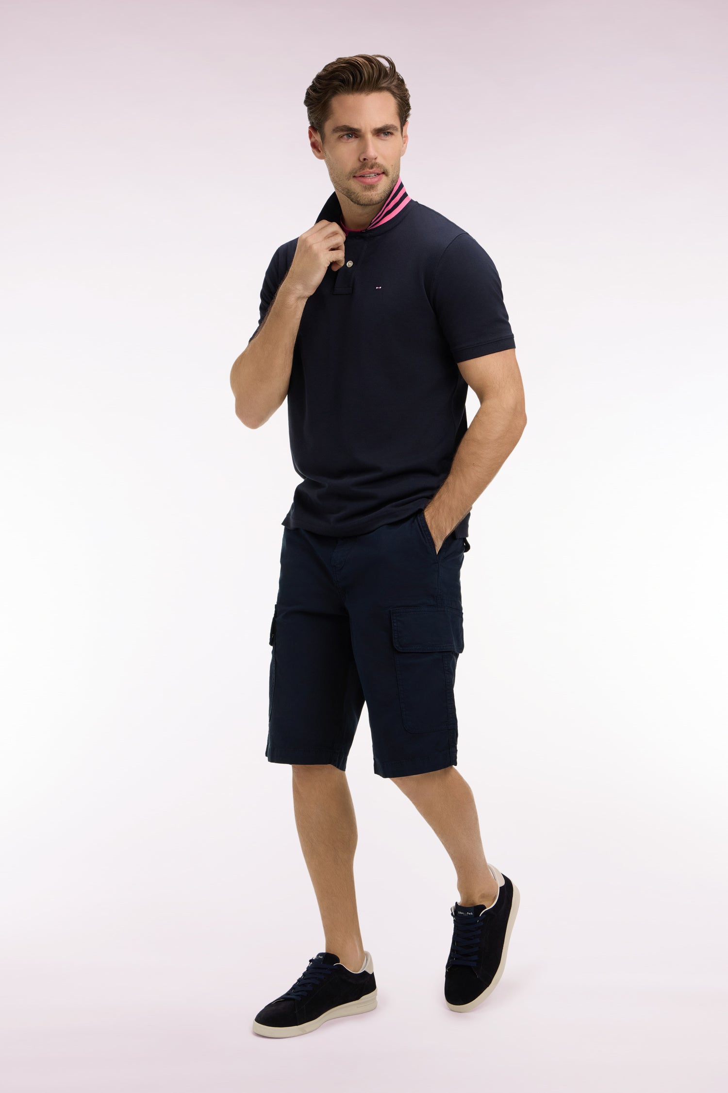 Notre bermuda cargo en toile de coton revisite l’allure utilitaire dans un esprit army chic. Décliné en marine, beige ou kaki, ce short allie confort, praticité et style décontracté. Ses poches cargo sur les côtés et ses poches italiennes en font une pièce fonctionnelle au design soigné, idéale pour les vacances comme pour les week-ends. Un essentiel du vestiaire estival masculin, à la fois durable et élégant.