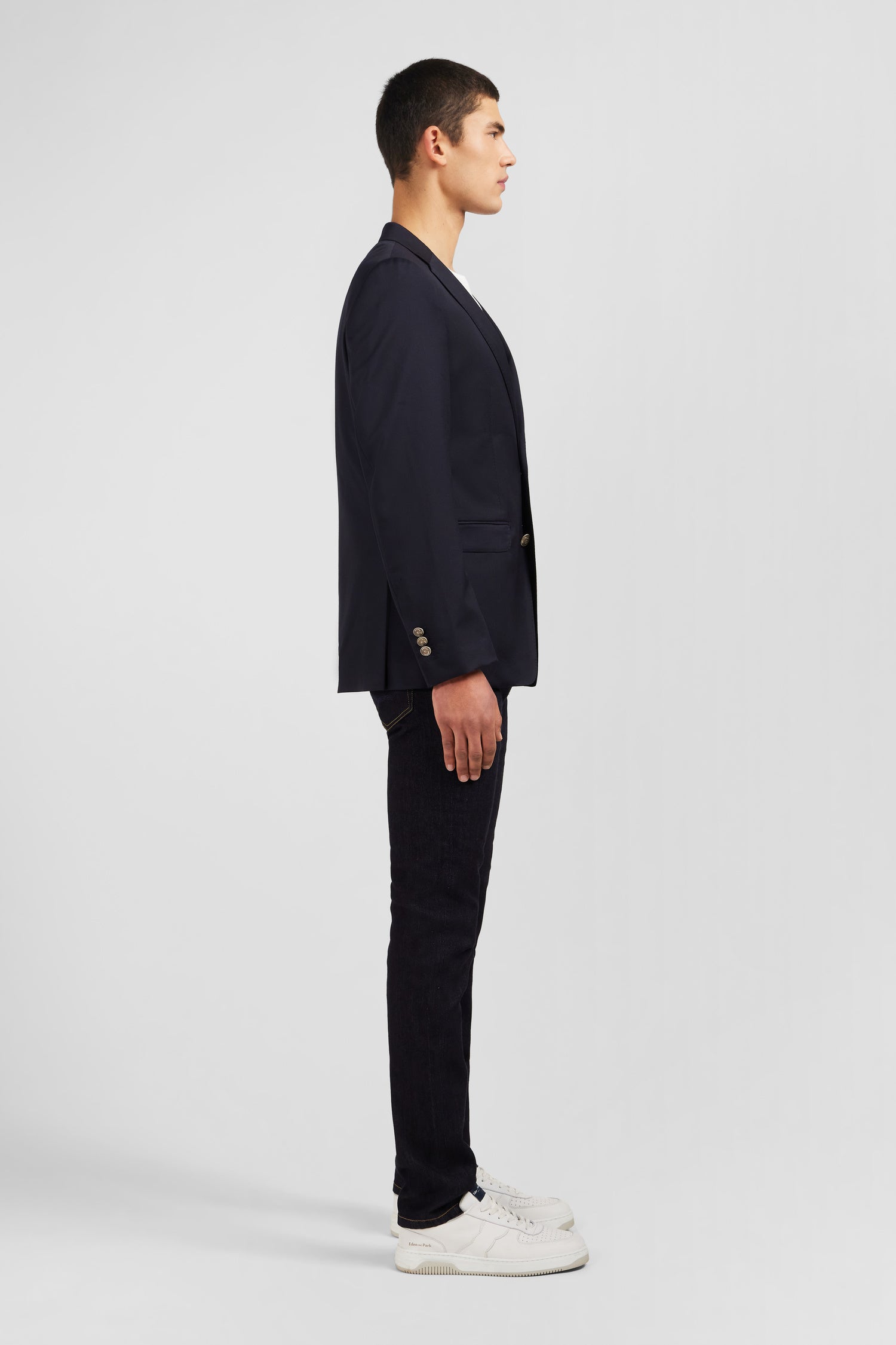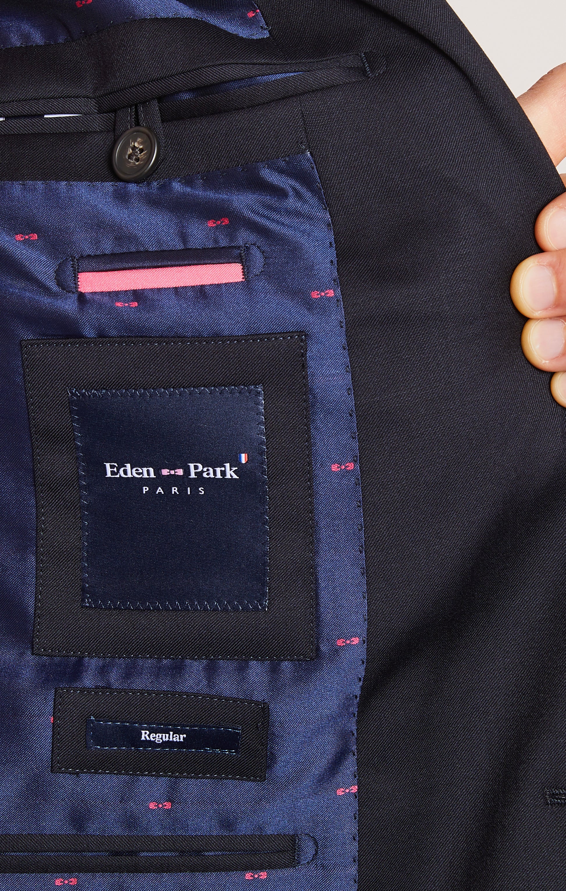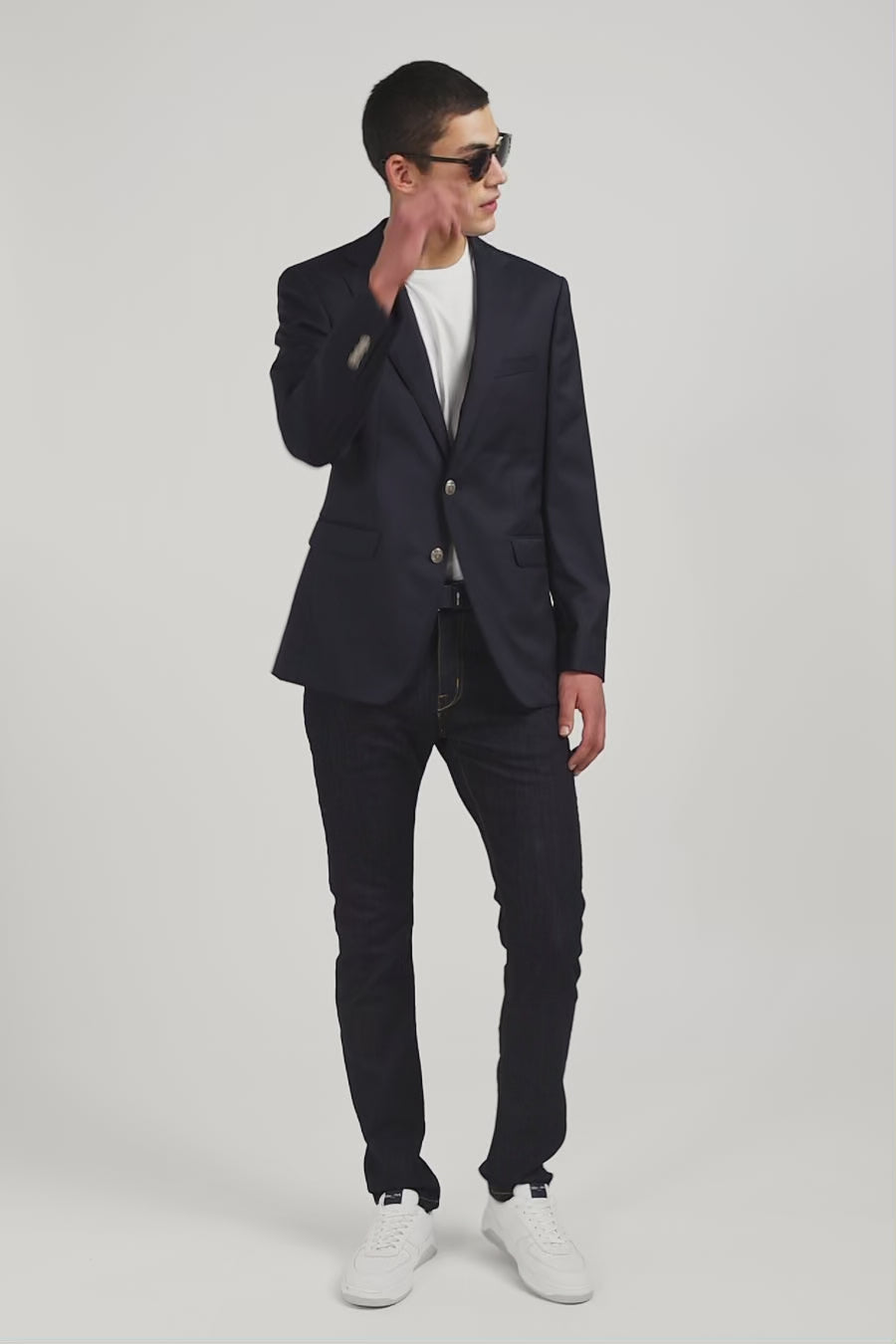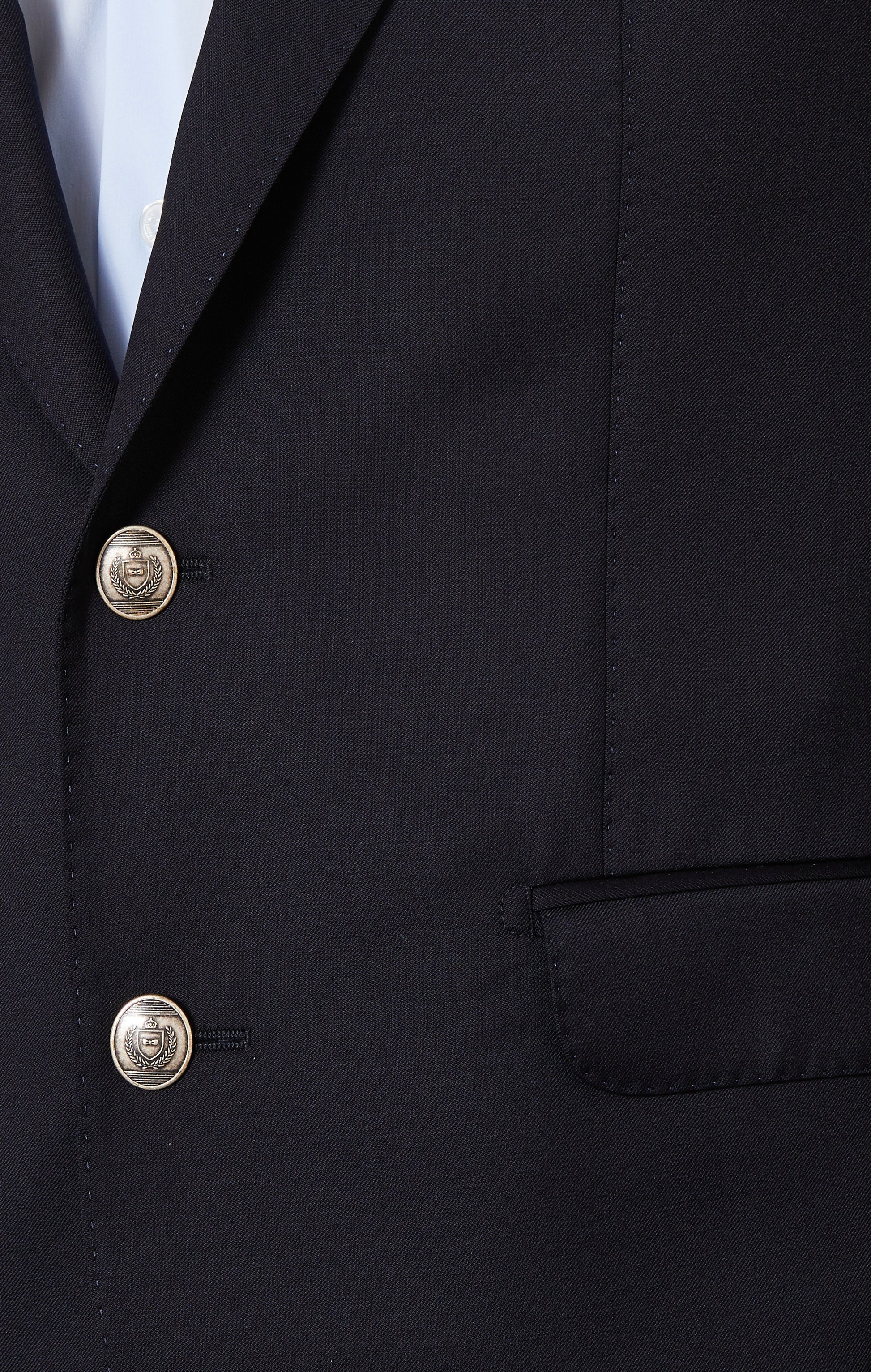 - 2 buttoned welt pockets and 1 inside ticket pocket