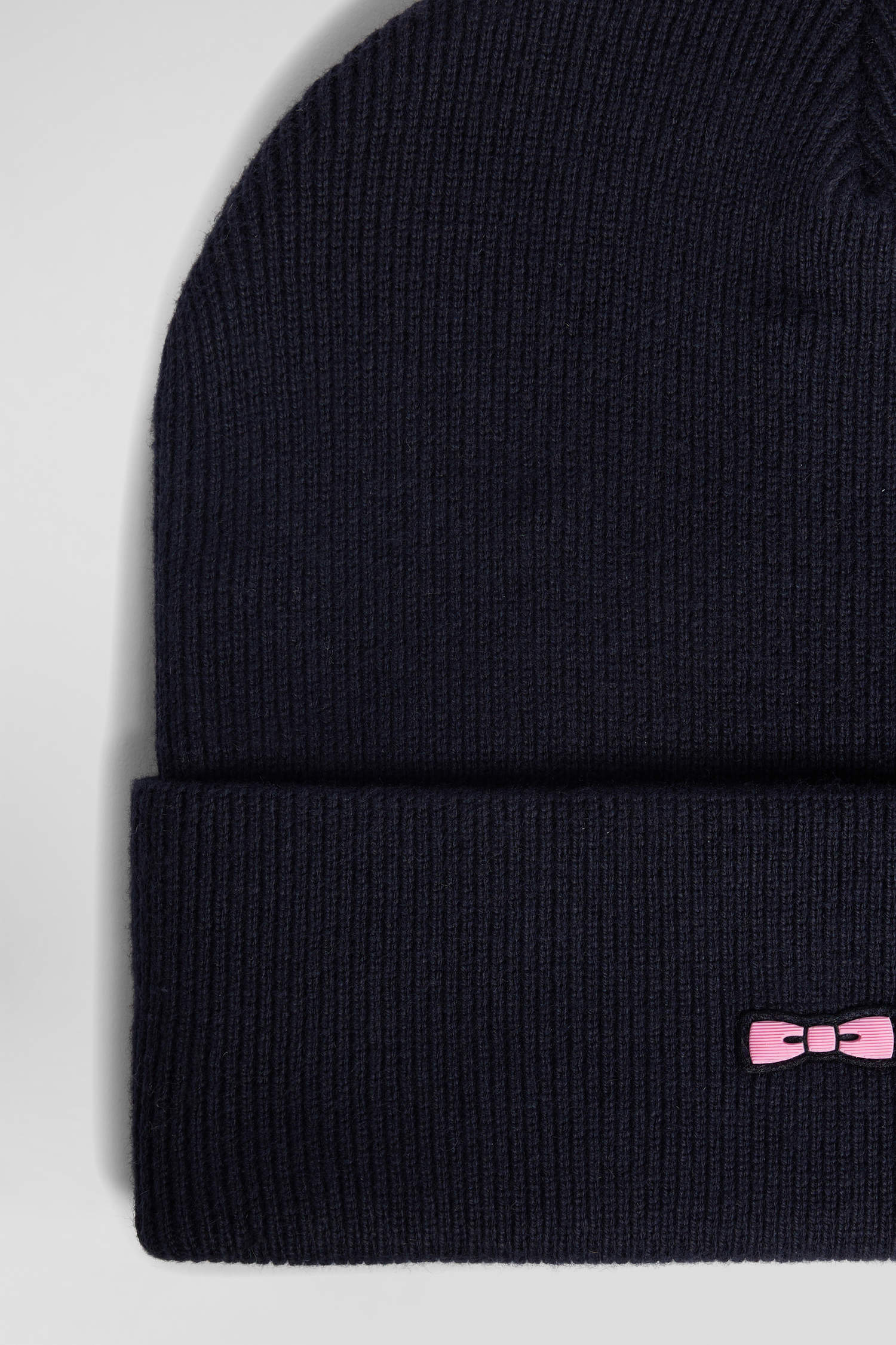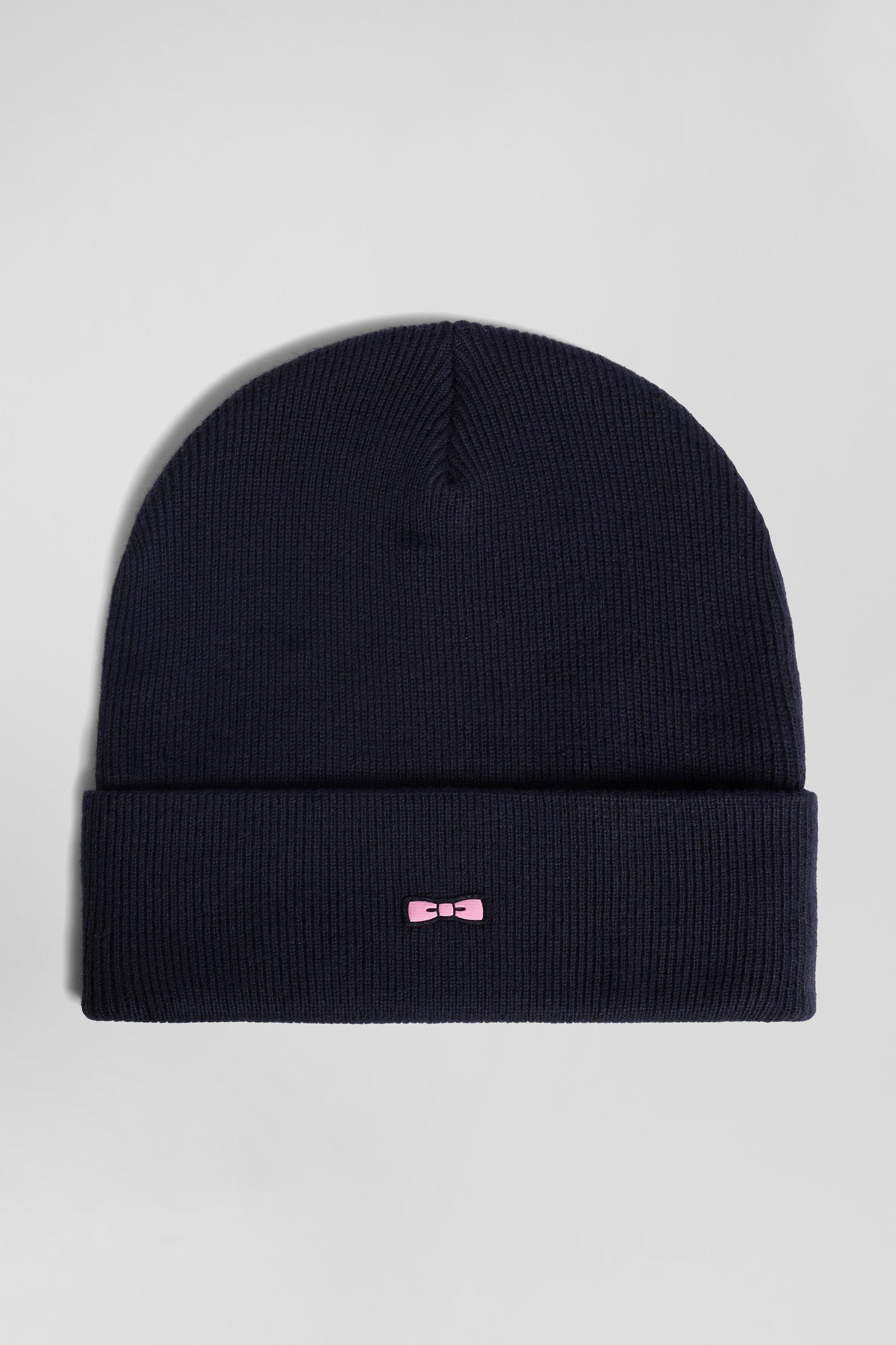 This knitted hat combines cotton and cashmere for warmth and style. Its ribbed trim ensures a perfect fit, while its pink bowtie embroidery adds a touch of elegance that's instantly recognizable.