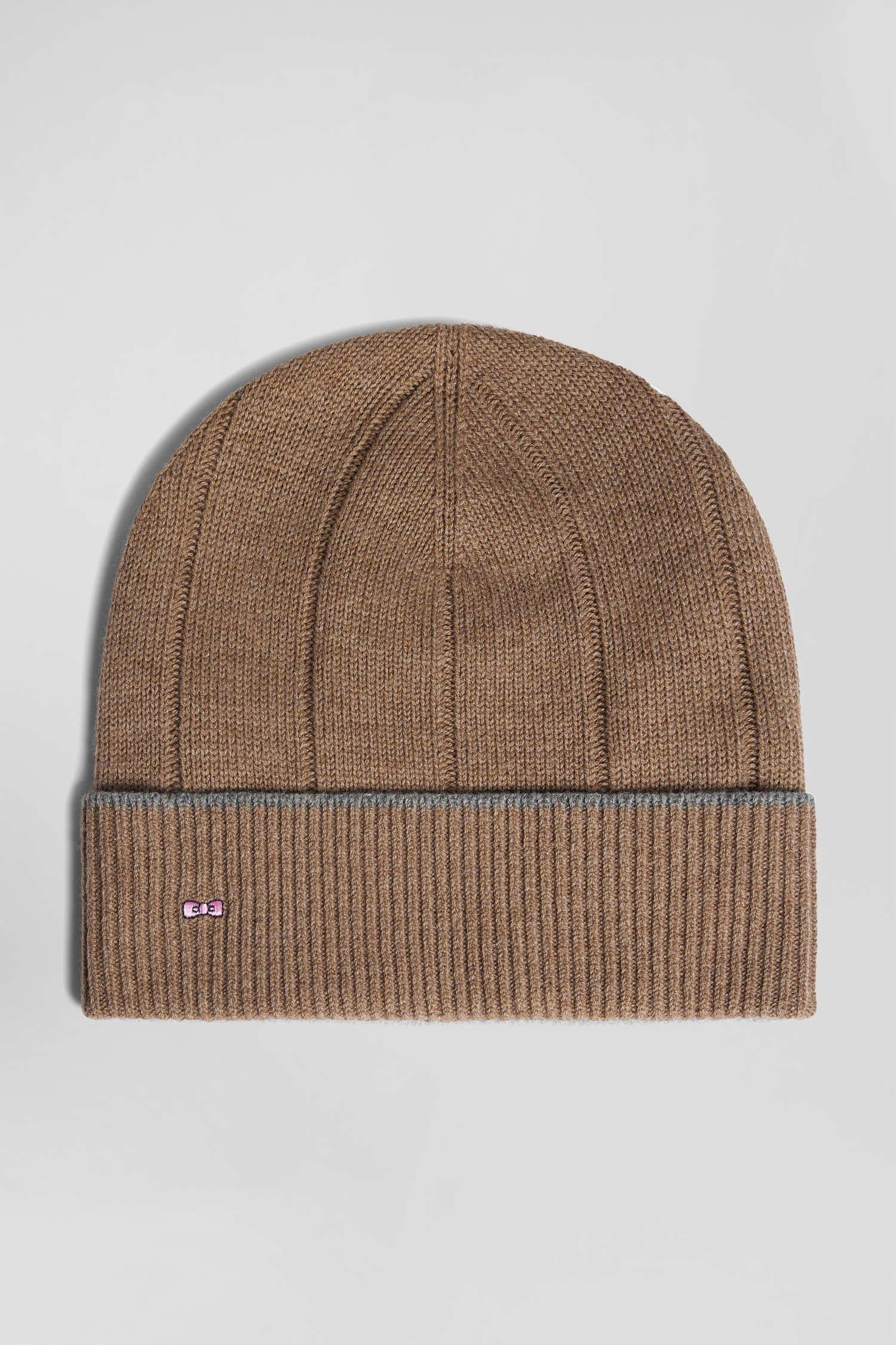 Brown cotton and cashmere beanie with contrasting trim