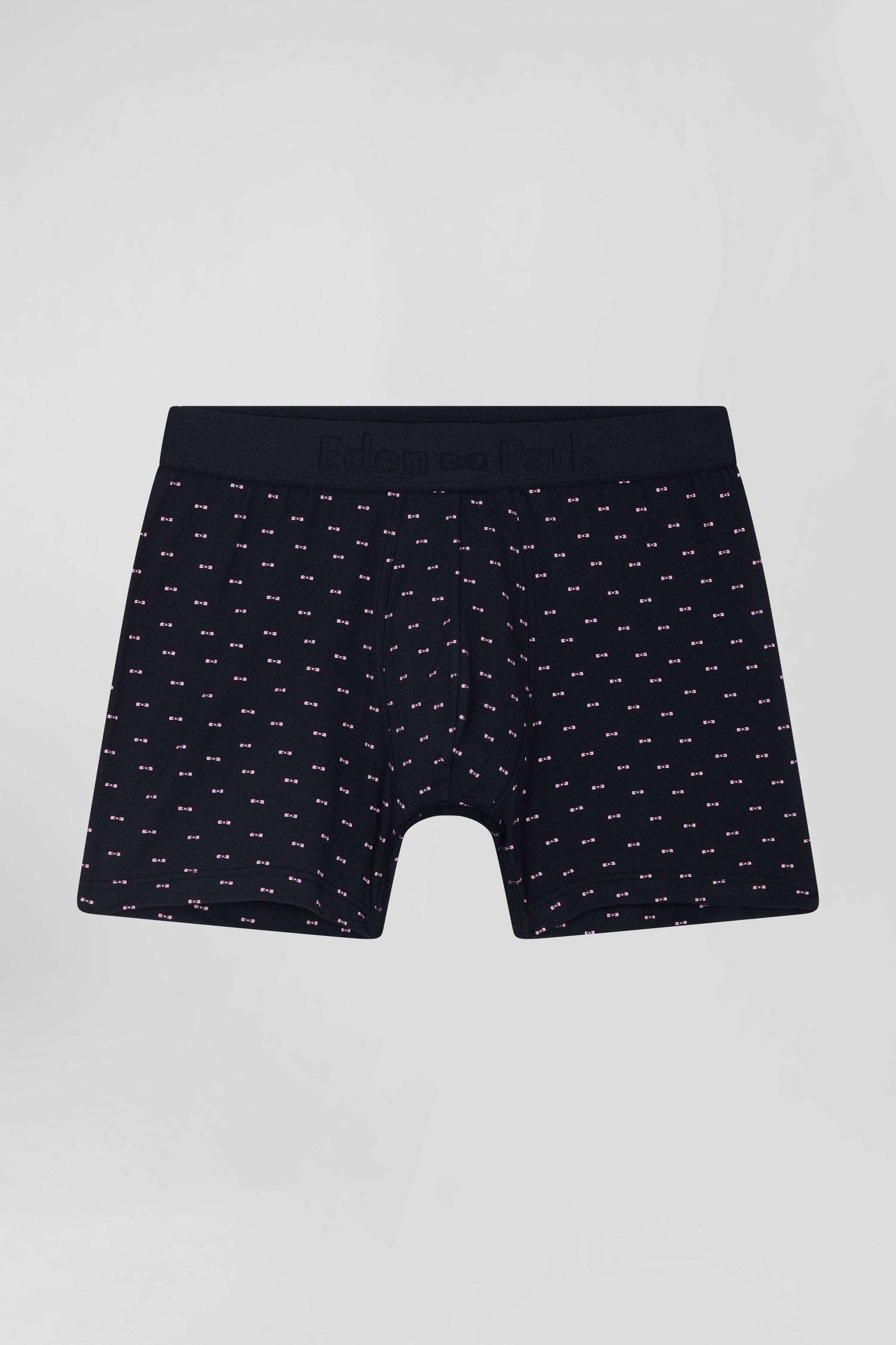 Our iconic bow tie is transformed into a facetious all-over micro pattern on these stretch cotton jersey boxer shorts. Featuring an elasticated waistband with the Eden Park name in tone-on-tone, these men's boxer briefs discreetly bear the Eden Park trademark, while the print proudly displays the Eden Park team.