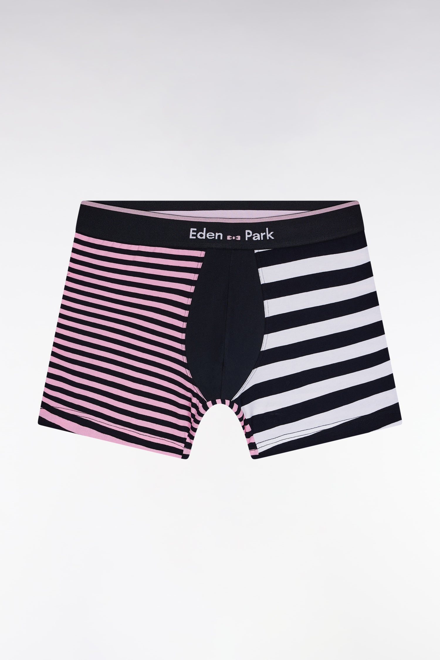 With its asymmetrical stripes revisiting the rugby codes dear to the House, these stretch cotton boxer shorts assert a resolutely sport-chic graphic allure. Perfect fit, second-skin comfort and an Eden Park branded elastic band complete this daring model.