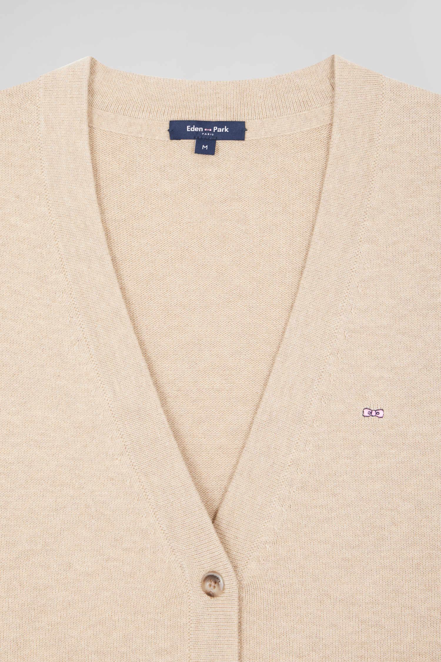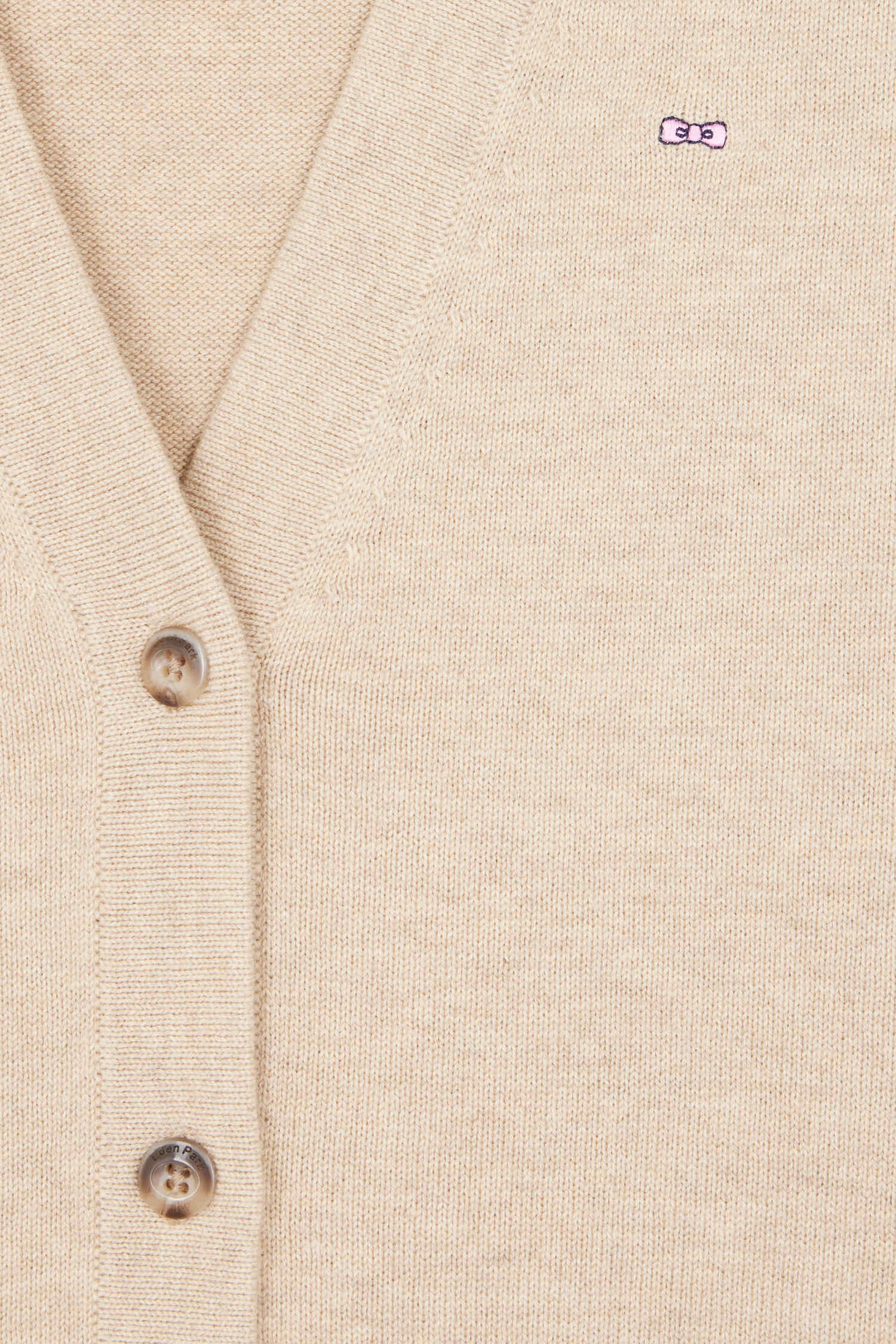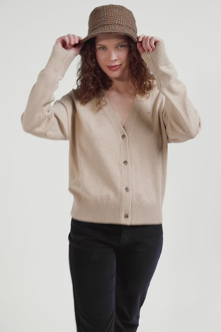 This timeless wool and cotton cardigan is available in six timeless colors to match your entire fall-winter wardrobe. Featuring classic buttoning and a V-neckline, this cardigan is slightly loose-fitting for easy layering, with ribbing at the sleeves and waist for a perfect fit. It's a safe choice for adding a touch of warmth and style to your wardrobe.