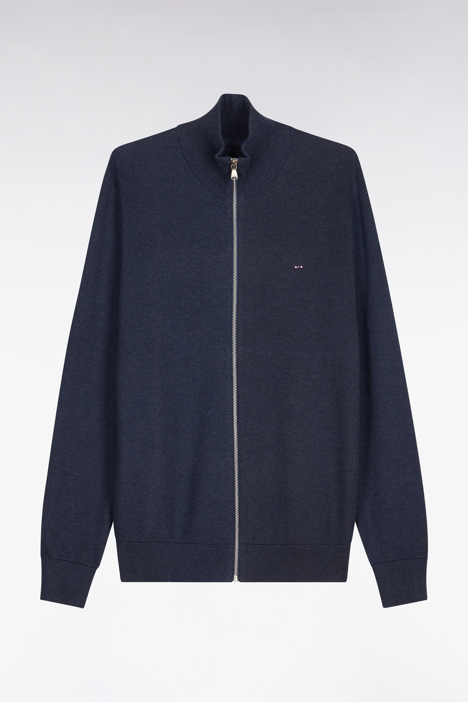 Pull col rond, col camionneur ou cardigan zippé vous invitent à choisir la pièce intemporelle qui rejoindra votre vestiaire. Ce pull à zip droit est tricoté en nid d'abeille dans un coton de haute qualité. Ce modèle classique et confortable s'accorde facilement à votre tenue, déclinée dans nos six coloris indémodables.