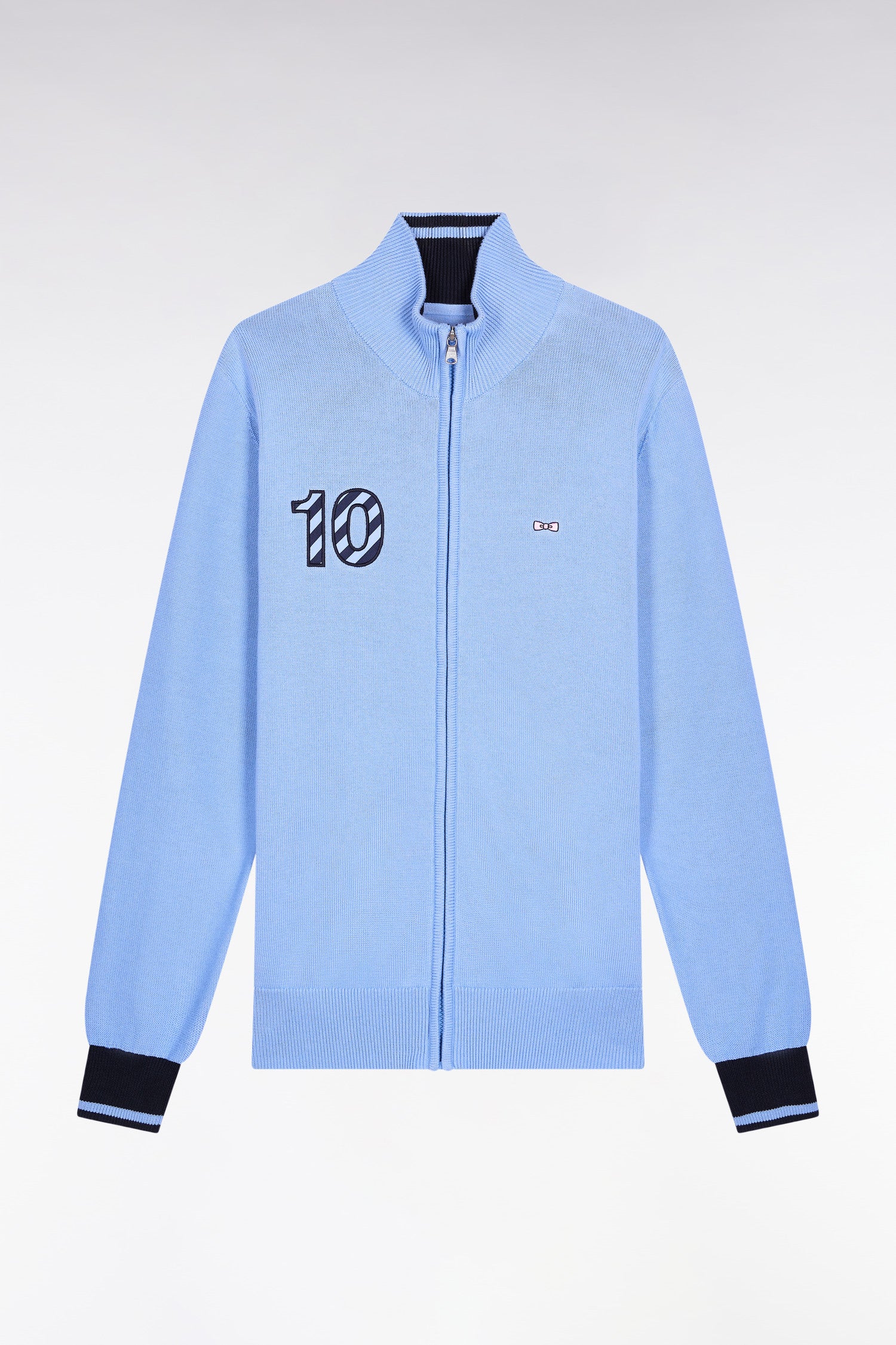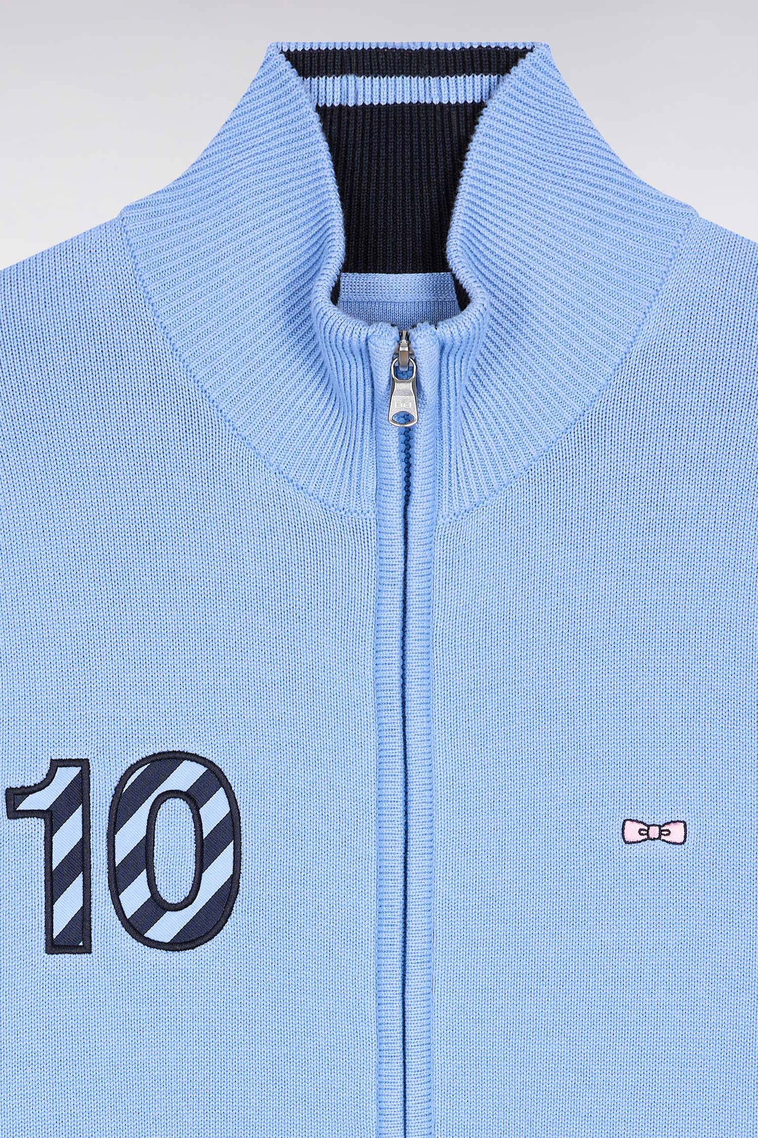 Navy cotton embroidered 10 sky straight-cut zipped cardigan