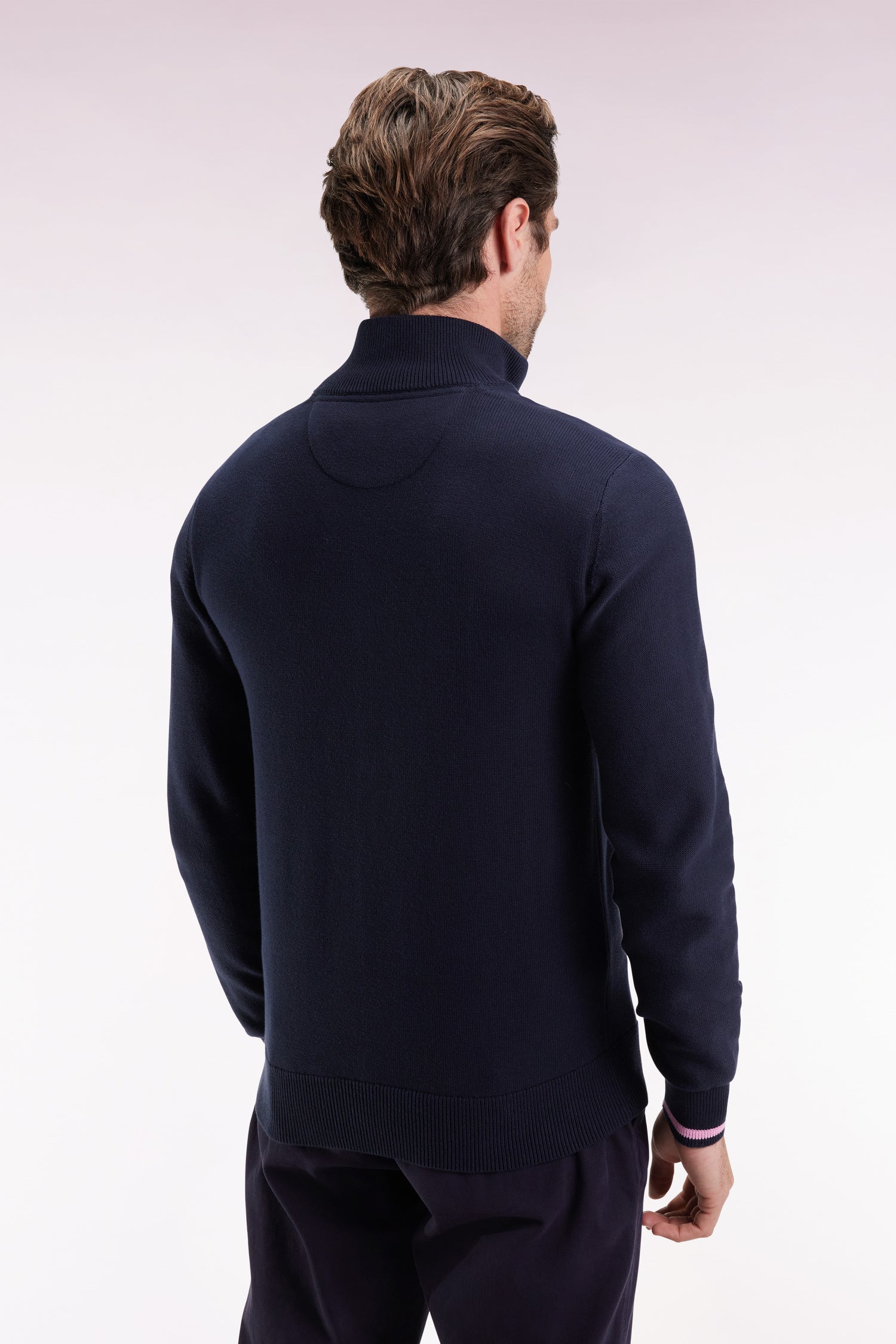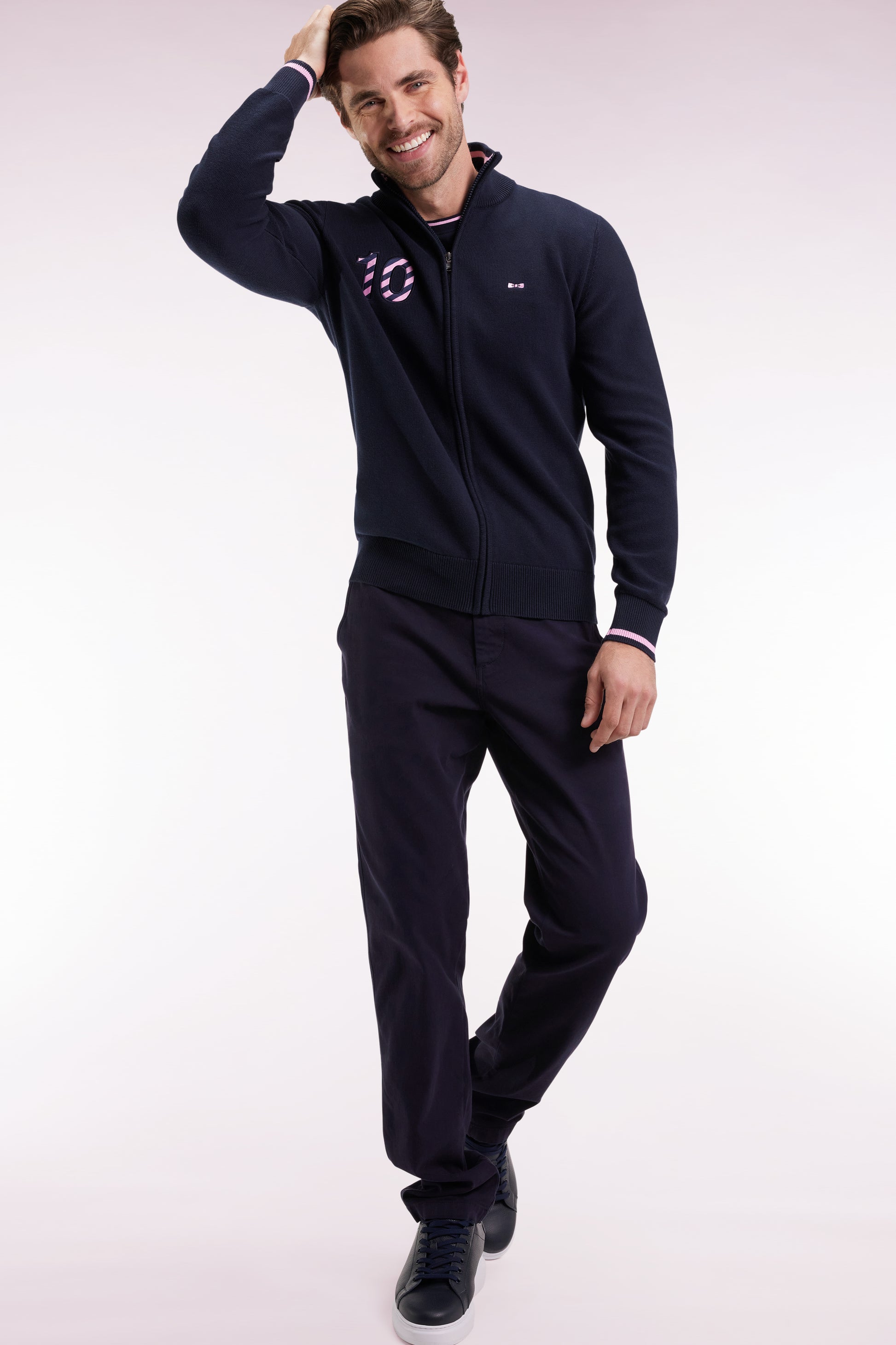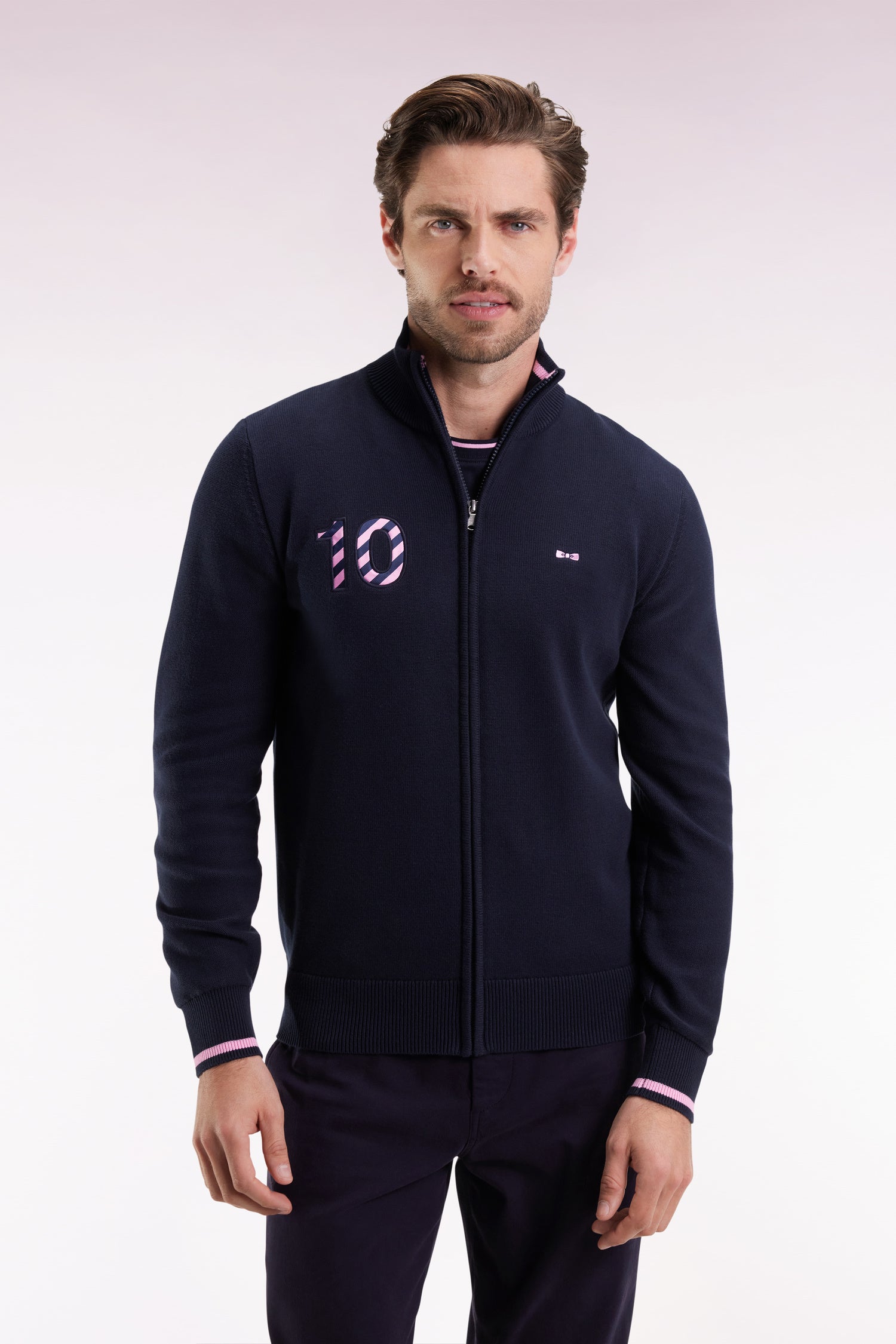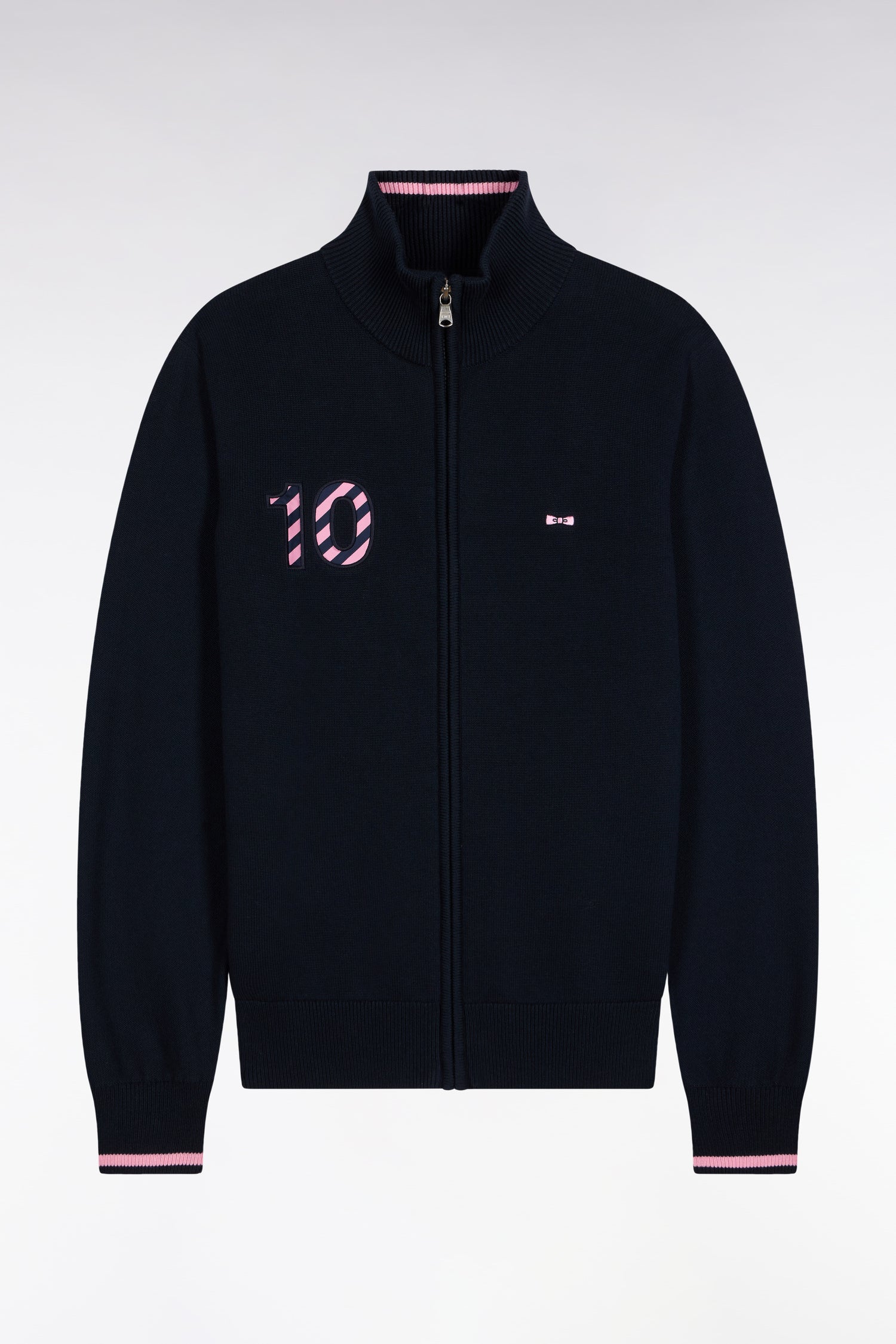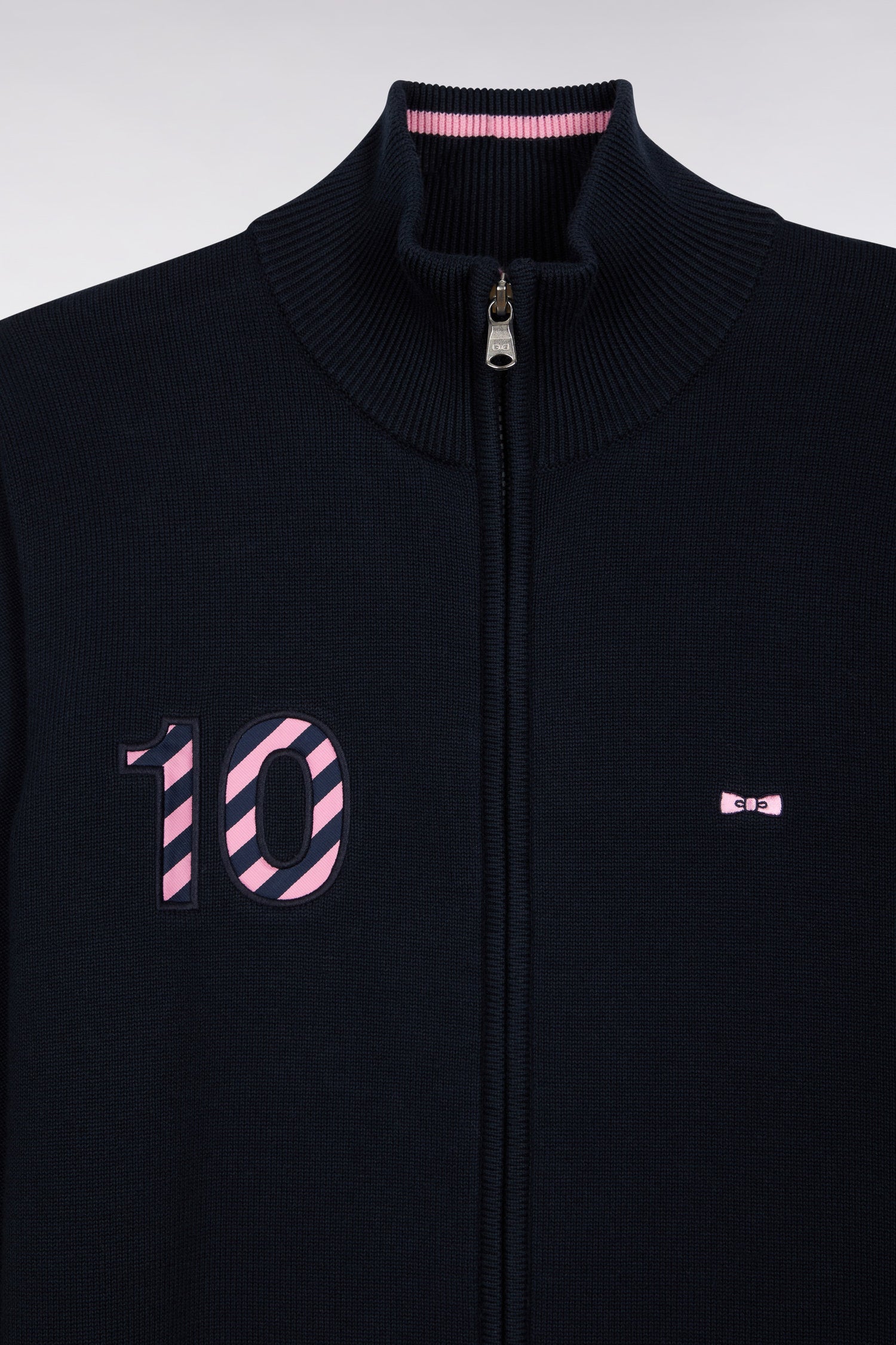 Navy cotton zipped cardigan embroidered 10 navy straight cut