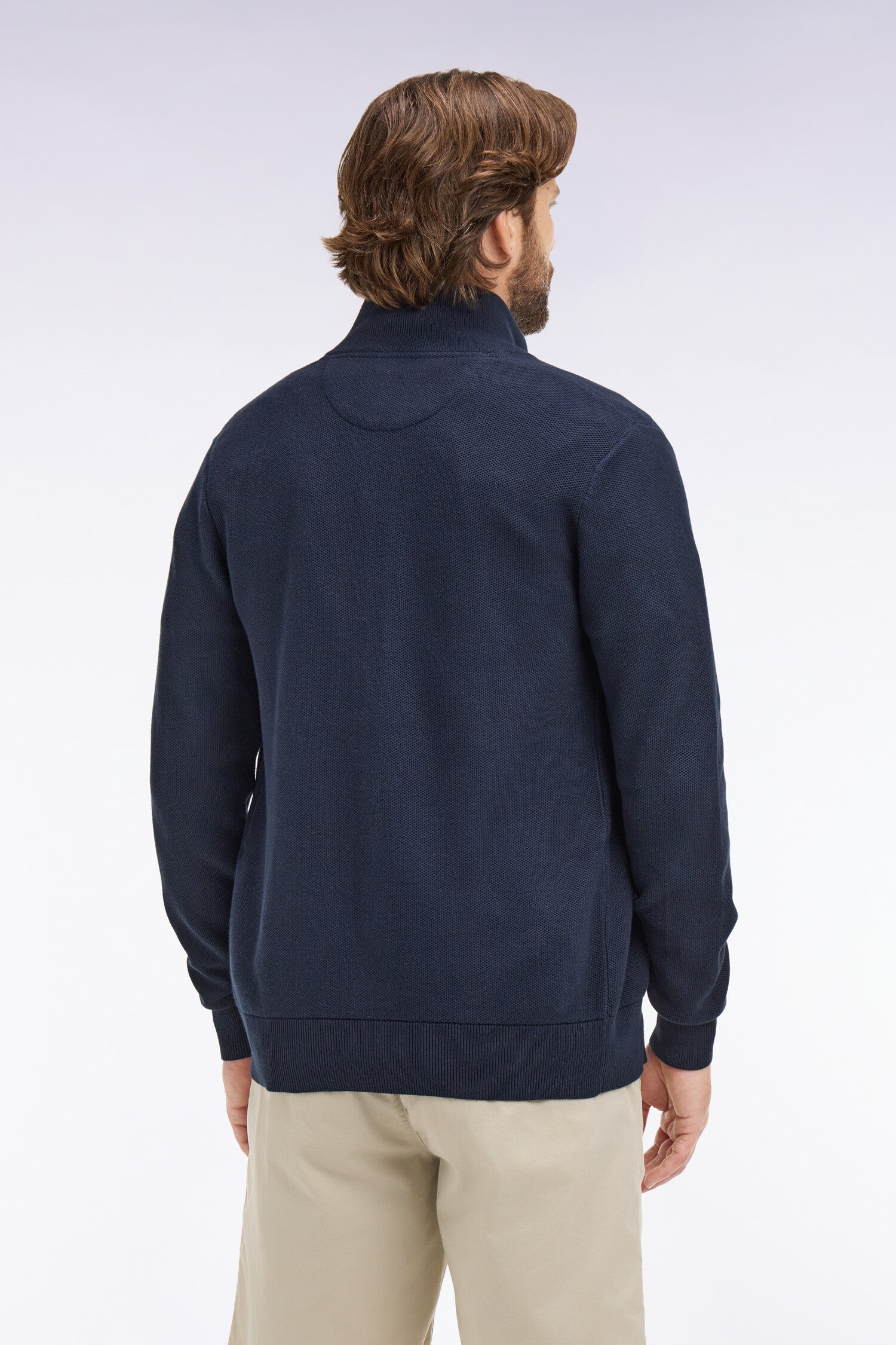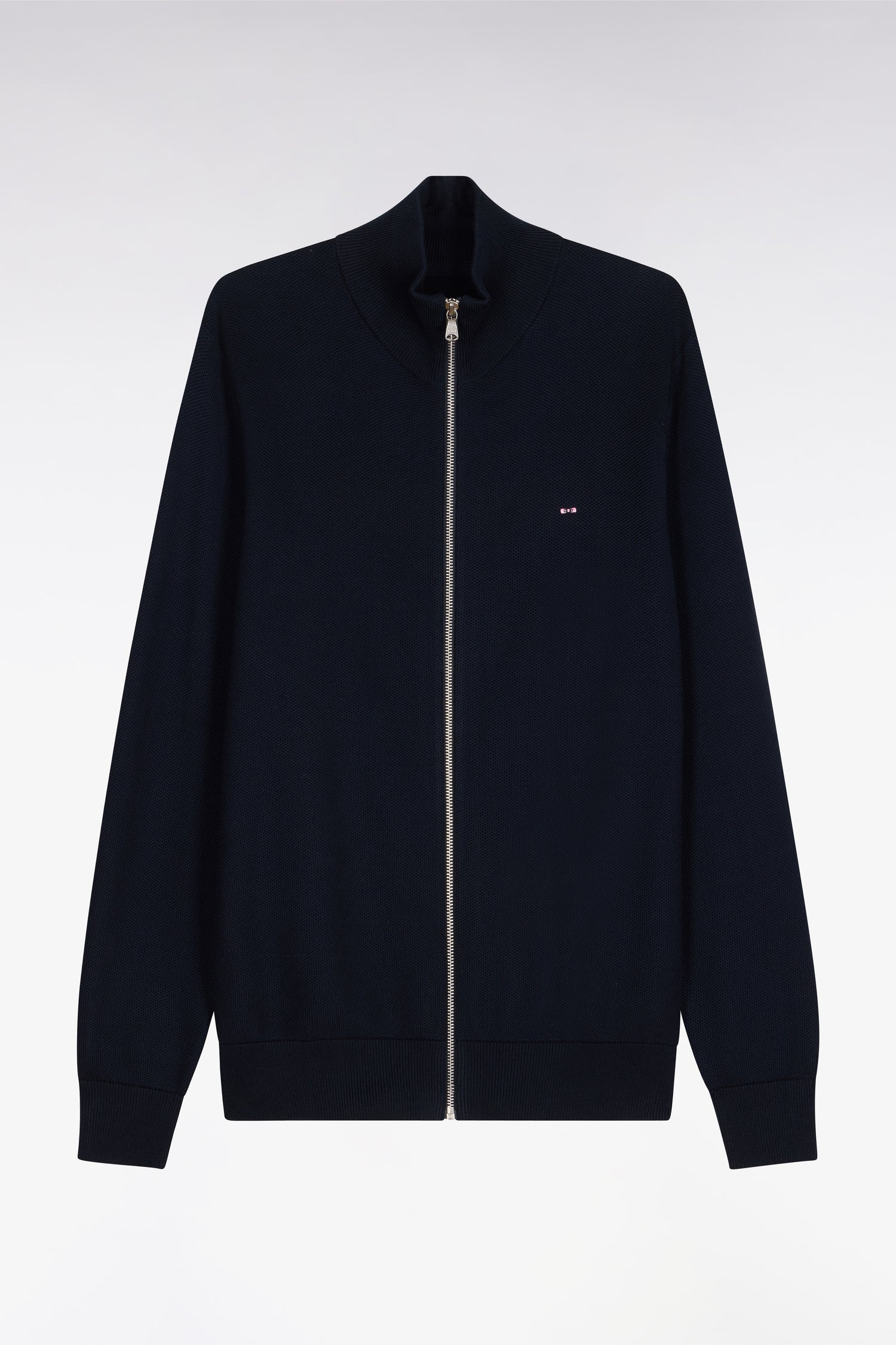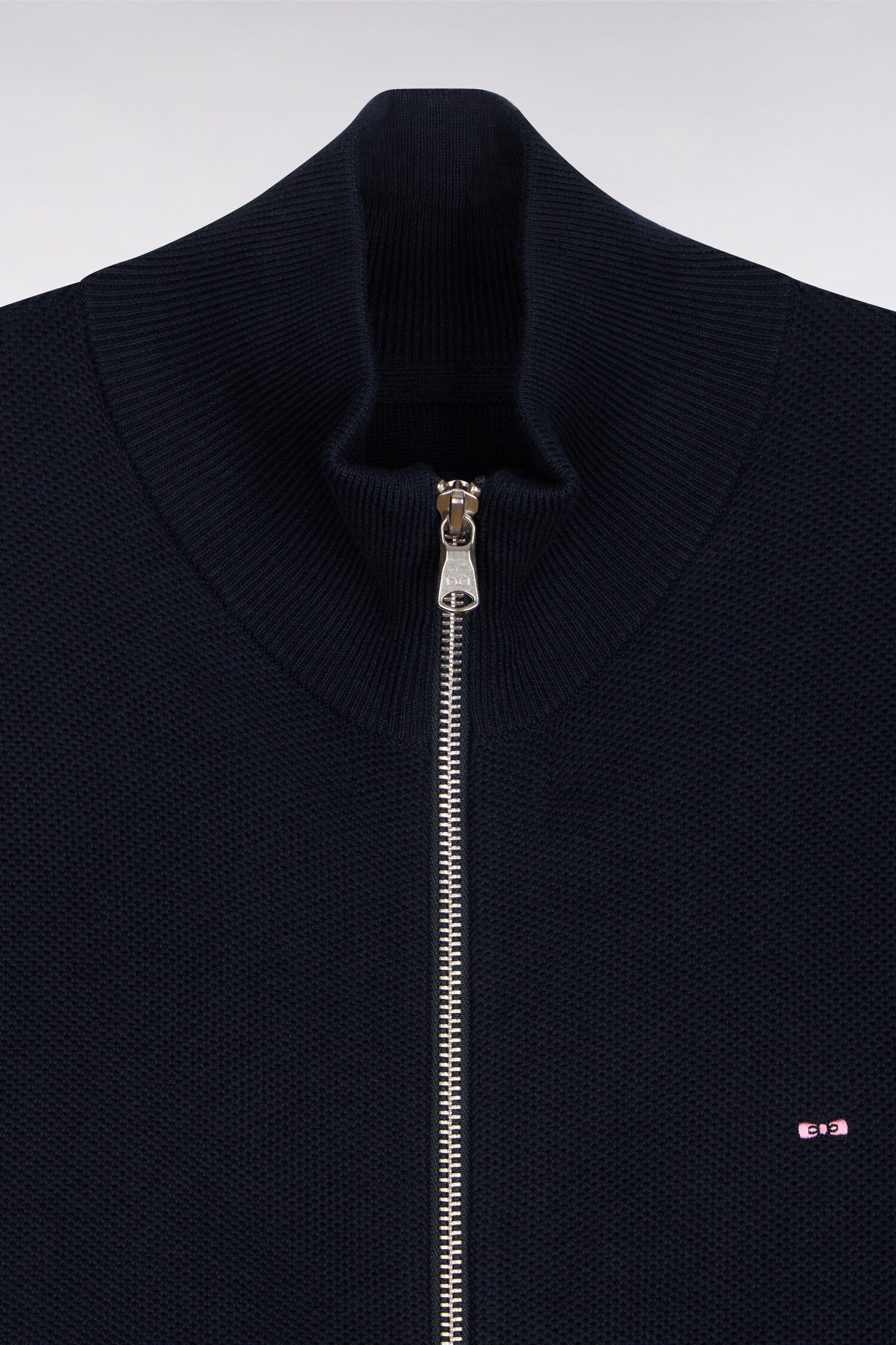 Pull col rond, col camionneur ou cardigan zippé vous invitent à choisir la pièce intemporelle qui rejoindra votre vestiaire. Ce pull à zip droit est tricoté en nid d'abeille dans un coton de haute qualité. Ce modèle classique et confortable s'accorde facilement à votre tenue, déclinée dans nos six coloris indémodables.