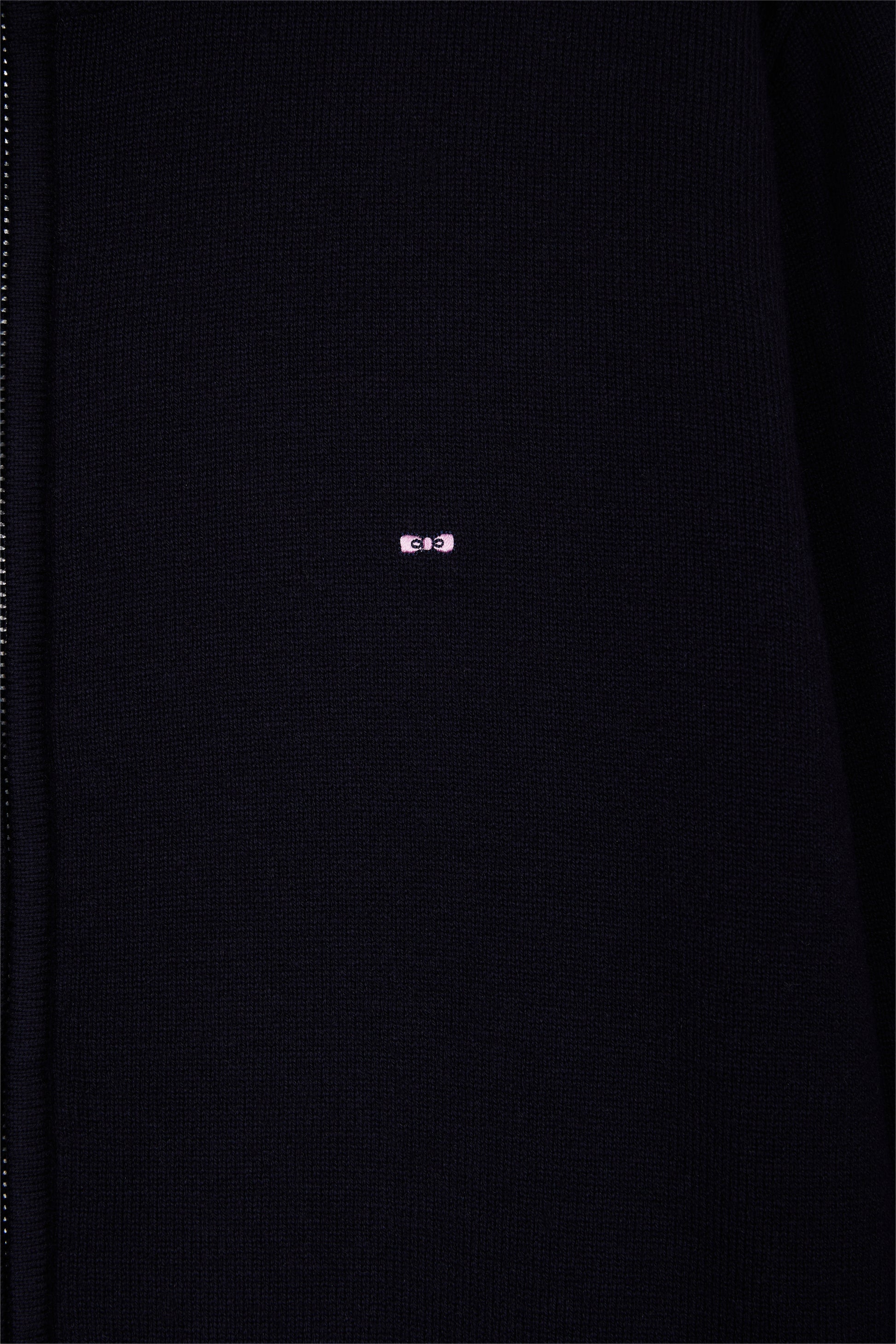 This zipped cardigan in cotton and wool jersey is a classic for men's autumn-winter wardrobes. The bowtie embroidery on the chest adds a distinctive signature to this minimalist model, with its stand-up collar guaranteeing comfort and elegance for everyday wear.