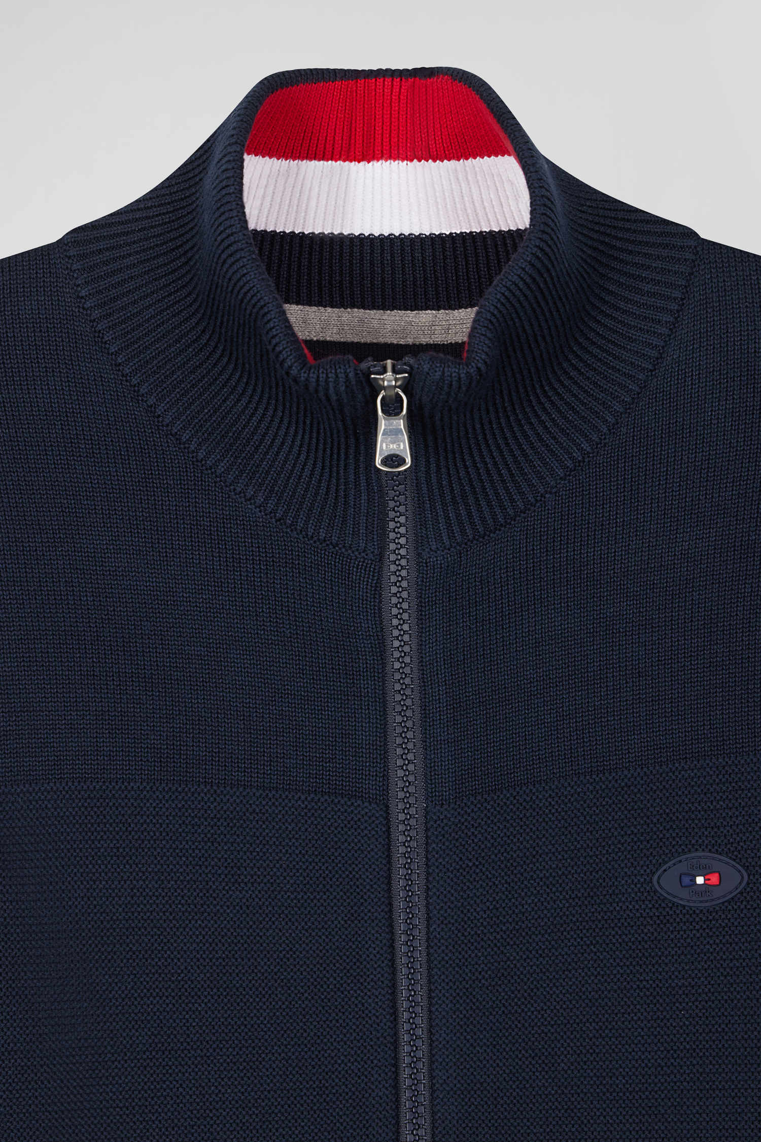 Regular XV de France navy blue cotton zipped cardigan with tricolour details