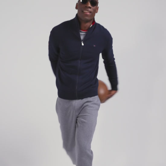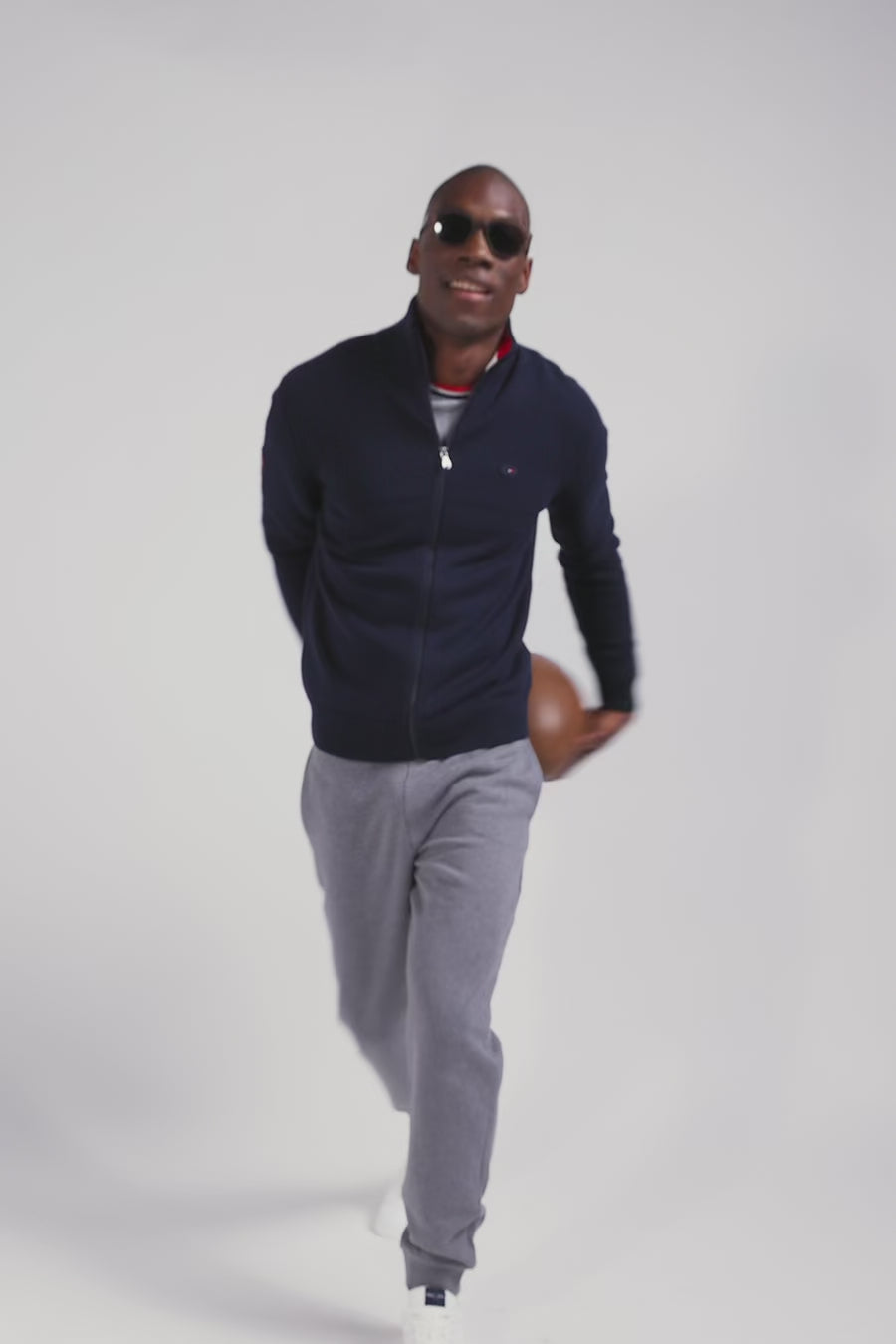 Celebrate the spirit of the XV de France with our zippered cardigan, proudly adorned with crests and embroidery that pay homage to this legendary team. The tricolor collar adds a graphic touch, reflecting the colors of France with elegance. Designed for passionate fans as well as men looking for a trendy piece with athletic influences, this cardigan combines style and comfort. Wear it with jeans for sporty-chic everyday wear.