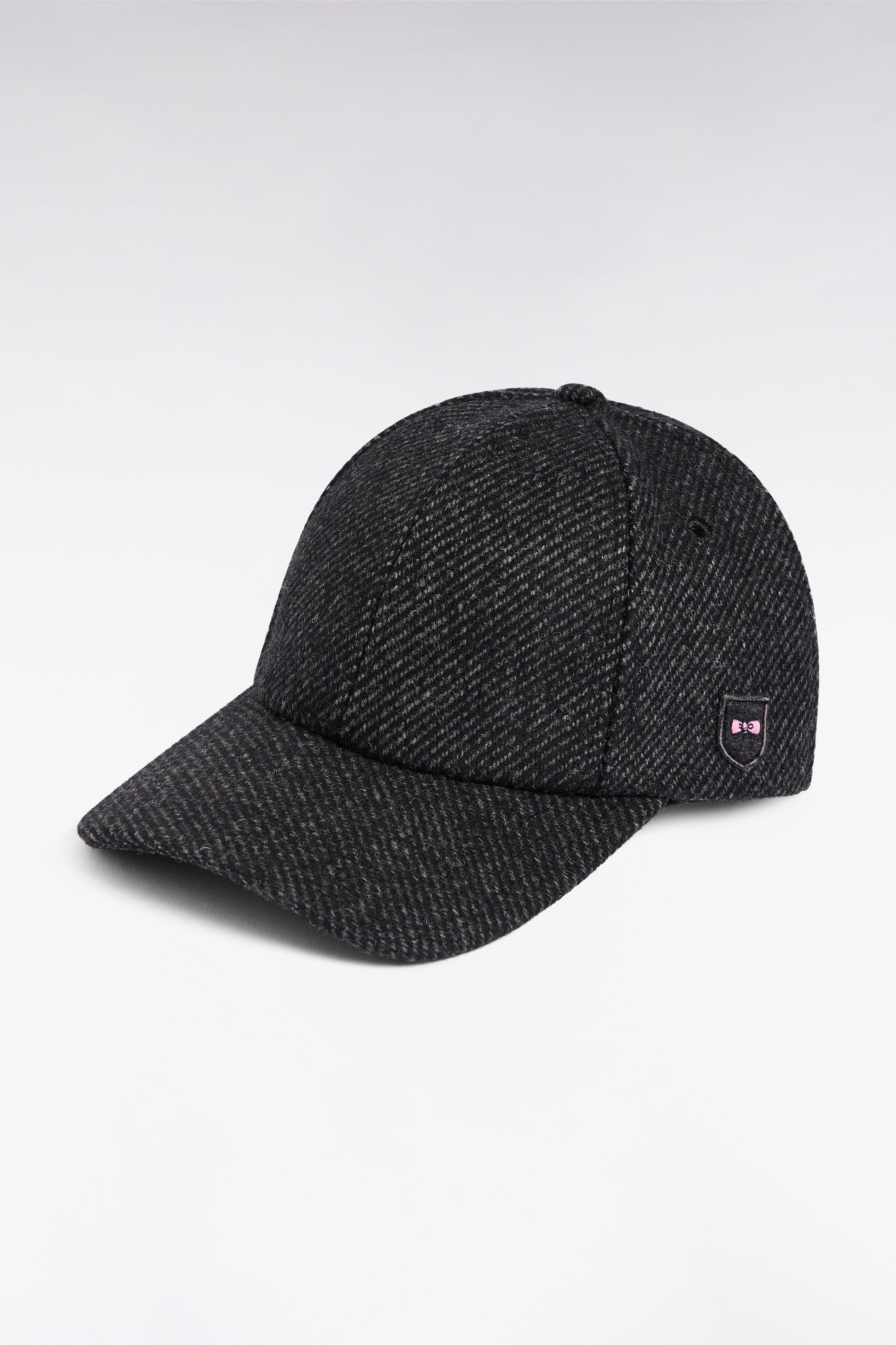 This cap in grey wool herringbone is made of elegant, noble materials with a lightly textured finish. A sober, refined accessory, ideal for adding a chic touch to your seasonal outfits.