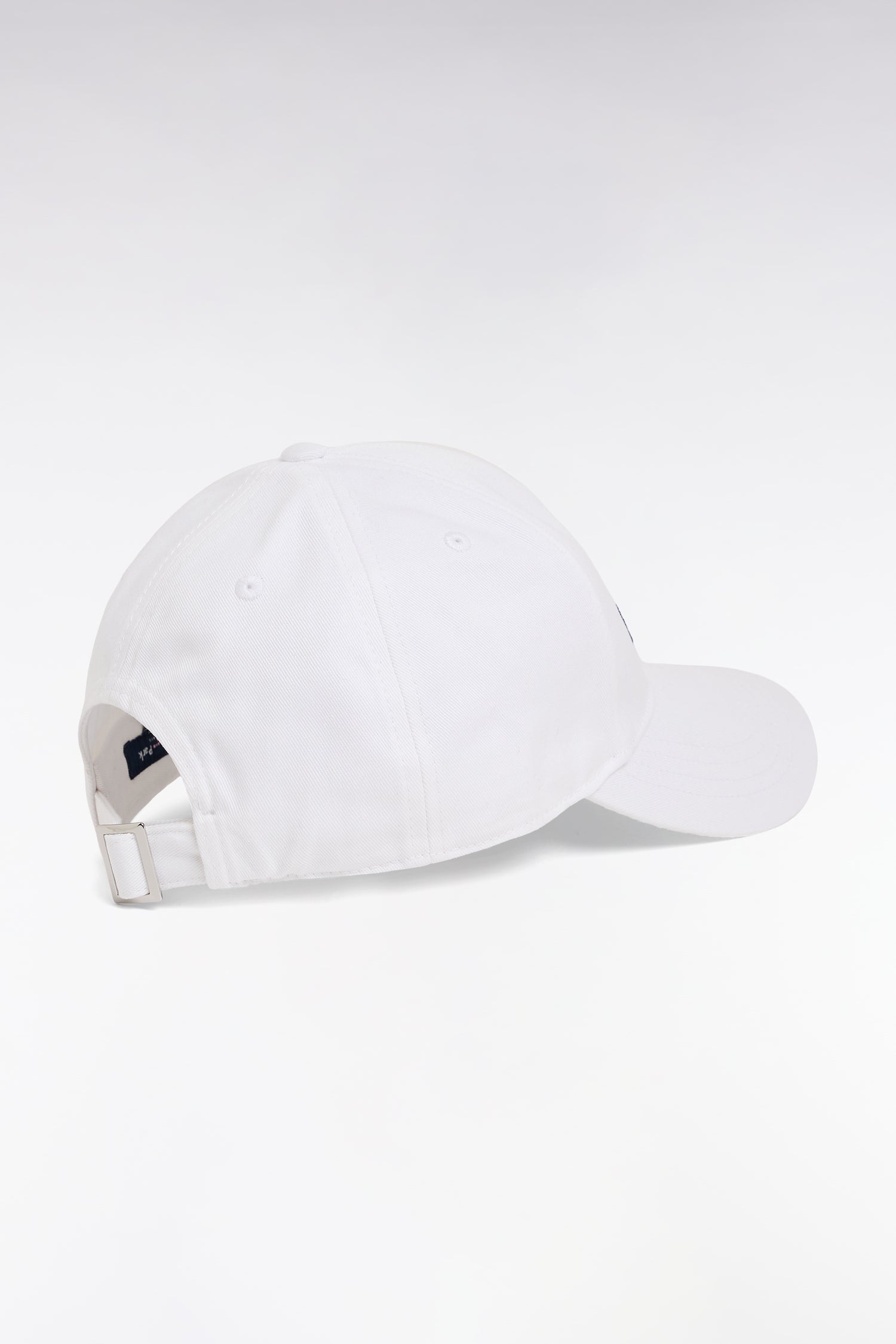 Confectionnée en twill de coton uni en blanc, marine ou rose, cette casquette présente une broderie au nom de notre Maison et une doublure partiellement colorée. Un accessoire sportif et tendance idéal pour dynamiser une silhouette du quotidien, de la ville aux vacances.