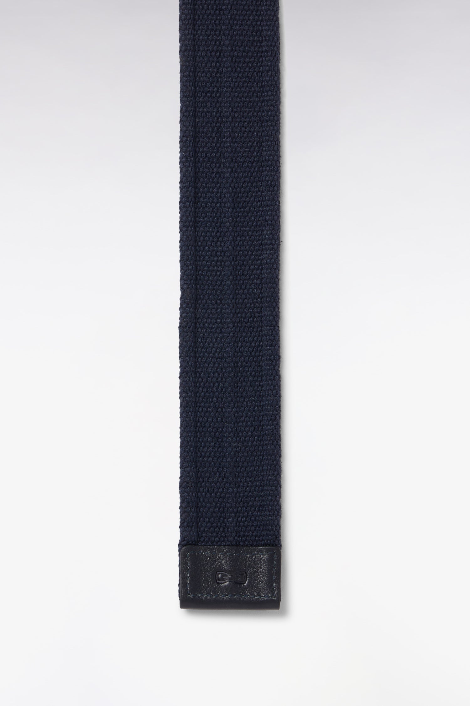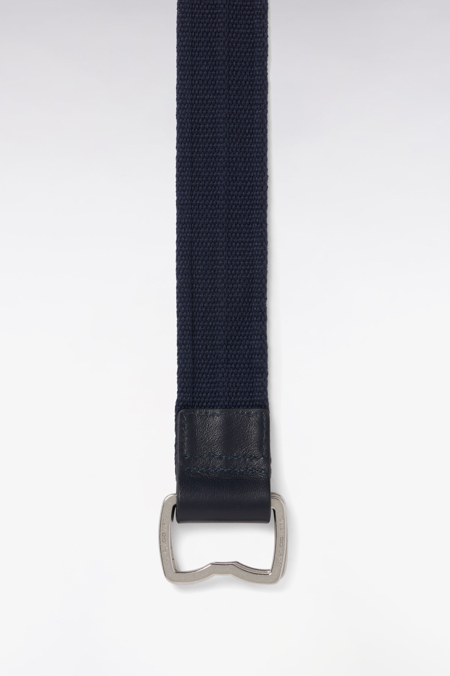 Ceinture en cuir et textile marine à boucle nœud papillon