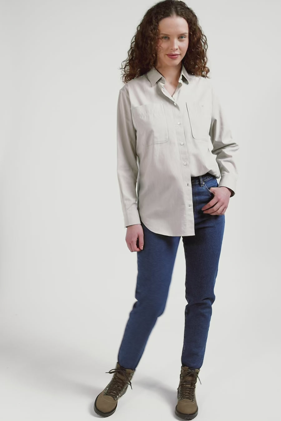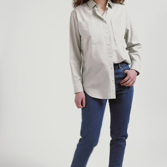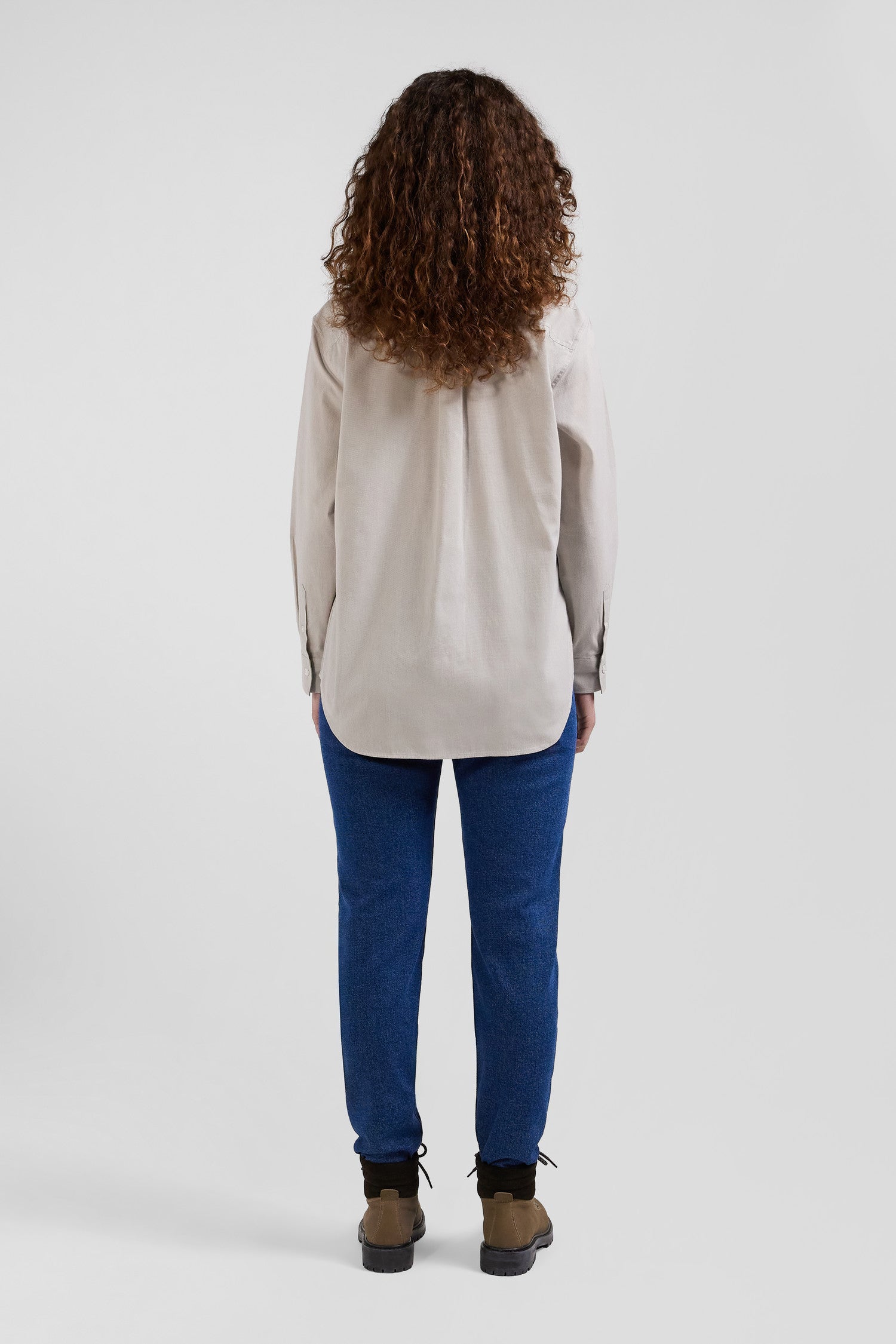 Featuring a check pattern and two patch pockets, this casual women's shirt assumes its masculine inspirations. Its relaxed, slightly loose fit adds a modern touch to this women's shirt, which can be paired with jeans or chino pants. This cotton-fiber model is available in pink or gray.