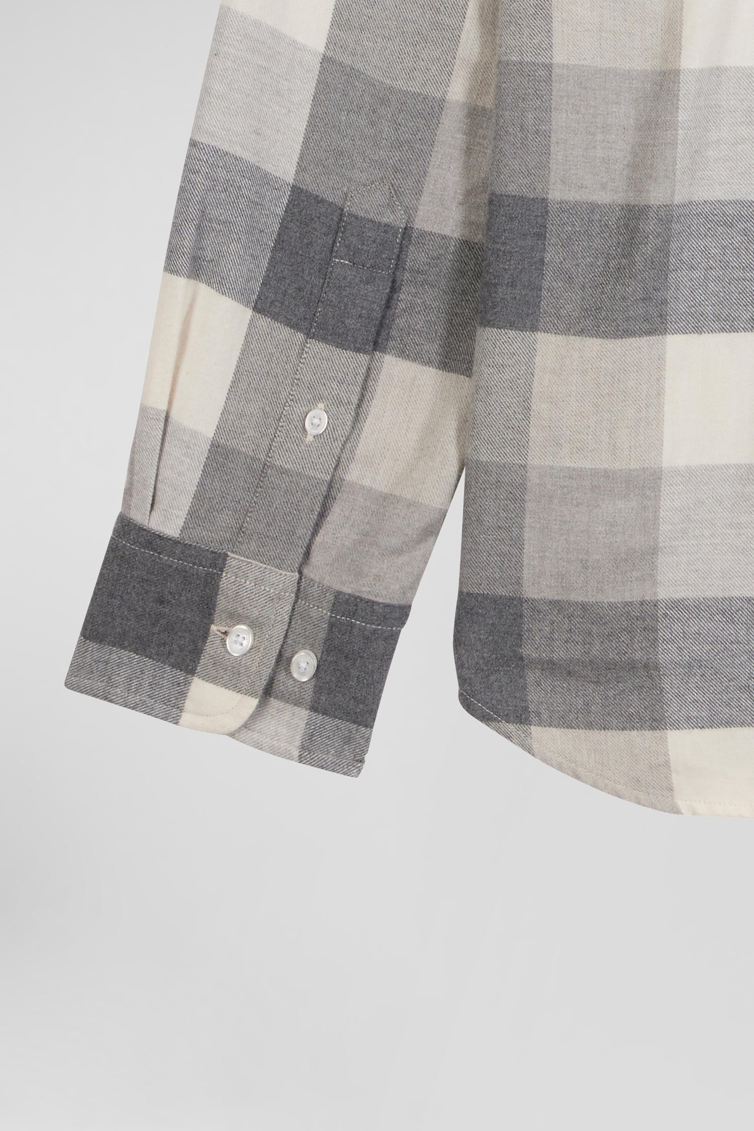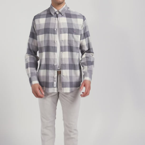 In gray or pink, discover the casual charm of our soft cotton plaid shirt, a fall-winter wardrobe essential. With its straight cut and button-down collar, this men's shirt with patch pocket offers comfort and elegance. The embroidered pink bow tie on the chest adds a distinctive touch, perfect for a trendy, casual overshirt.