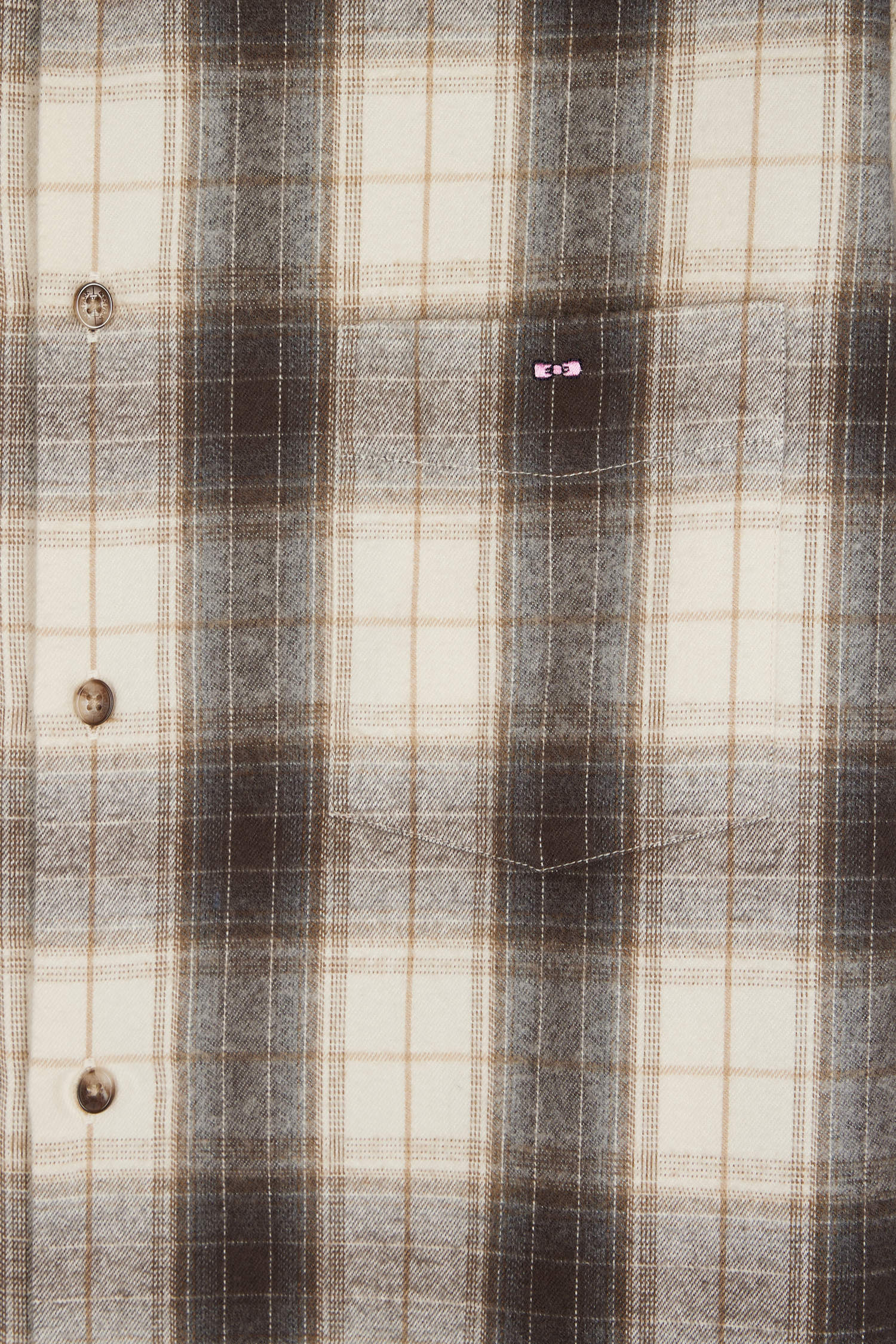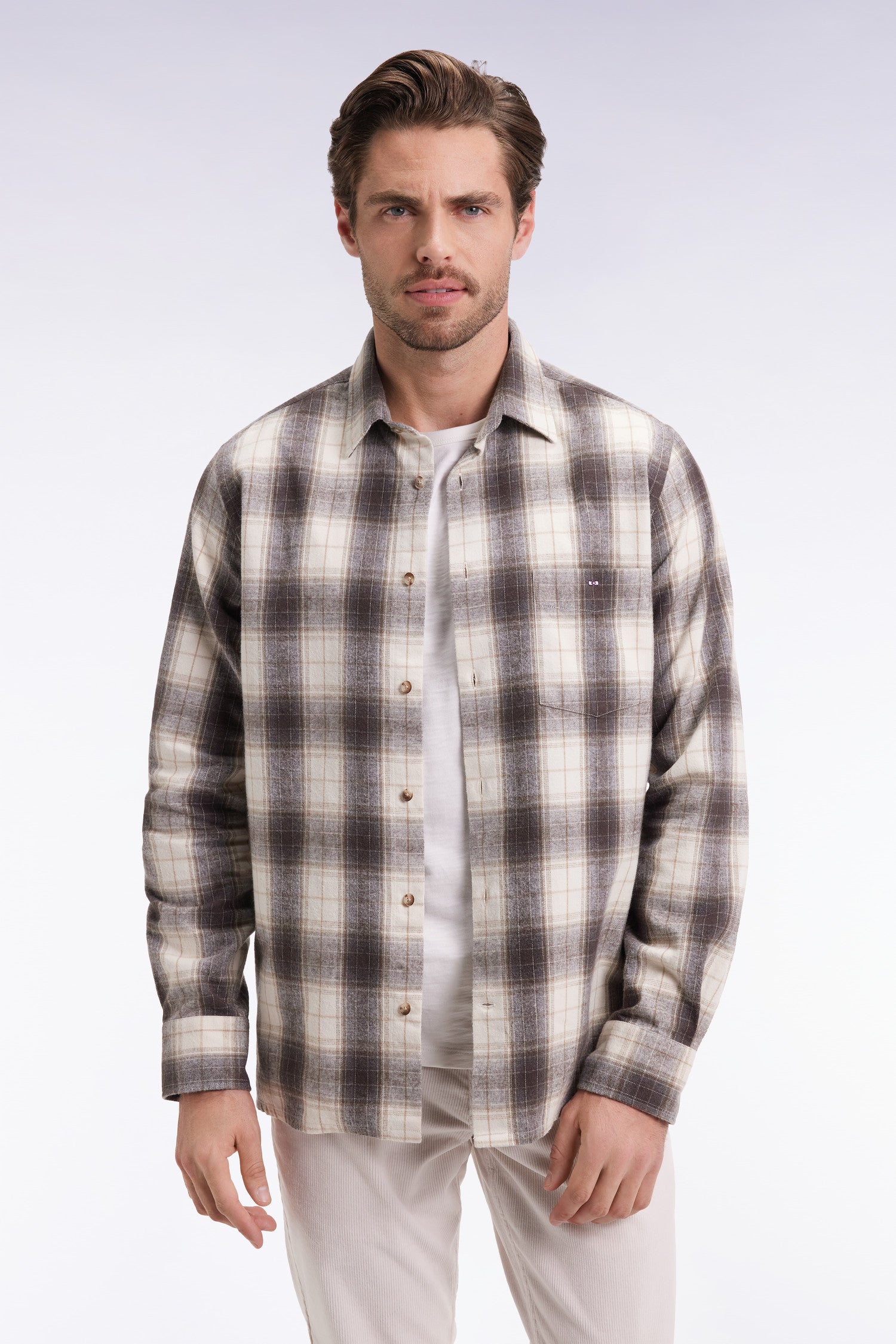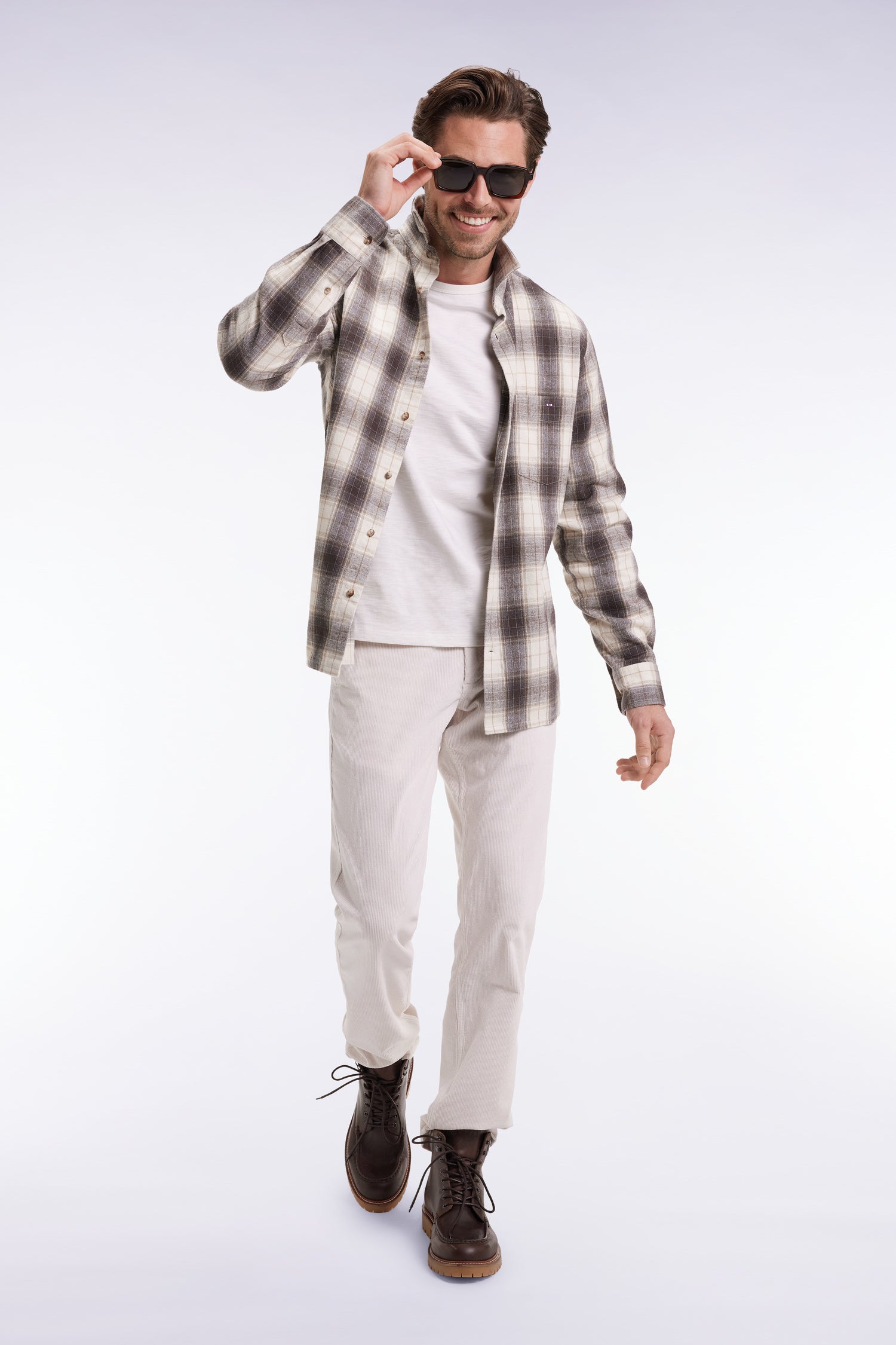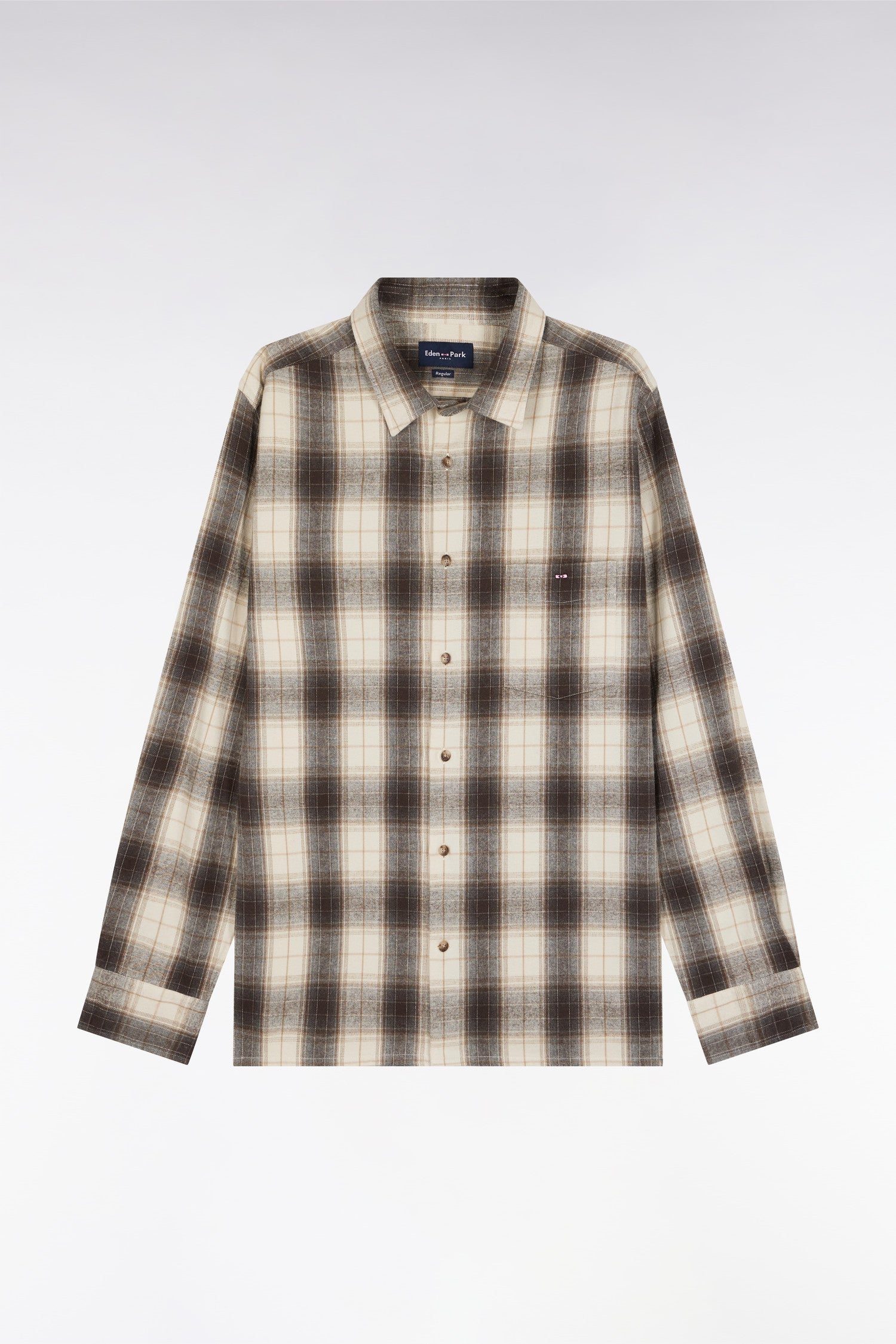 This men's shirt in 100% cotton Japanese check pattern combines authenticity and modernity. Available in a regular straight cut, it asserts its character with a graphic motif worked in refined shades that are easy to match with your favorites. The embroidered bow tie on the breast pocket discreetly marks its place in the Eden Park wardrobe. Its minimalist, straight-cut pant makes it an ideal overshirt for perfecting your layering games in the heart of the autumn-winter season. A model that combines comfort with a sense of raw elegance.