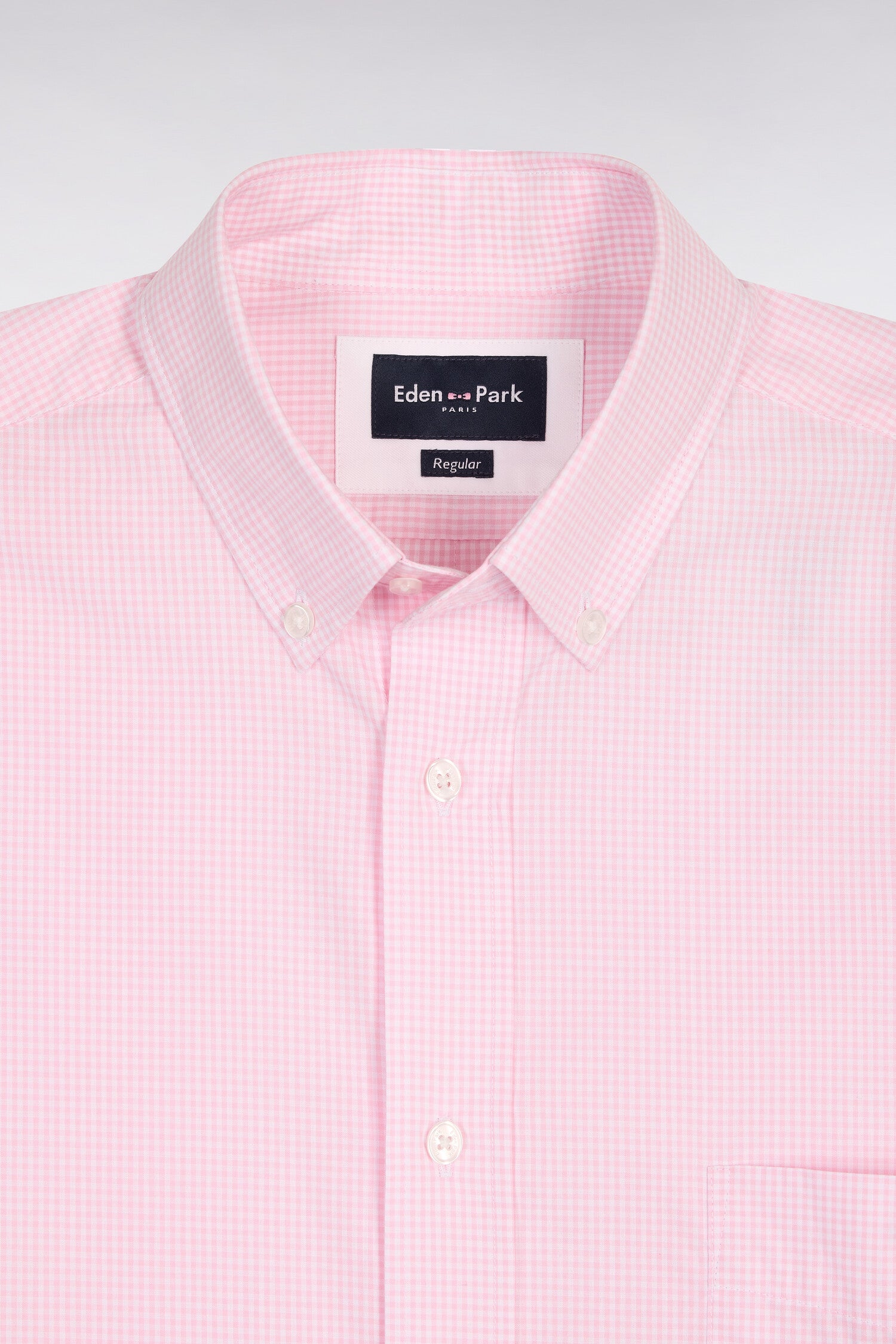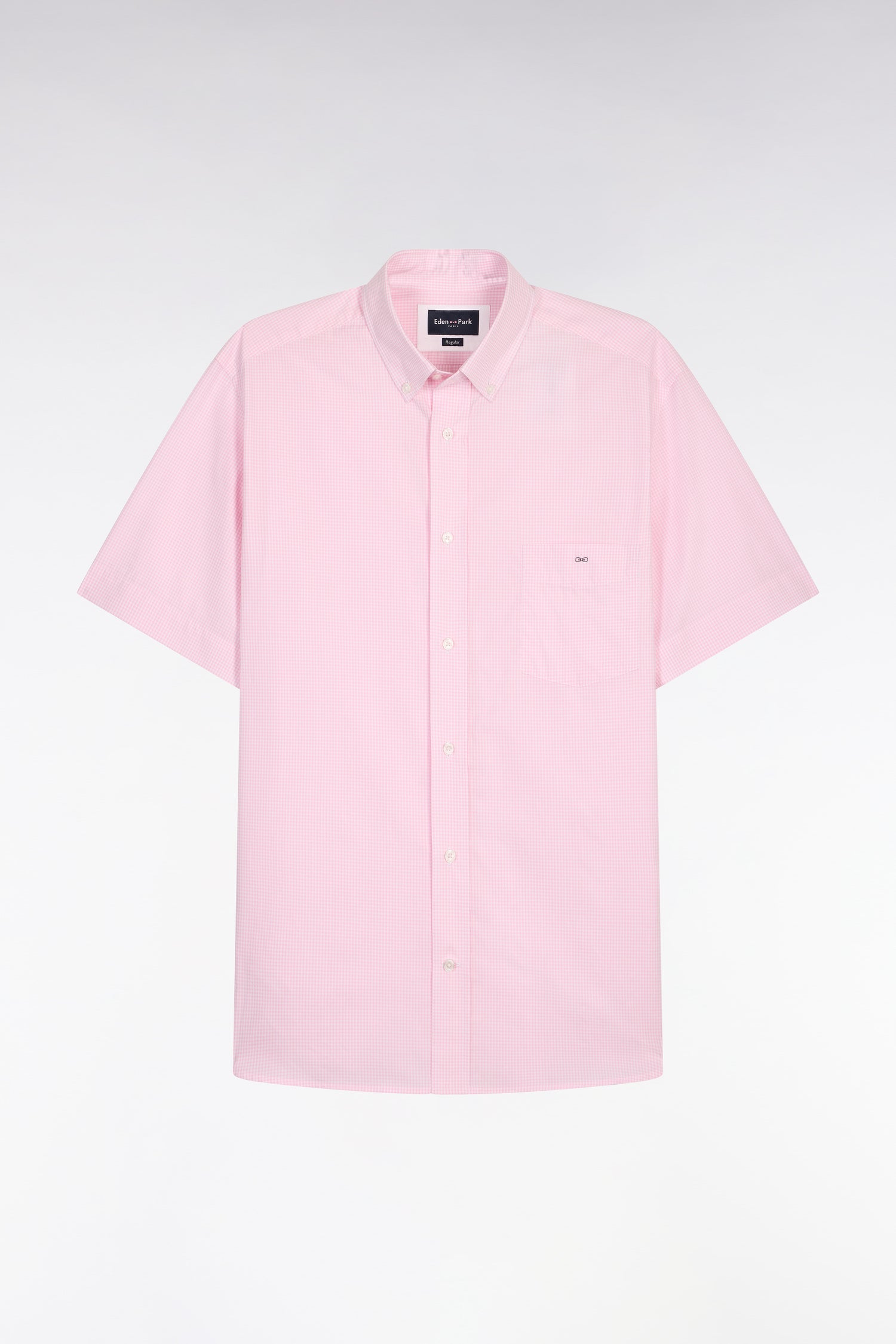 Chemise à manches courtes en coton à carreaux Vichy rose