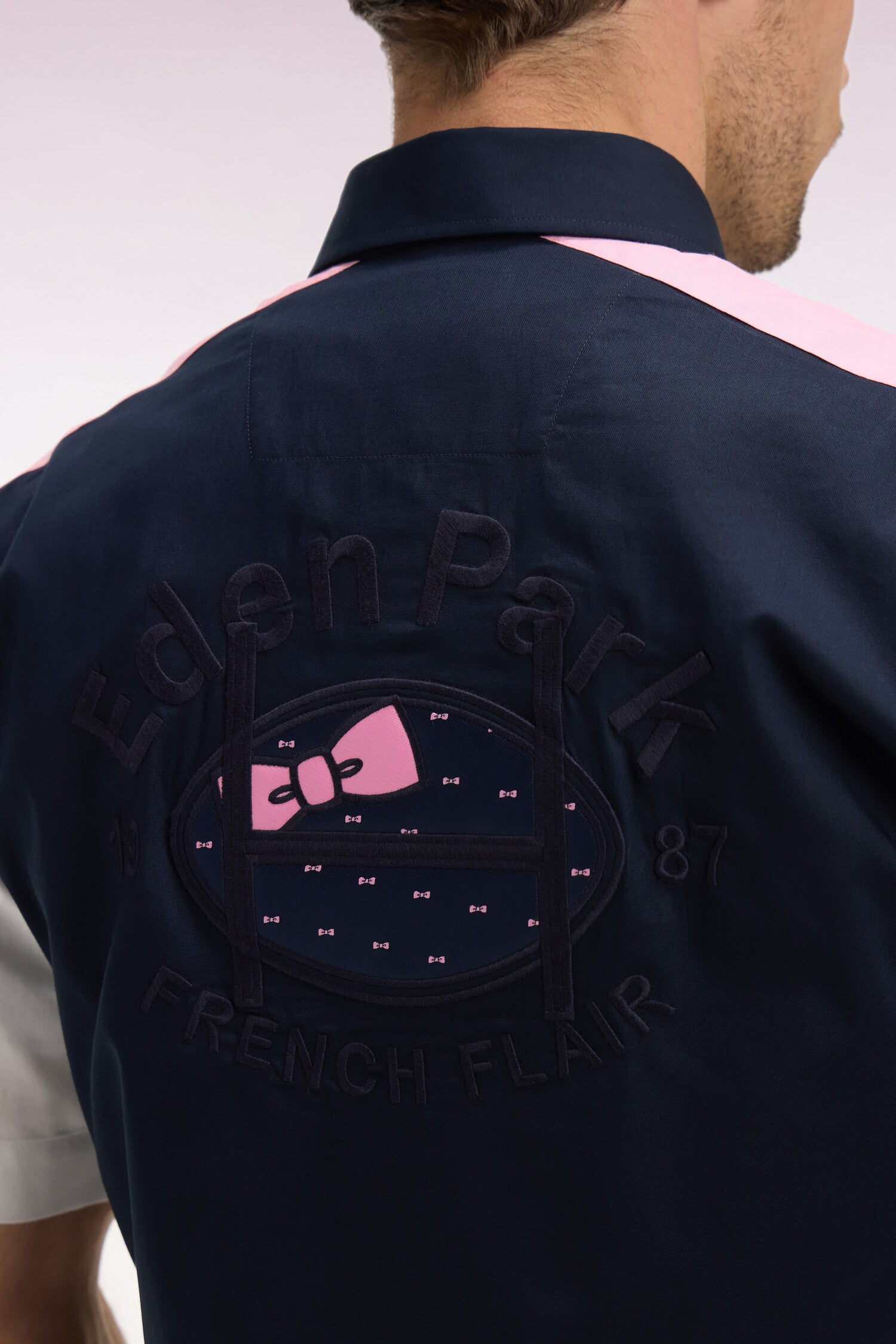 Dynamique et moderne, cette chemisette s'inscrit pleinement dans le vestiaire sport-chic de la Maison. Elle présente une découpe contrastée rose sur les épaules et une large bande marine sur la poitrine. Sa large broderie dans le dos et ses associations de couleurs expriment l’esprit French Flair d’Eden Park. Une pièce confortable et identitaire, parfaite pour affirmer un style sport chic durant la belle saison.