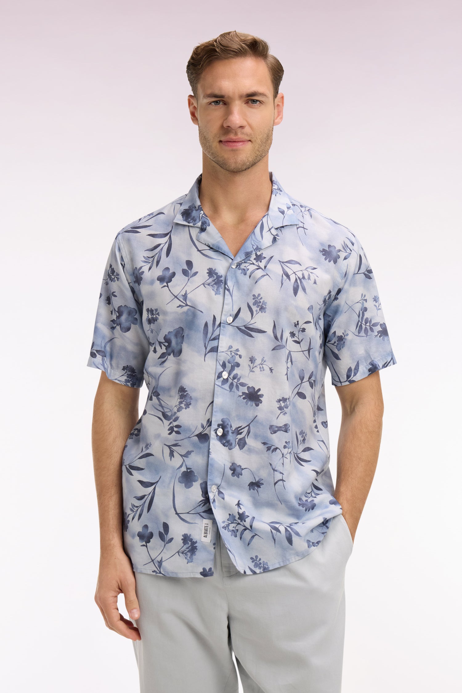 Chemise à manches courtes en lyocell et coton imprimé floral ciel