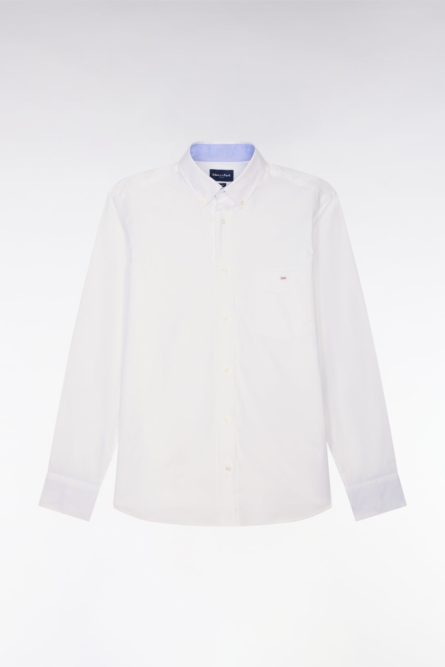 This shirt is woven in cotton. The fitted cut and plain colour scheme make it an iconic piece