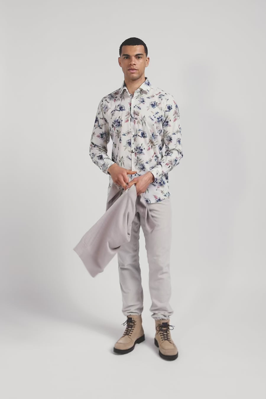 Let yourself be seduced by the charm of our exotic floral slim-fit shirt, available in two captivating, timeless shades. This bold piece combines a sleek, stylish slim fit with a vibrant floral design, offering a modern, bold interpretation of Eden Park's signature French Flair.