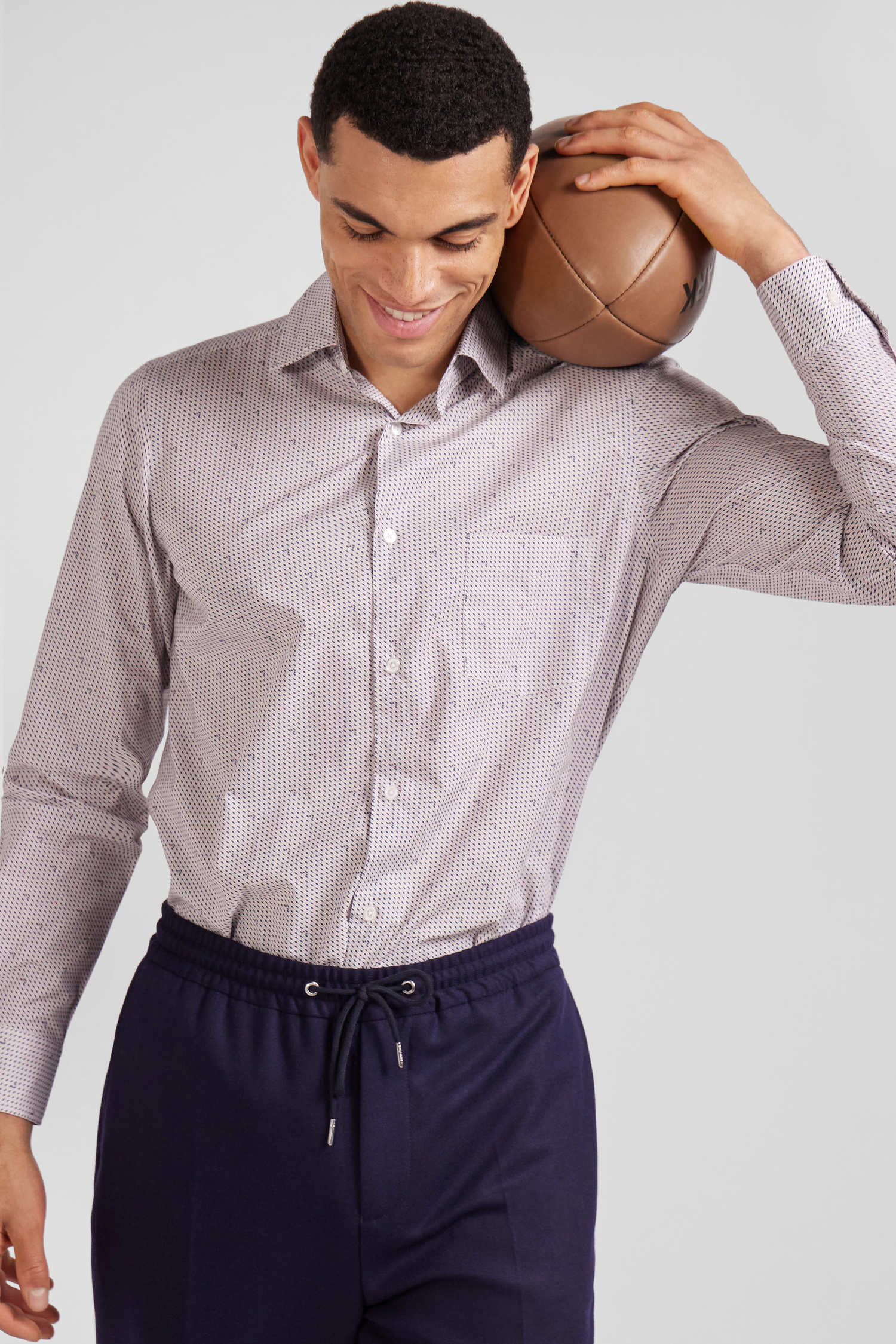 Slim pink microprint cotton shirt
