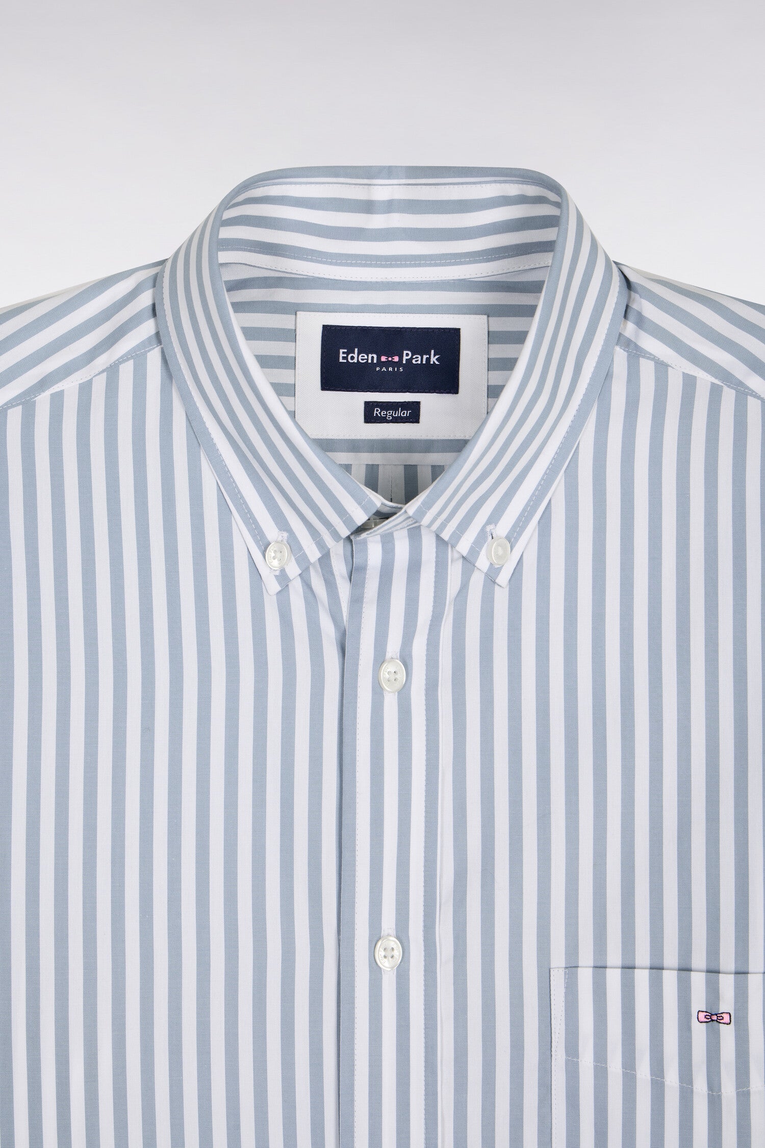 Cette chemise homme en popeline de coton à rayures bâton revisite un grand classique du vestiaire estival avec élégance. Légère et agréable au porté, elle assure une silhouette nette grâce à sa coupe droite et son col à pointes boutonnées. Les rayures verticales allongent la ligne, donnant un style soigné sans effort. La poche poitrine ornée du nœud papillon Eden Park rappelle élégamment l'identité de la Maison, tandis que le pli dos apporte aisance et confort. Parfaite avec un jean clair ou un chino, cette chemise est un indispensable chic et facile à associer. Cet intemporel vous ai proposé dans une grande palette de coloris, des plus classiques aux plus tendance.