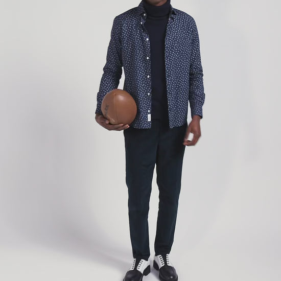 This slim-fitting shirt is enhanced by a refined micro-pattern that adds a subtle touch of elegance to your outfit. Perfect for a look that's both modern and classic, this men's shirt brilliantly combines style and comfort, lending itself equally well to formal occasions and casual outings.