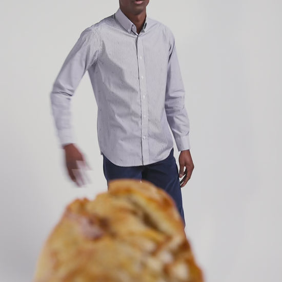 Adopt a classic, timeless style for everyday wear, or for a dressier occasion, with our blue cotton shirt. Its straight Regular fit offers a comfortable, versatile fit for any occasion. Made from quality cotton, this men's shirt combines durability and elegance, making it an essential in every man's wardrobe.