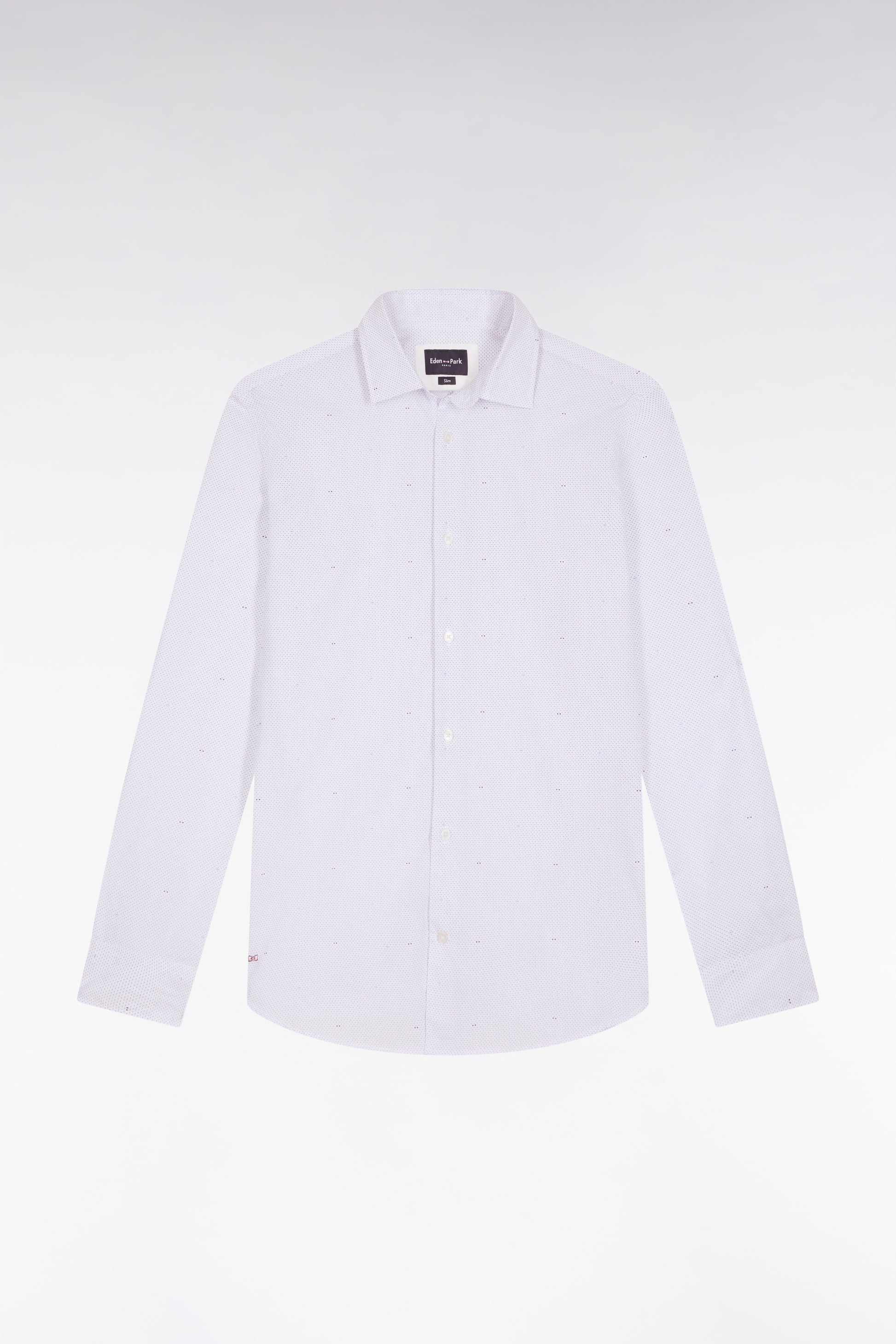 A nod to Eden Park's heritage, this cotton poplin shirt features a sky-blue micro bow-tie print, a subtle reminder of the emblem of our French house. Comfortable thanks to its slim fit, this shirt lends itself equally well