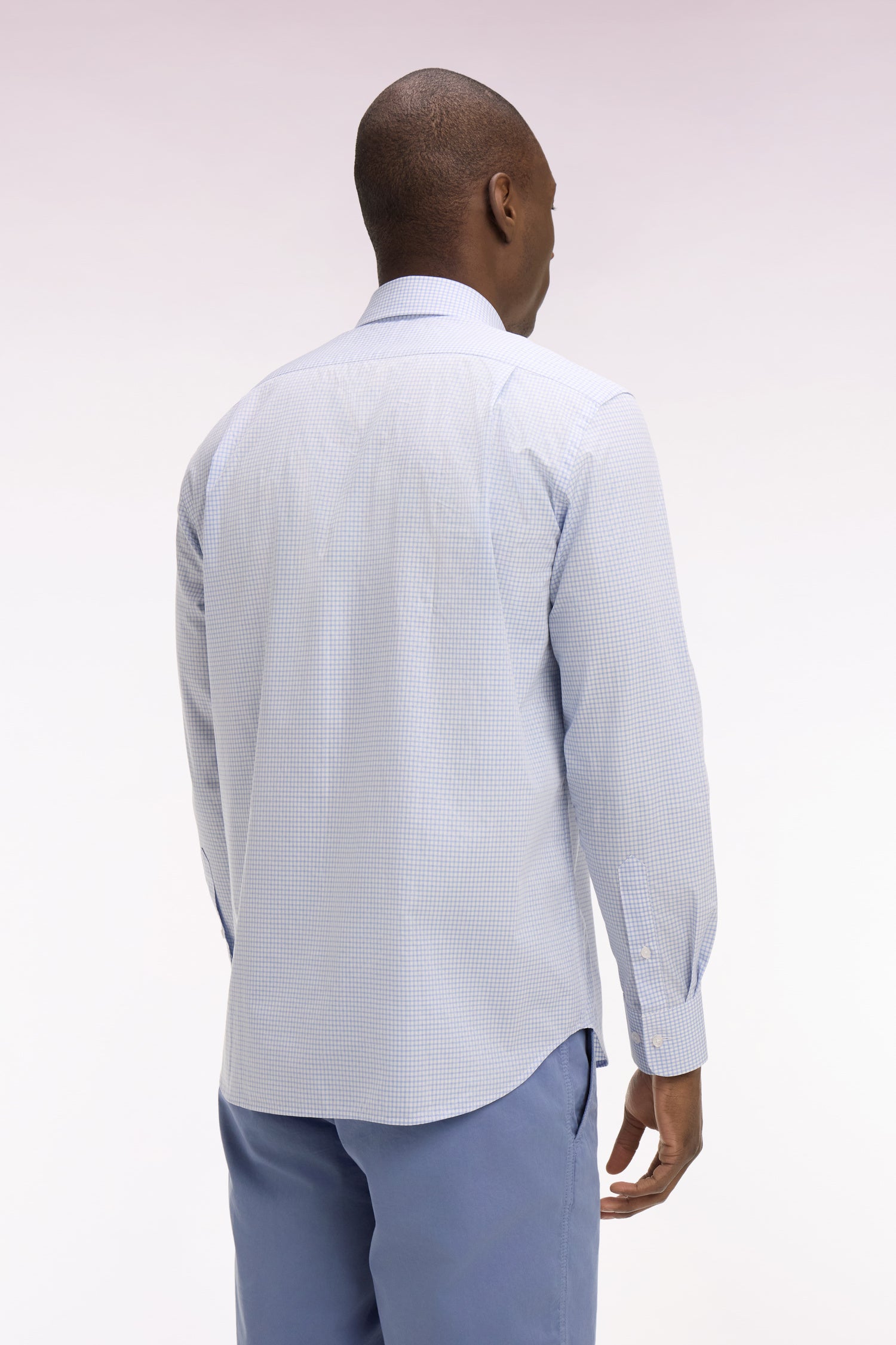 Cette chemise en coton dobby se distingue par son tissage subtil qui apporte du relief à ses motifs carreaux déclinés en coloris ciel ou rose. Sa coupe regular assure une silhouette confortable et impeccable en toutes circonstances. Dotée d’un col classique, d'une poche poitrine et de finitions soignées, elle s’associe aisément à un chino comme à un jean pour une allure chic et décontractée. Un essentiel du vestiaire masculin à adopter sans tarder.