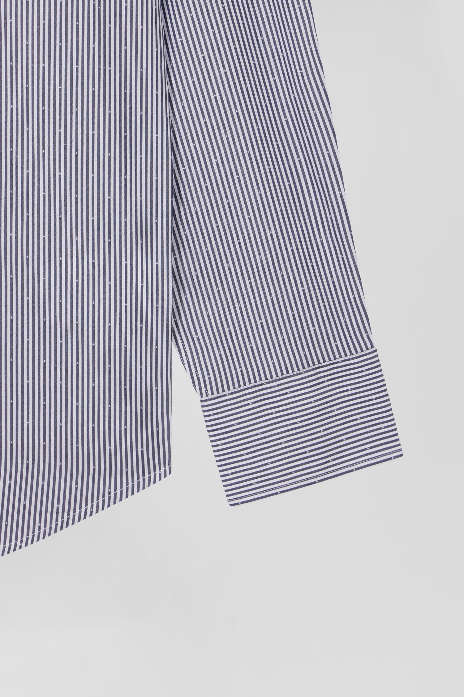 Regular navy blue cotton jacquard shirt with baton stripes
