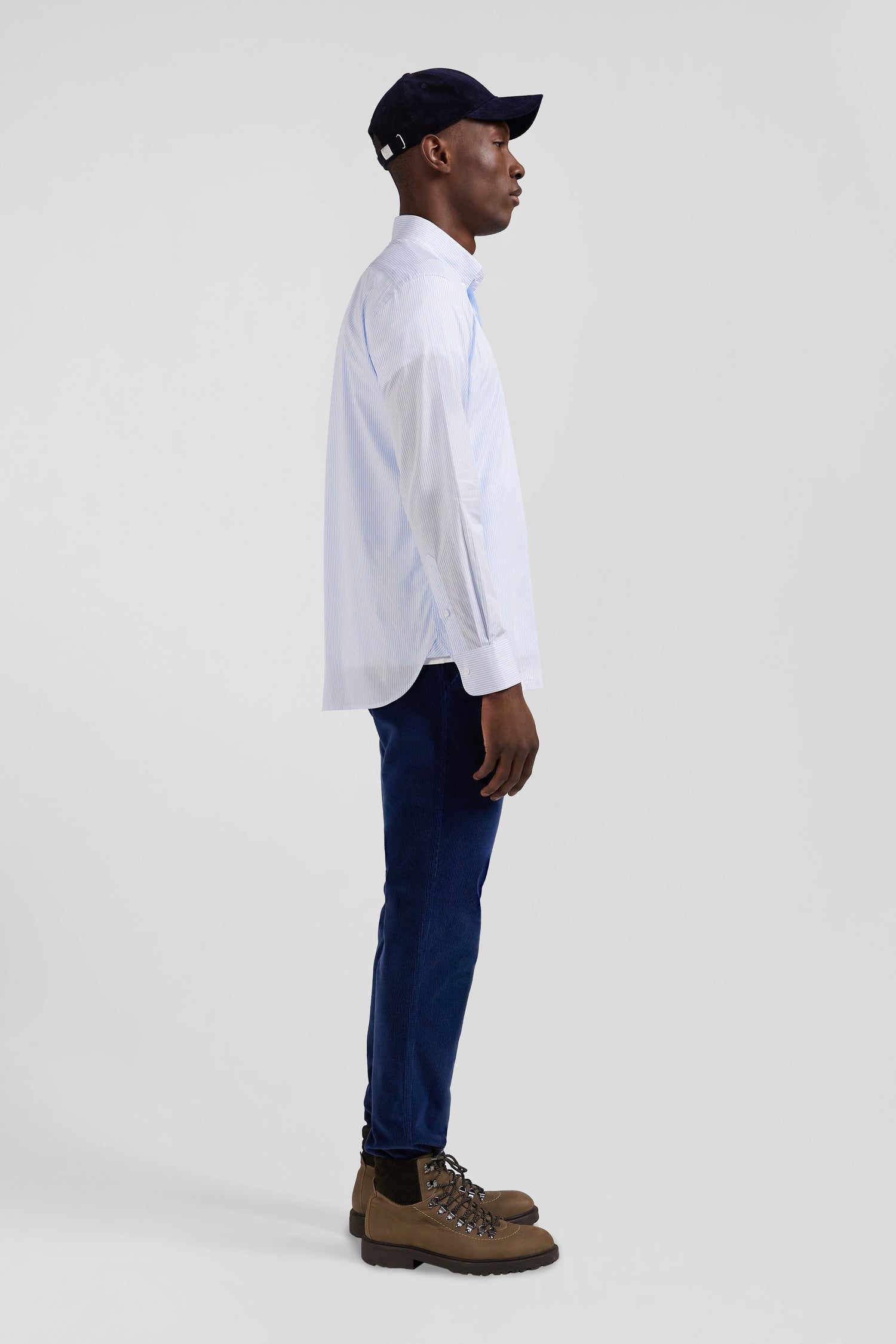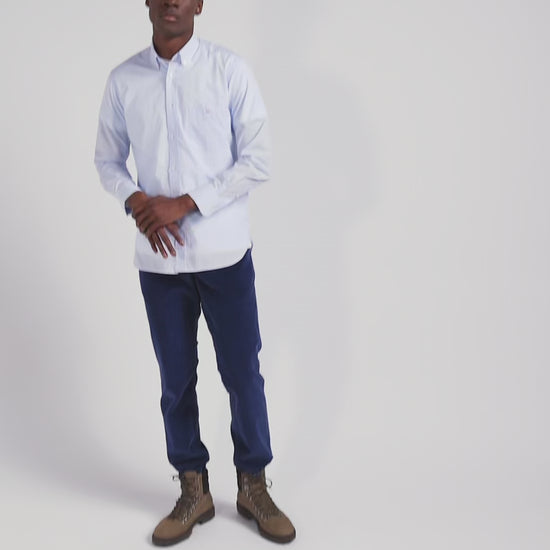 Our men's striped cotton jacquard shirt combines quality cotton with our inimitable craftsmanship. Available in navy blue, sky blue or pink, this striped shirt offers a regular fit for optimum comfort. With its practical pocket and button-down collar, it combines practicality with everyday elegance.