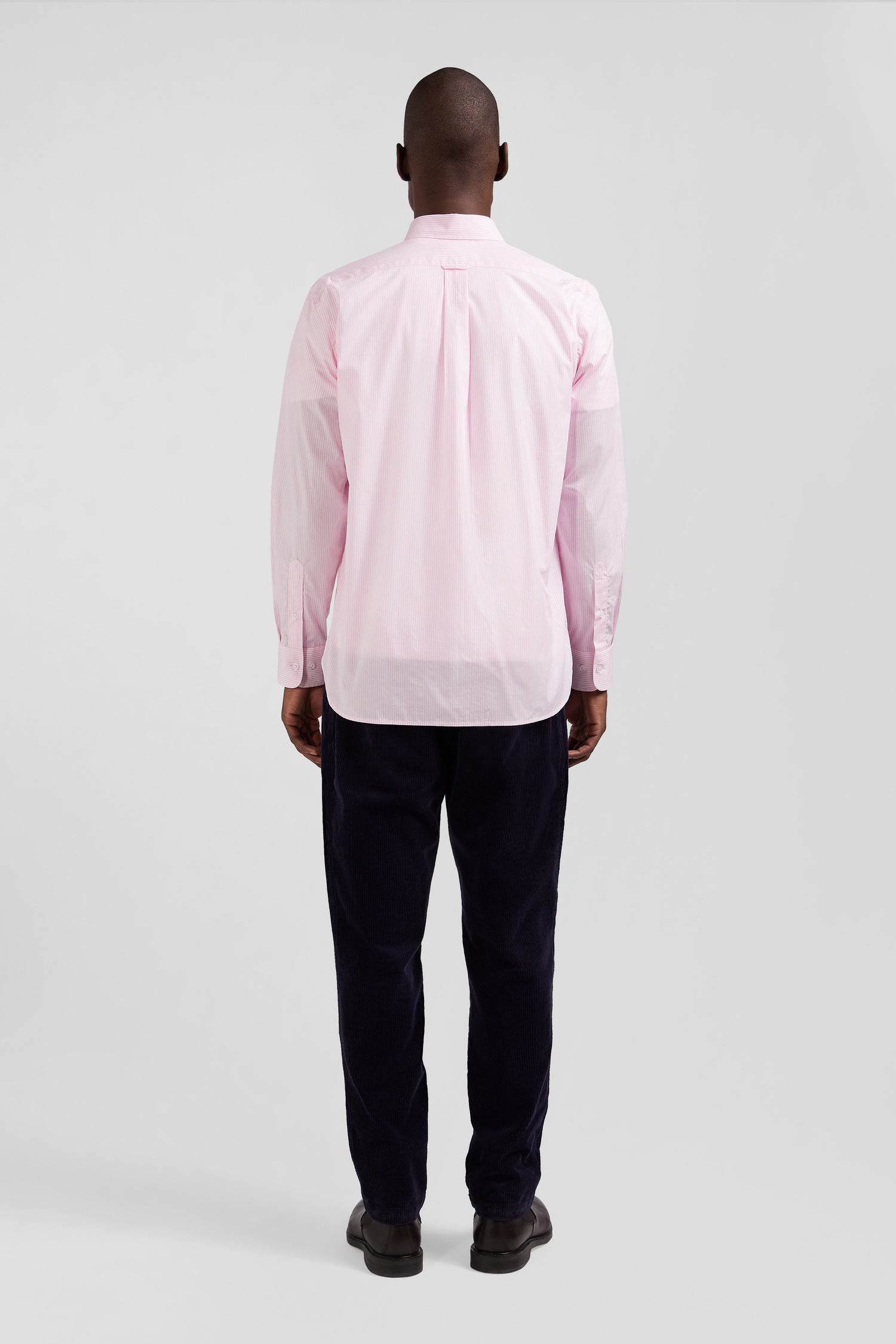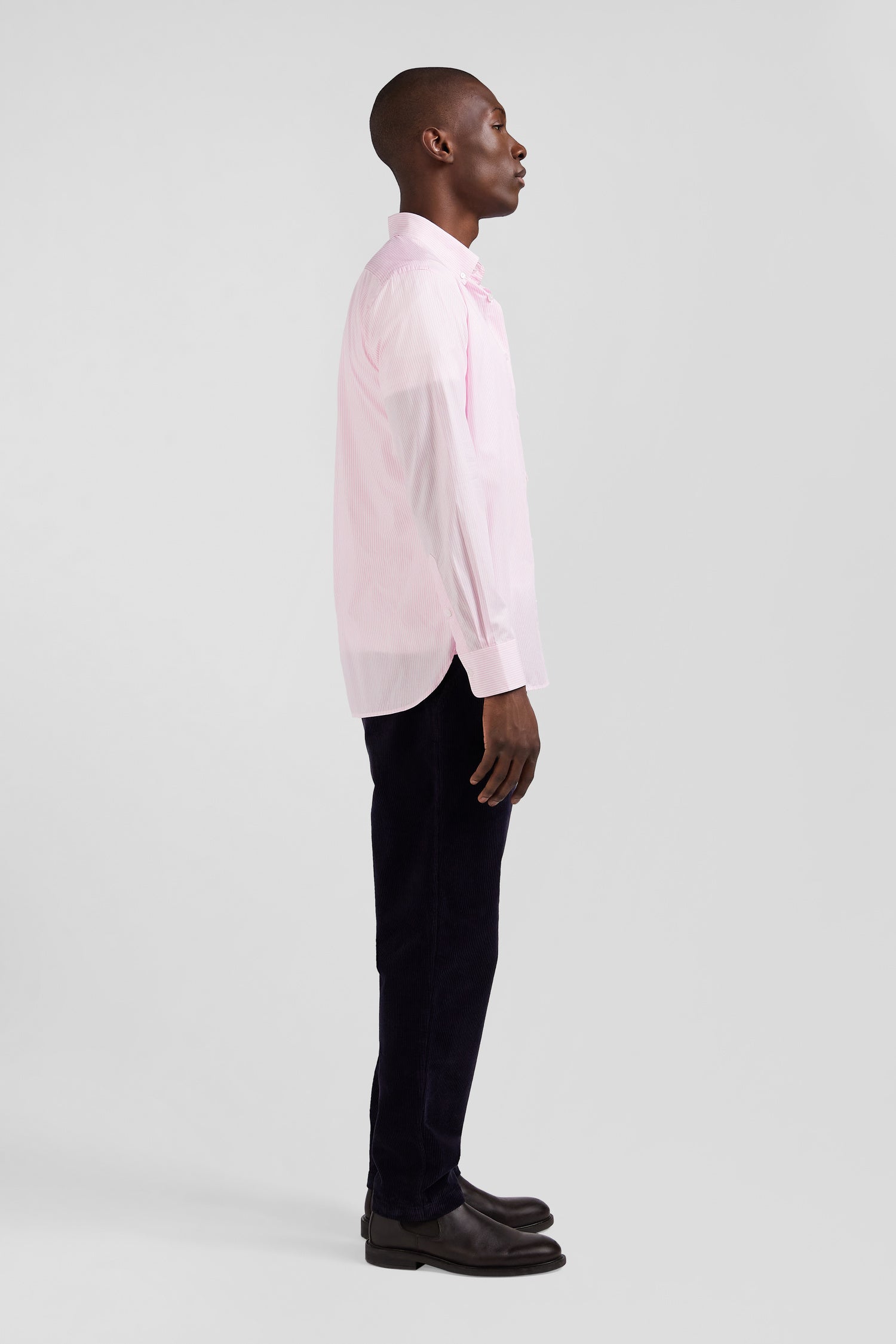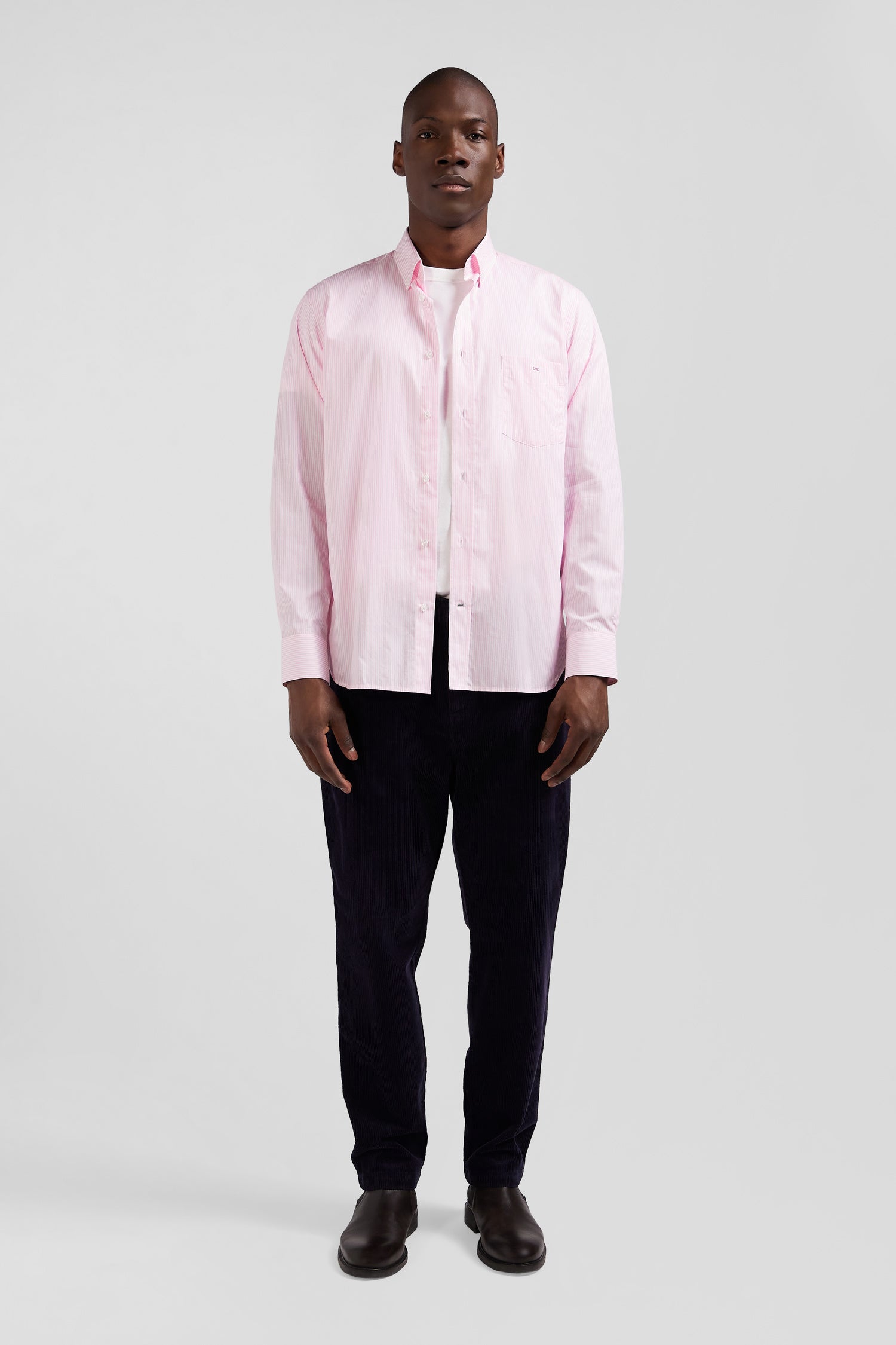 Our men's striped cotton jacquard shirt combines quality cotton with our inimitable craftsmanship. Available in navy blue, sky blue or pink, this striped shirt offers a regular fit for optimum comfort. With its practical pocket and button-down collar, it combines practicality and elegance for everyday wear.