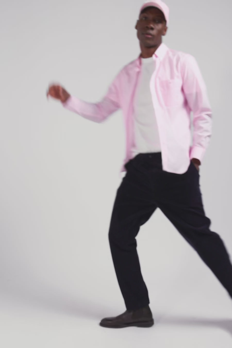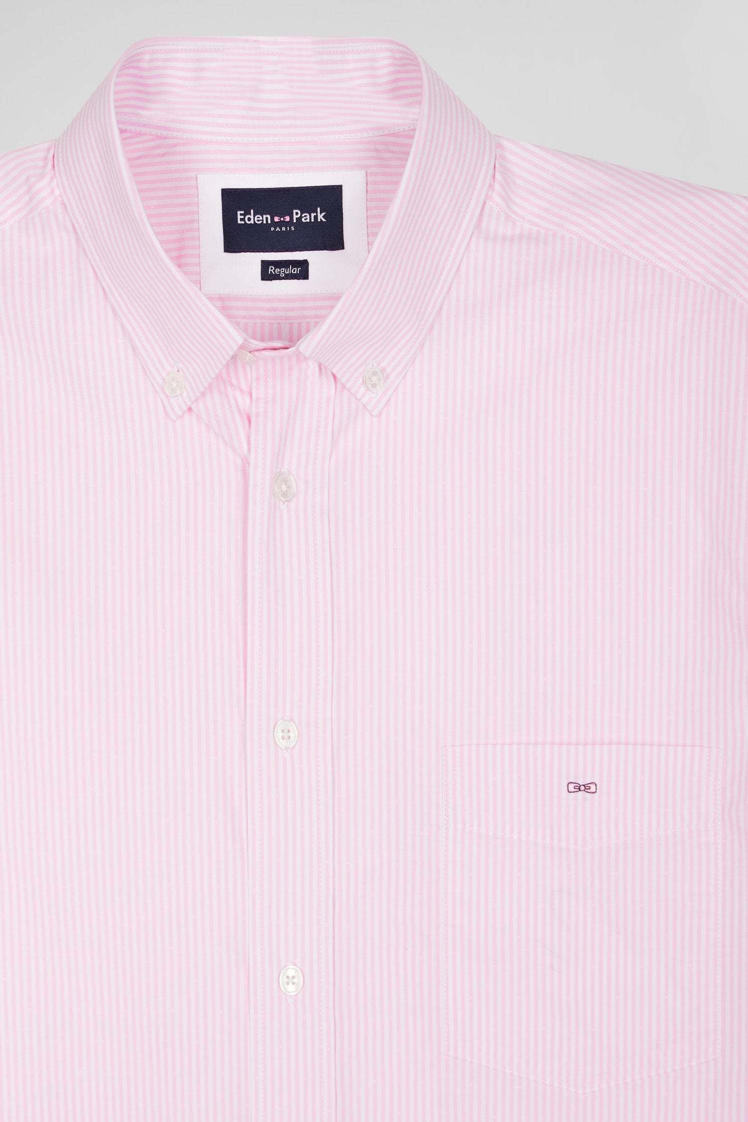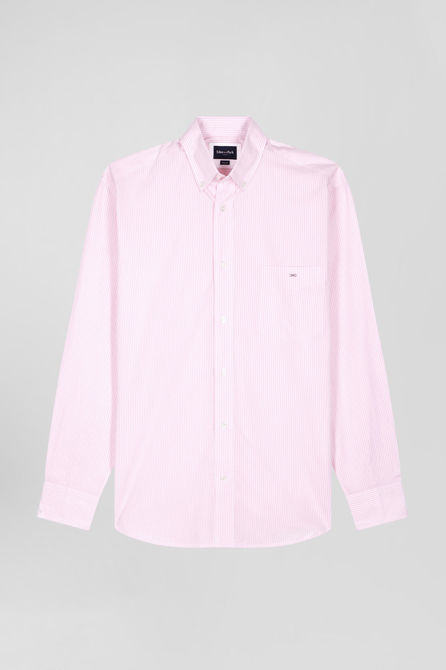 Our men's striped cotton jacquard shirt combines quality cotton with our inimitable craftsmanship. Available in navy blue, sky blue or pink, this striped shirt offers a regular fit for optimum comfort. With its practical pocket and button-down collar, it combines practicality and elegance for everyday wear.