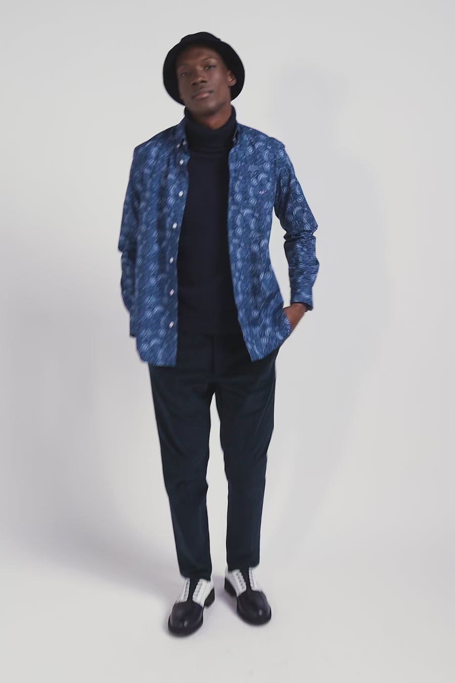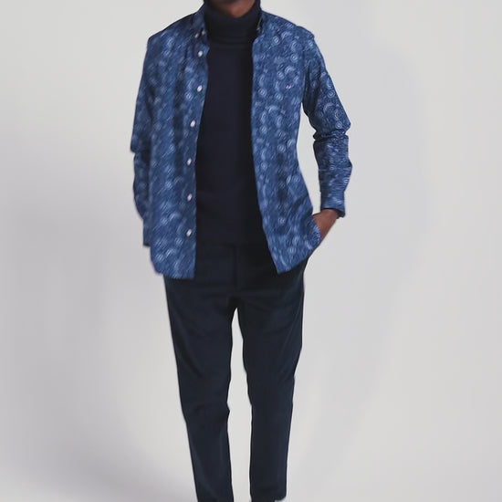 Express your style with this cotton shirt, available in two on-trend colors, adorned with a captivating graphic print. Its straight-leg regular fit offers a comfortable fit and allows you to slip it into jeans. Its button-down collar and classic button placket add a touch of sophistication.