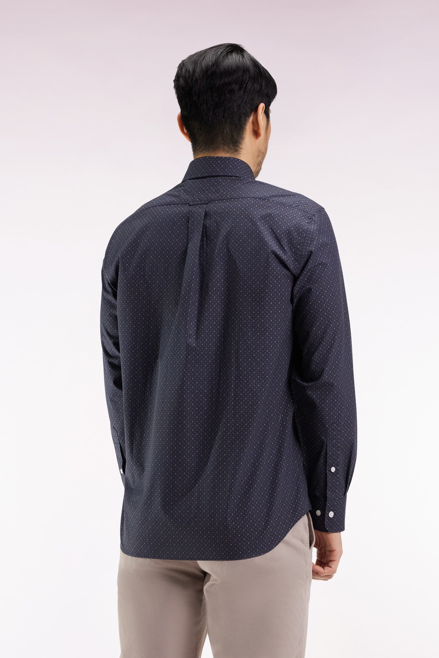 On an elegant gray or brown base, a micro-pattern exclusive to our French house lends a singular graphic depth to this masculine shirt. On close inspection, Eden Park's signature bow tie reveals itself like a confidential signature.