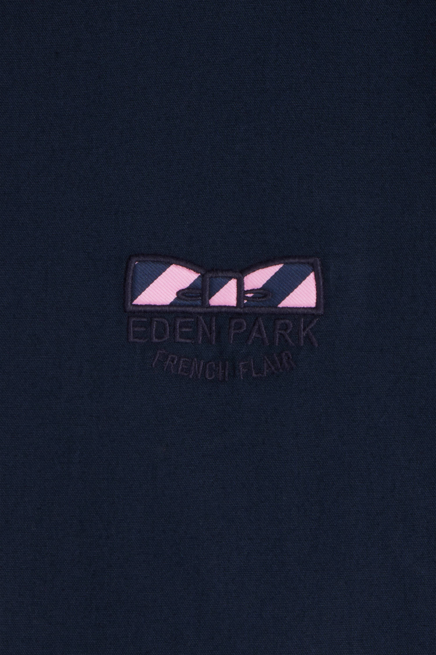 Regular navy blue oxford cotton shirt with striped bow tie detail