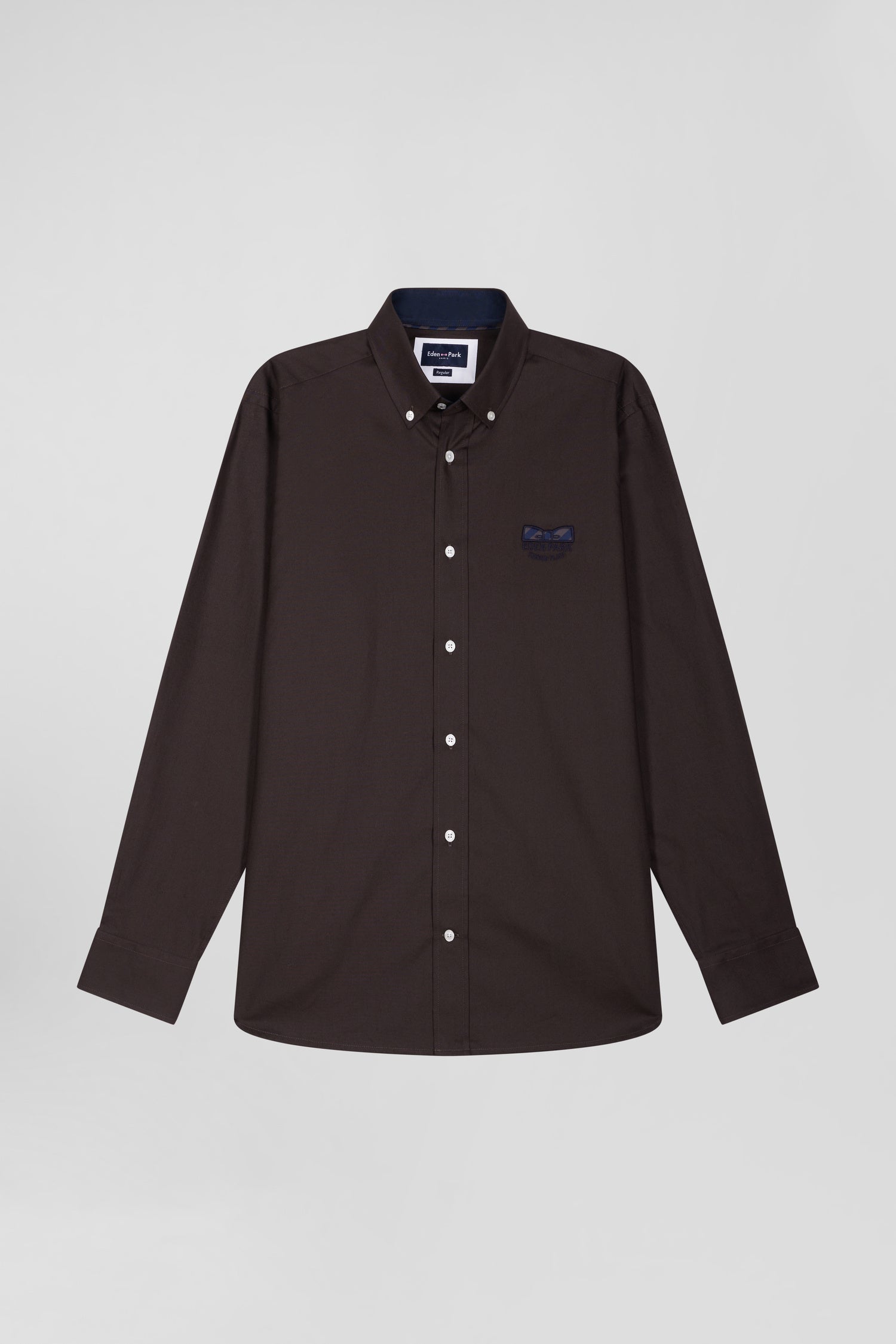 Add a touch of elegance to your autumn-winter wardrobe with this cotton shirt in Oxford weave. Its straight Regular fit promises comfort and timeless style, while its button-down collar points underline its refinement. On the chest, a bowtie patch in tie fabric, sublimated by fine embroidery, reflects our Maison's distinctive attention to detail. This versatile shirt is available in a palette of autumn-winter colors to complement any outfit.