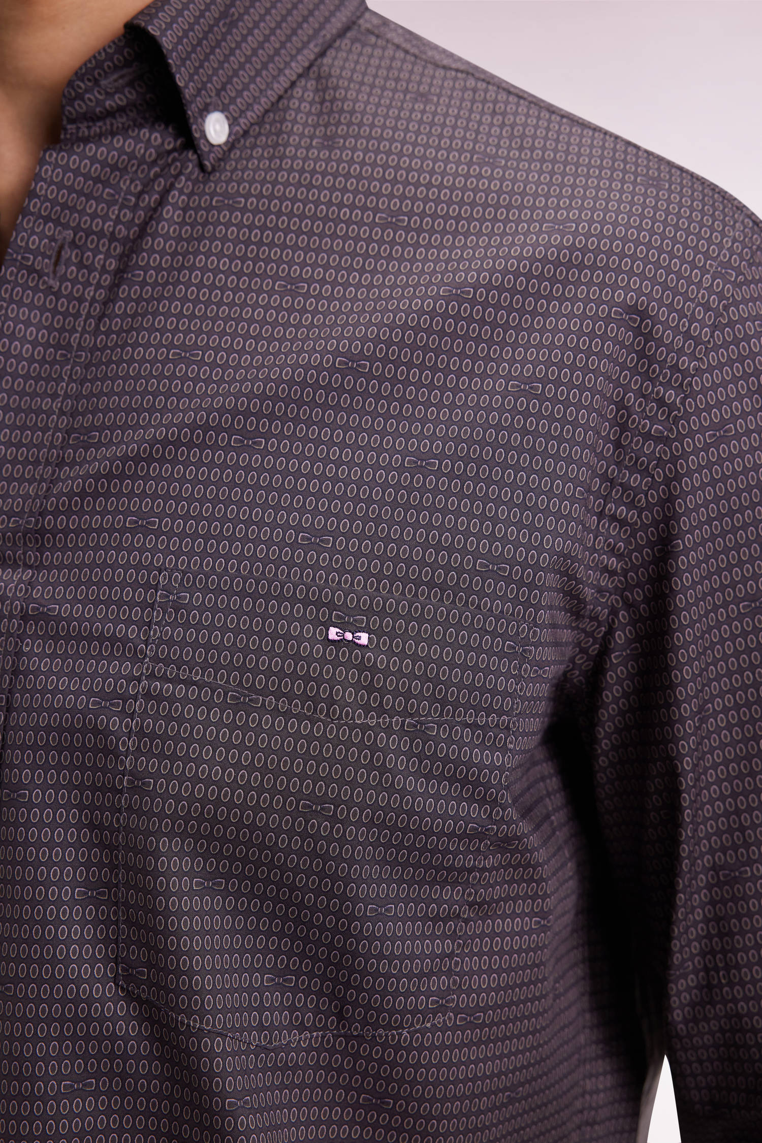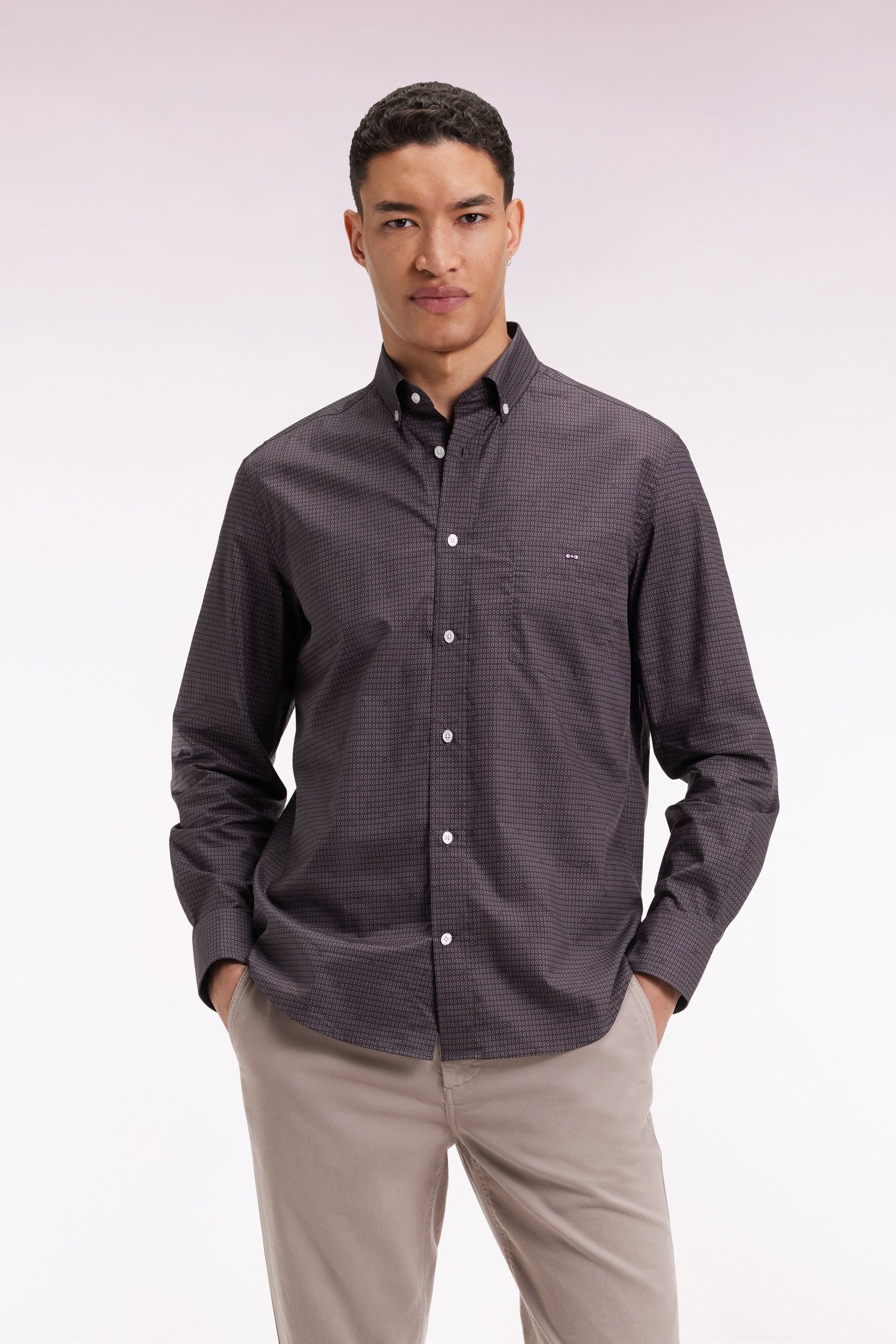 With its exclusive micro-print in a palette of blacks and browns, this Pima cotton shirt is discreetly elegant, with a twist featuring the iconic emblem of our French house: the bow tie, subtly integrated into the pattern. Its straight cut, combined with the natural softness of Pima cotton, renowned for its superior quality and durability, guarantees comfort and freedom of movement. Signature pink thread embroidery on the chest, signature oval buttons and a button-down collar are just some of the meticulous details that make this shirt one of the highlights of the Eden Park men's wardrobe.