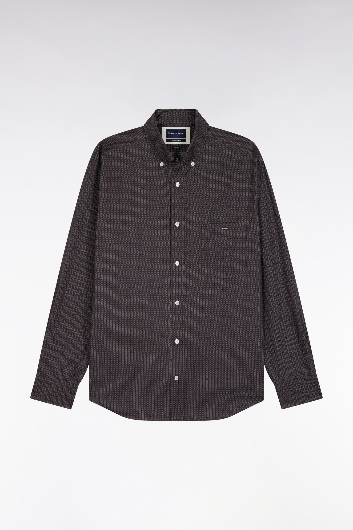 Brown Pima cotton shirt with micro-patterns, straight cut