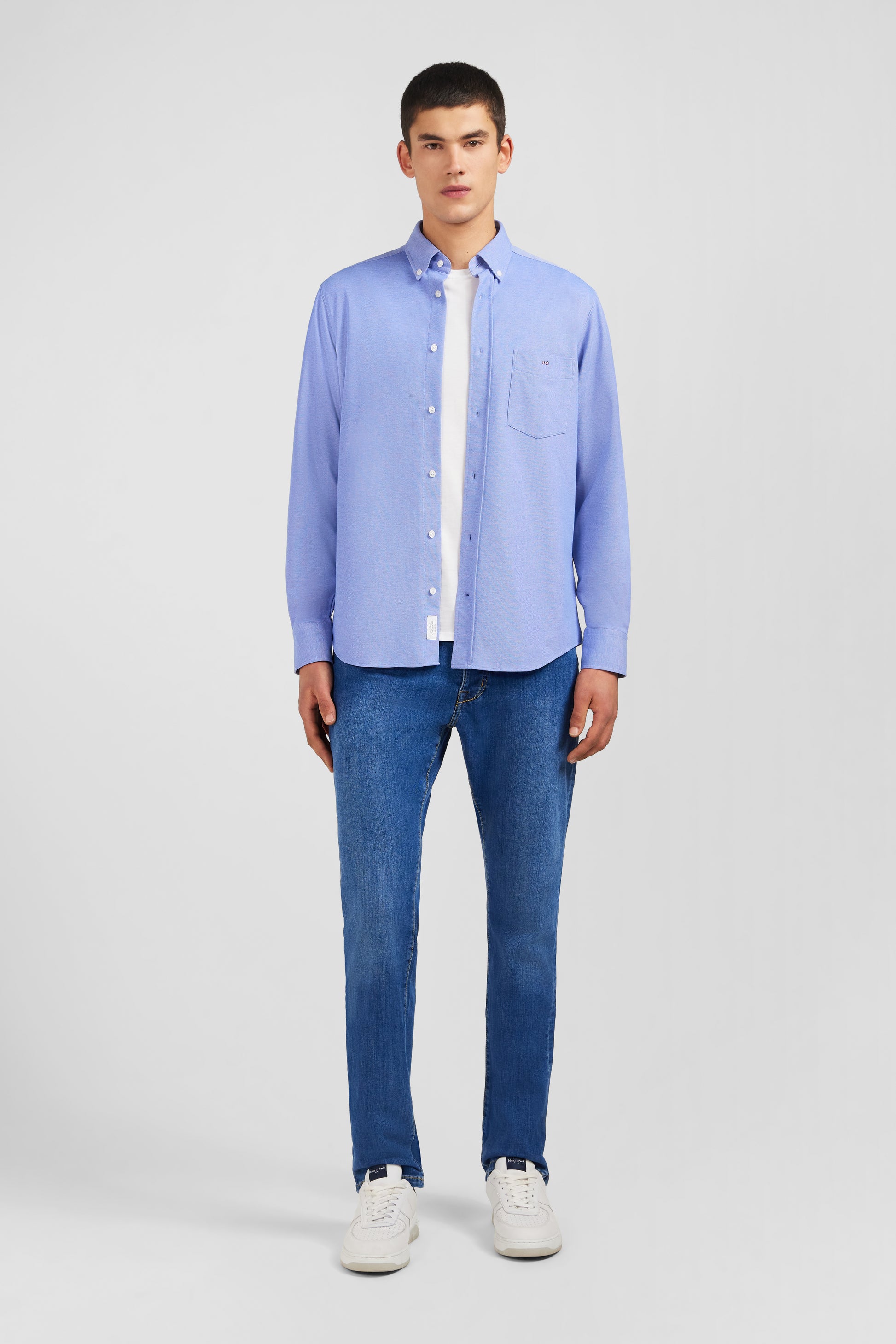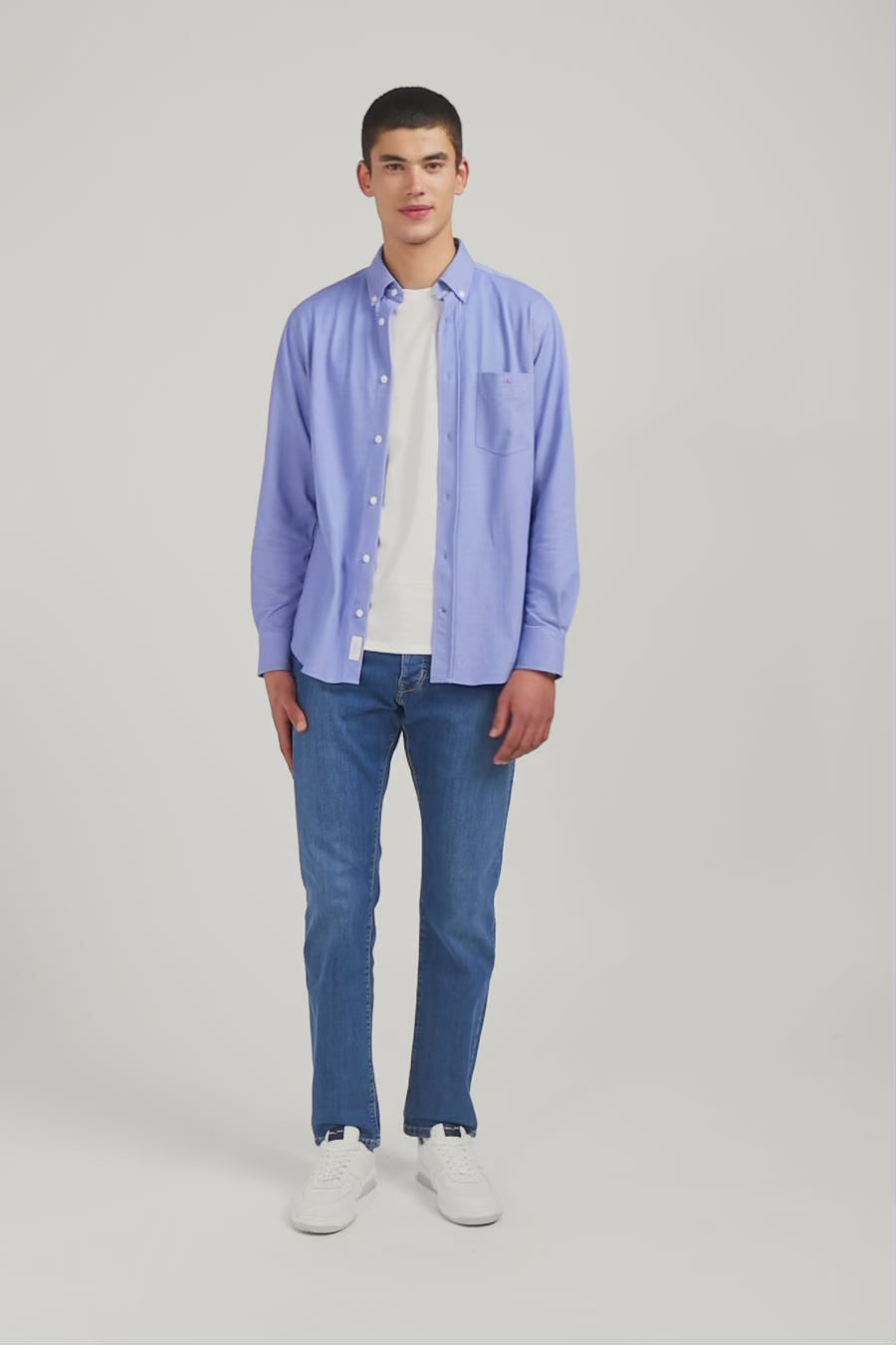This pinpoint woven cotton shirt is adorned with a patch breast pocket with an embroidered bow tie logo and a buttoned shirt collar