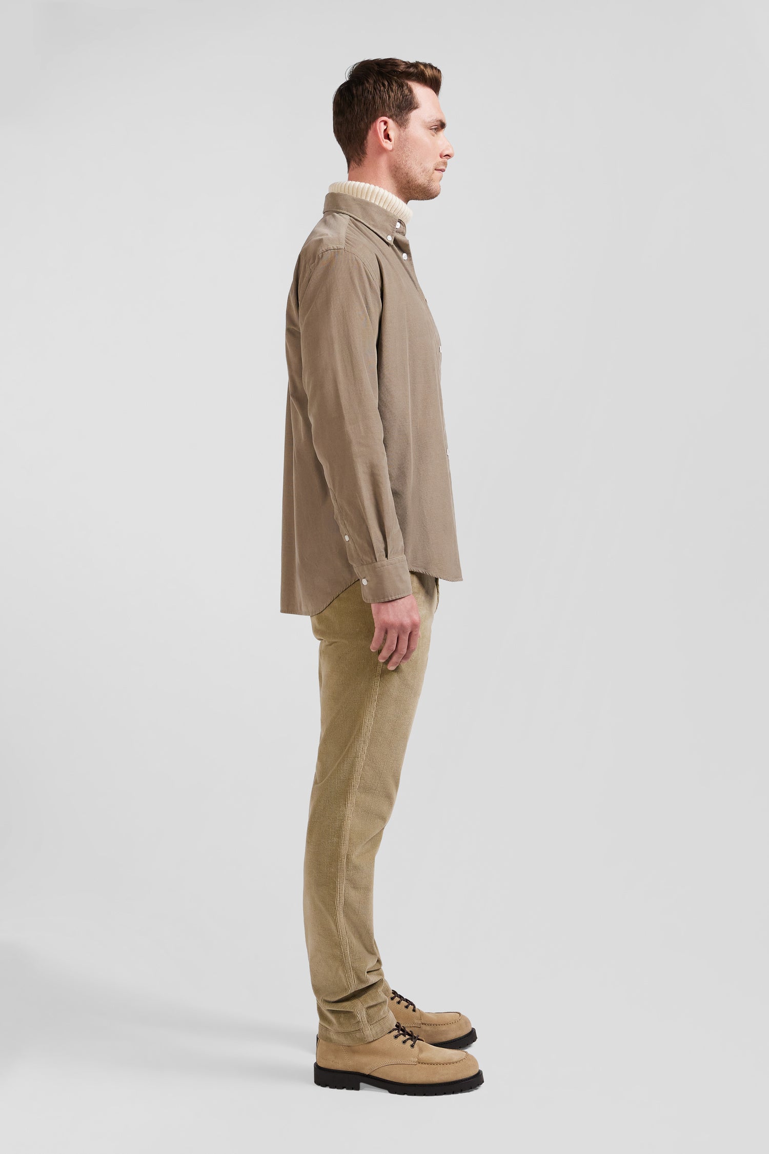 Plain beige corduroy shirt with button-down collar and chest pocket Regular fit
