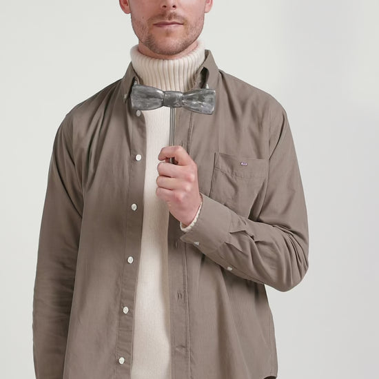 - Chest pocket with bowtie emblem embroidery