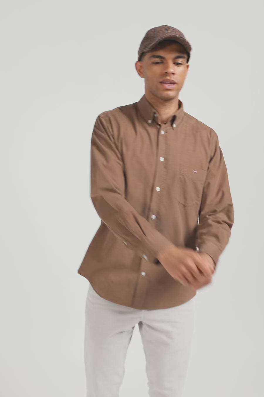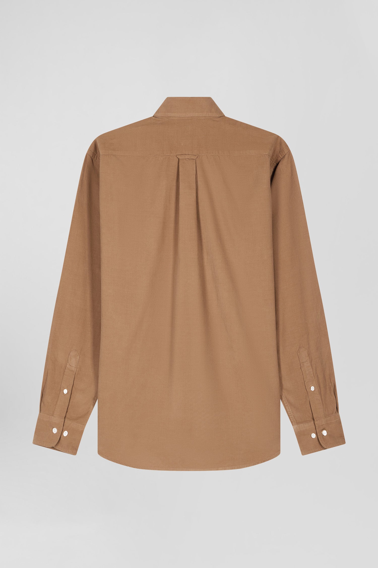 Plain hazelnut corduroy shirt Button-down collar and chest pocket Regular fit